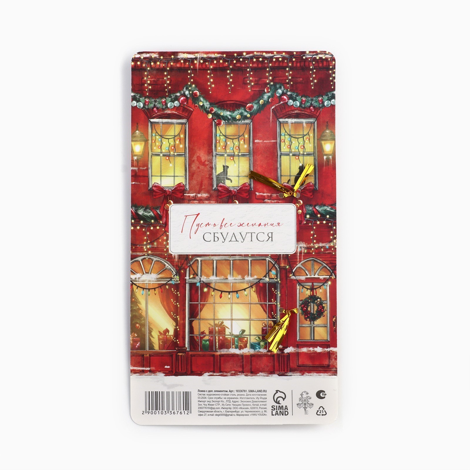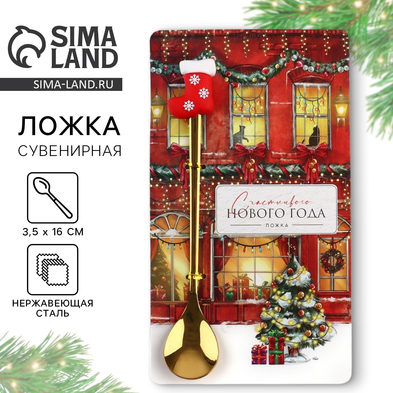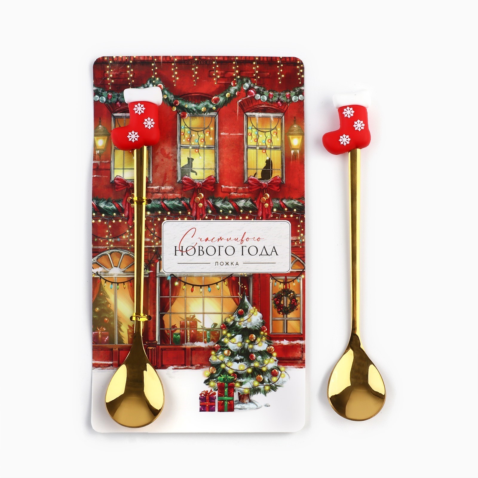 Ложка новогодняя с резиновым доп.элементом «новый год: счастливого нового года», 3,5 х 16 см