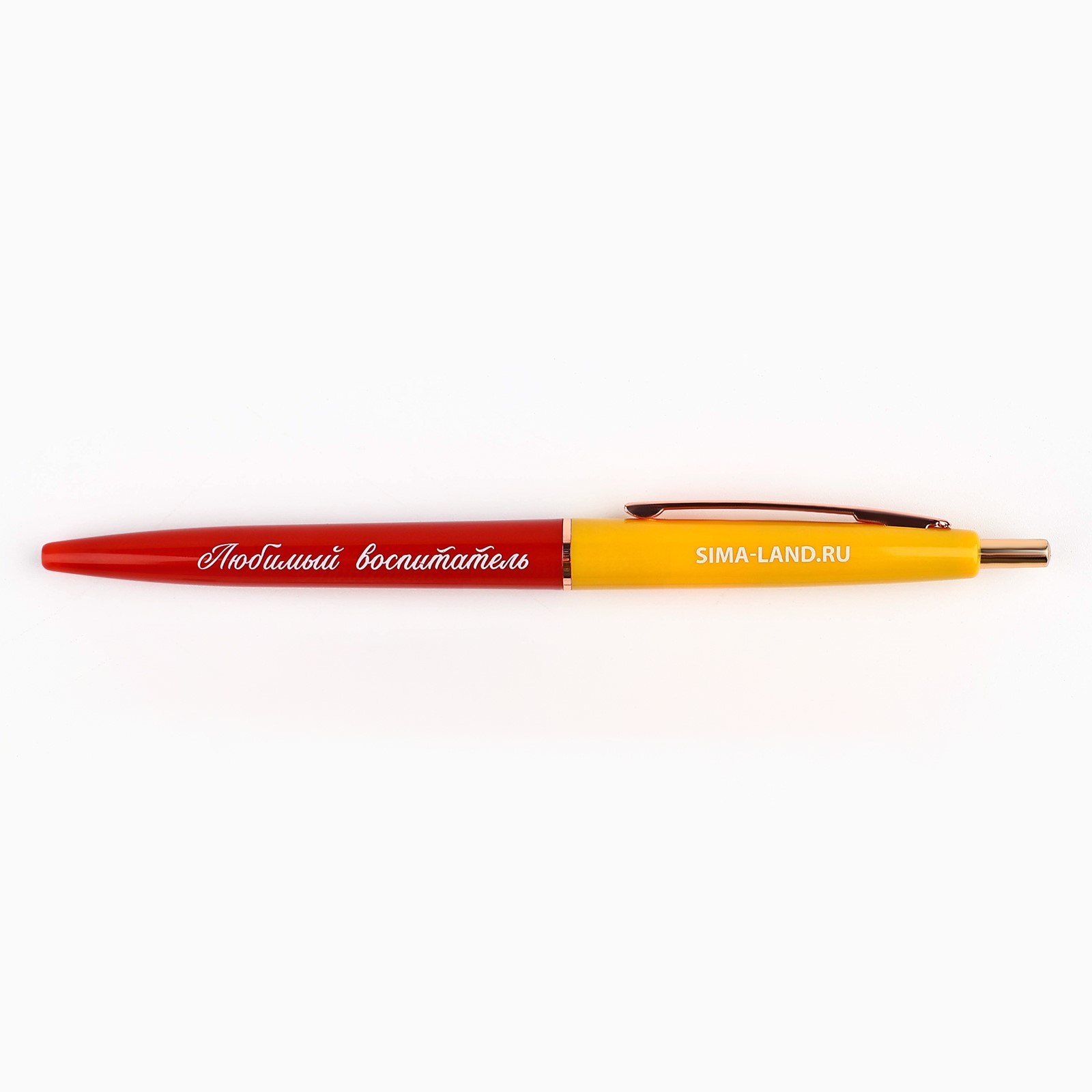 Ручка шариковая, пластик автоматическая синяя паста 0.7 мм «любимый воспитатель». Ручка отлично подойдет в качестве подарка. Яркий дизайн несомненно привлечет внимание и будет выделяться среди других предметов, а удобная форма корпуса позволит использовать ее с комфортом. Вид ручки: шариковая;Цвет стержня: синий;Стержень заменяемый: да;Материал: пластик;Форма корпуса: круглая.Упаковка: пакет. Диаметр пишущего узла, мм:0.7|Набор:Нет|Цвет:Красный|Цвет:Жёлтый|Тип:Автоматическая ручка|Вид ручки:Шариковая|Цвет стержня:Синий|Европодвес:Нет|Вид упаковки:Пакет|Тематика праздника:День воспитателя|Адресат:Воспитателю|Материал:Пластик|Материал упаковки:Полиэтилен|Стержень заменяемый:Да|Наличие грипа:Нет|Страна:Китай  развернуть описание ▼