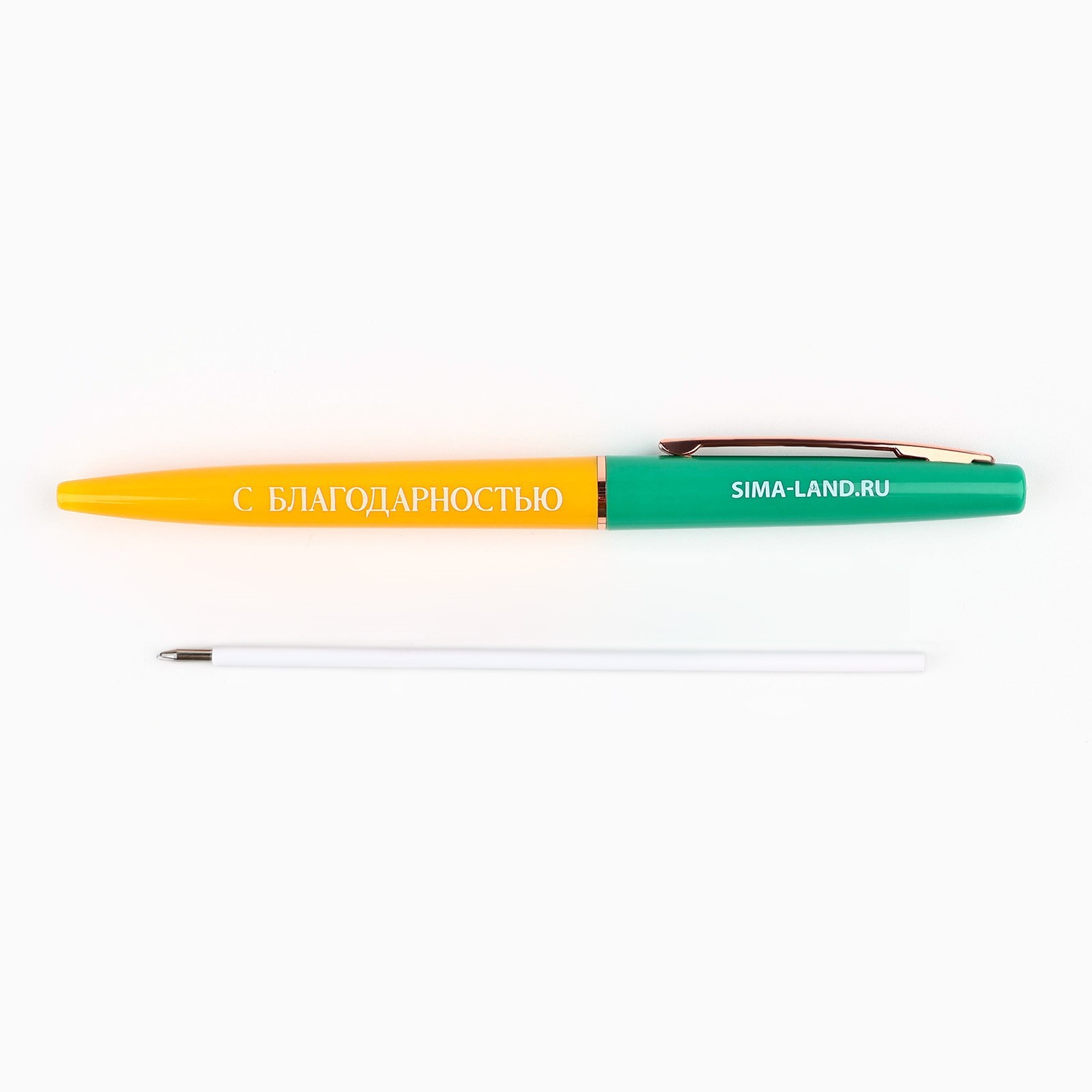 Ручка шариковая, пластик автоматическая синяя паста 0.7 мм «с благодарностью». Ручка отлично подойдет в качестве подарка. Яркий дизайн несомненно привлечет внимание и будет выделяться среди других предметов, а удобная форма корпуса позволит использовать ее с комфортом. Вид ручки: шариковая;Цвет стержня: синий;Стержень заменяемый: да;Материал: пластик;Форма корпуса: круглая.Упаковка: пакет. Диаметр пишущего узла, мм:0.7|Набор:Нет|Цвет:Зелёный|Цвет:Жёлтый|Тип:Автоматическая ручка|Вид ручки:Шариковая|Цвет стержня:Синий|Европодвес:Нет|Вид упаковки:Пакет|Тематика праздника:День воспитателя|Адресат:Воспитателю|Материал:Пластик|Материал упаковки:Полиэтилен|Стержень заменяемый:Да|Наличие грипа:Нет|Страна:Китай  развернуть описание ▼