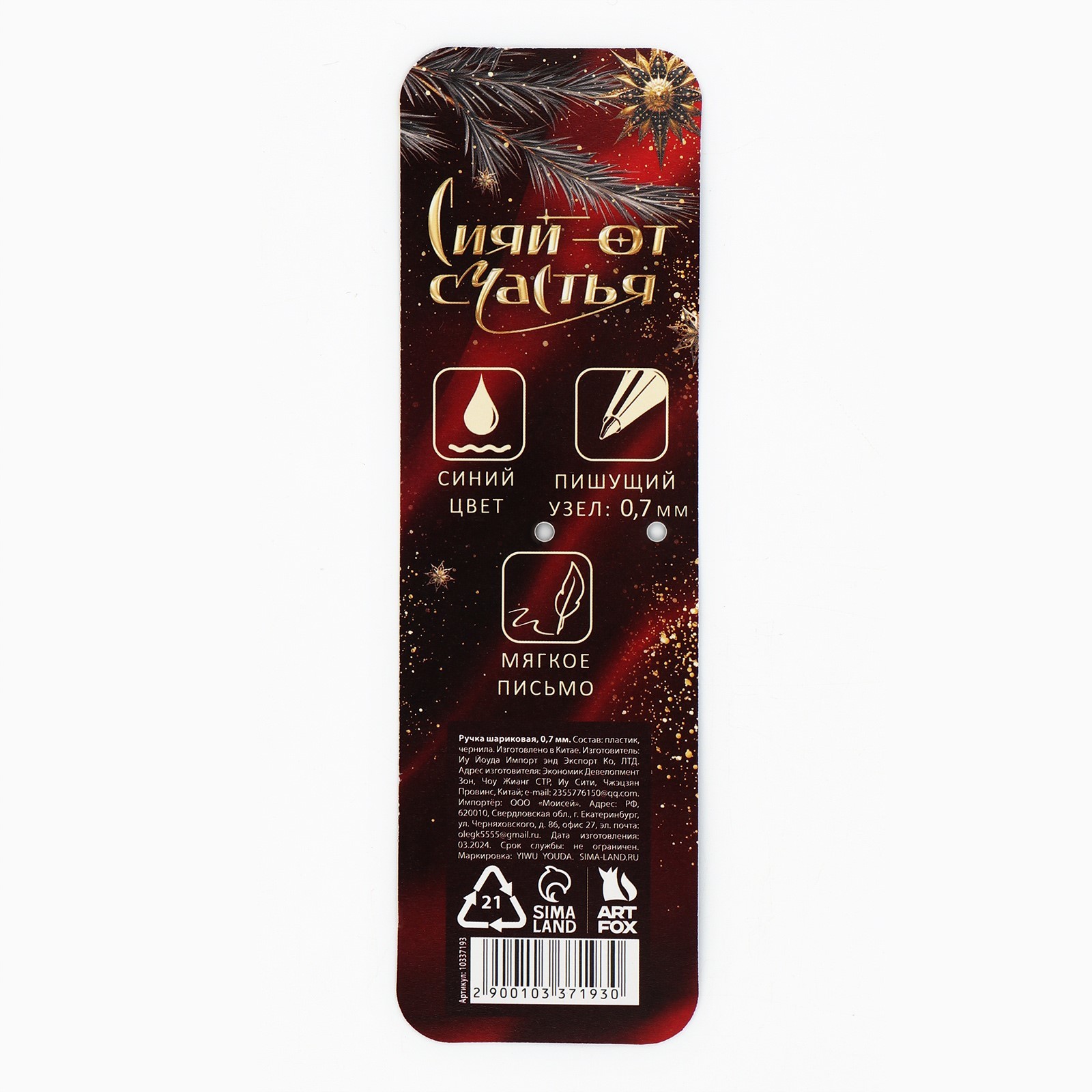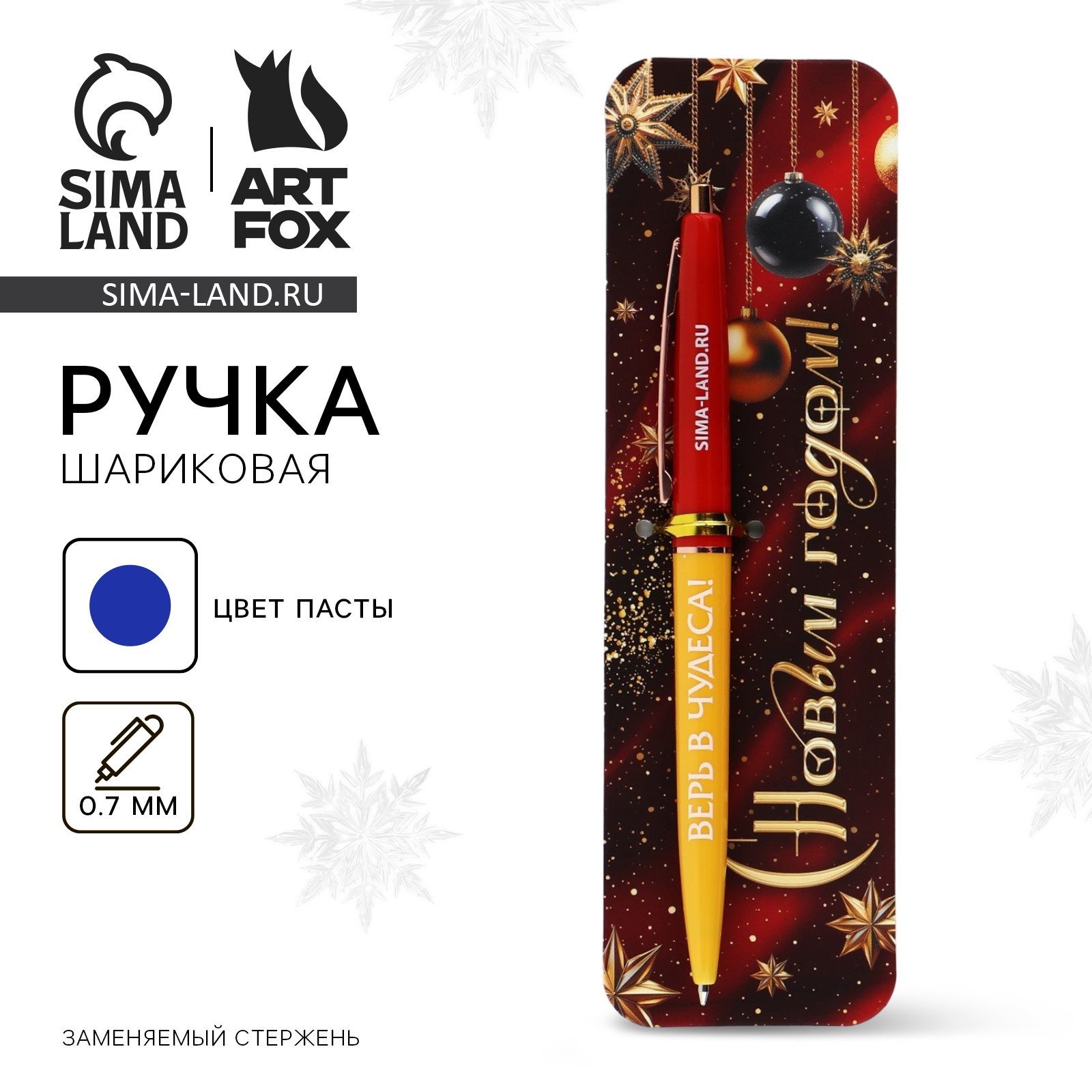 Ручка шариковая, синяя паста, 0.7 мм, автоматическая «с новым годом»