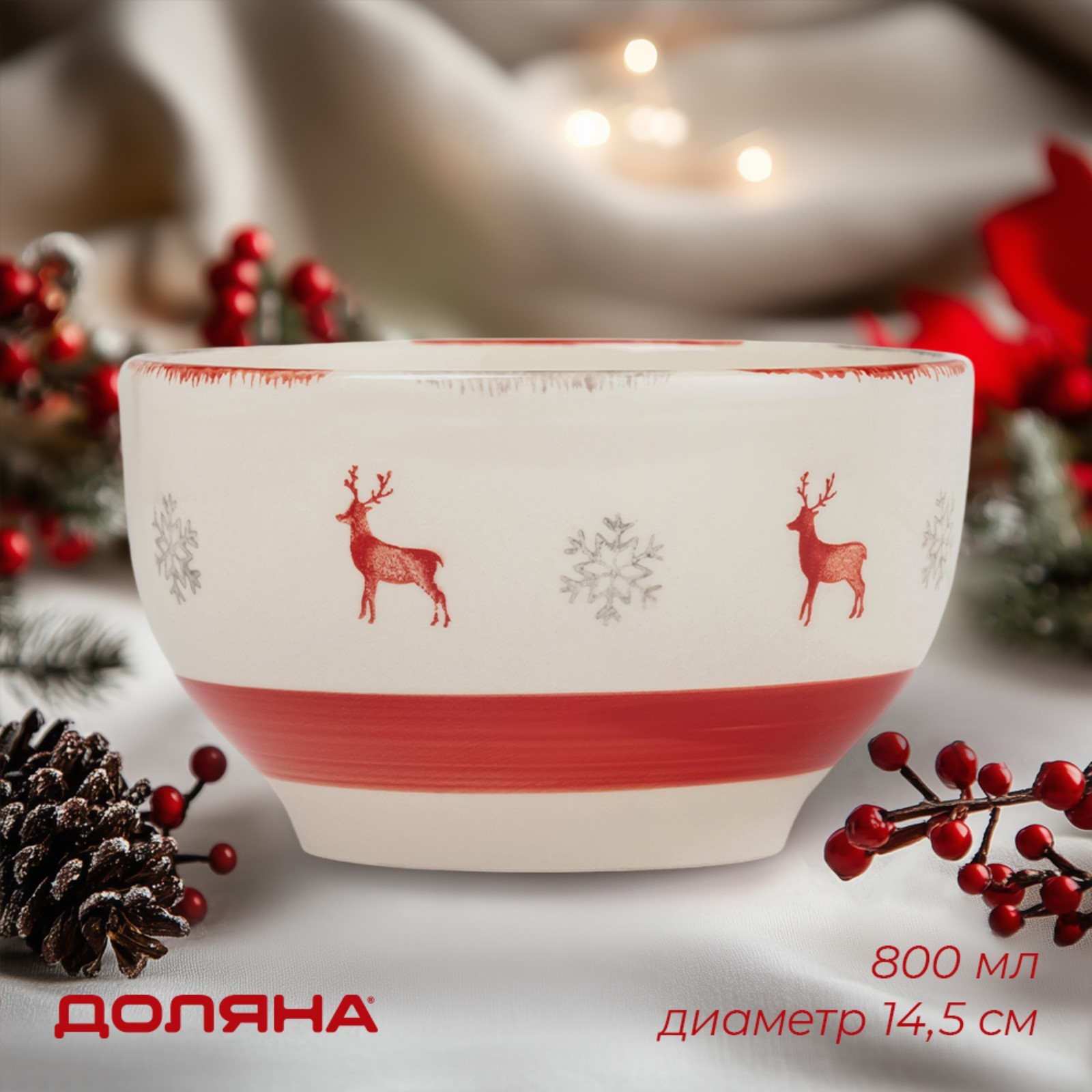 Салатник новогодний доляна «легенда севера», 800 мл, D=14,5 см, цвет бежевый