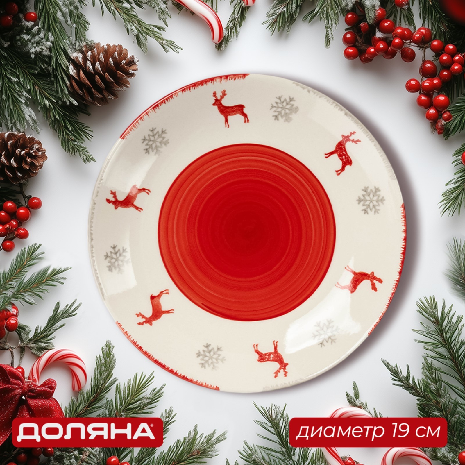 Тарелка новогодняя доляна «легенда севера», D=19 см, цвет бежевый