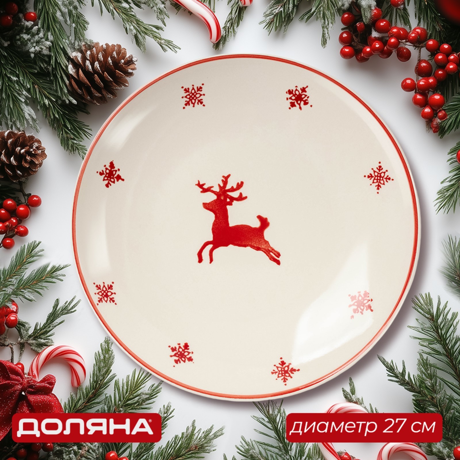 Тарелка новогодняя доляна «нордик», D=27 см, цвет бежевый