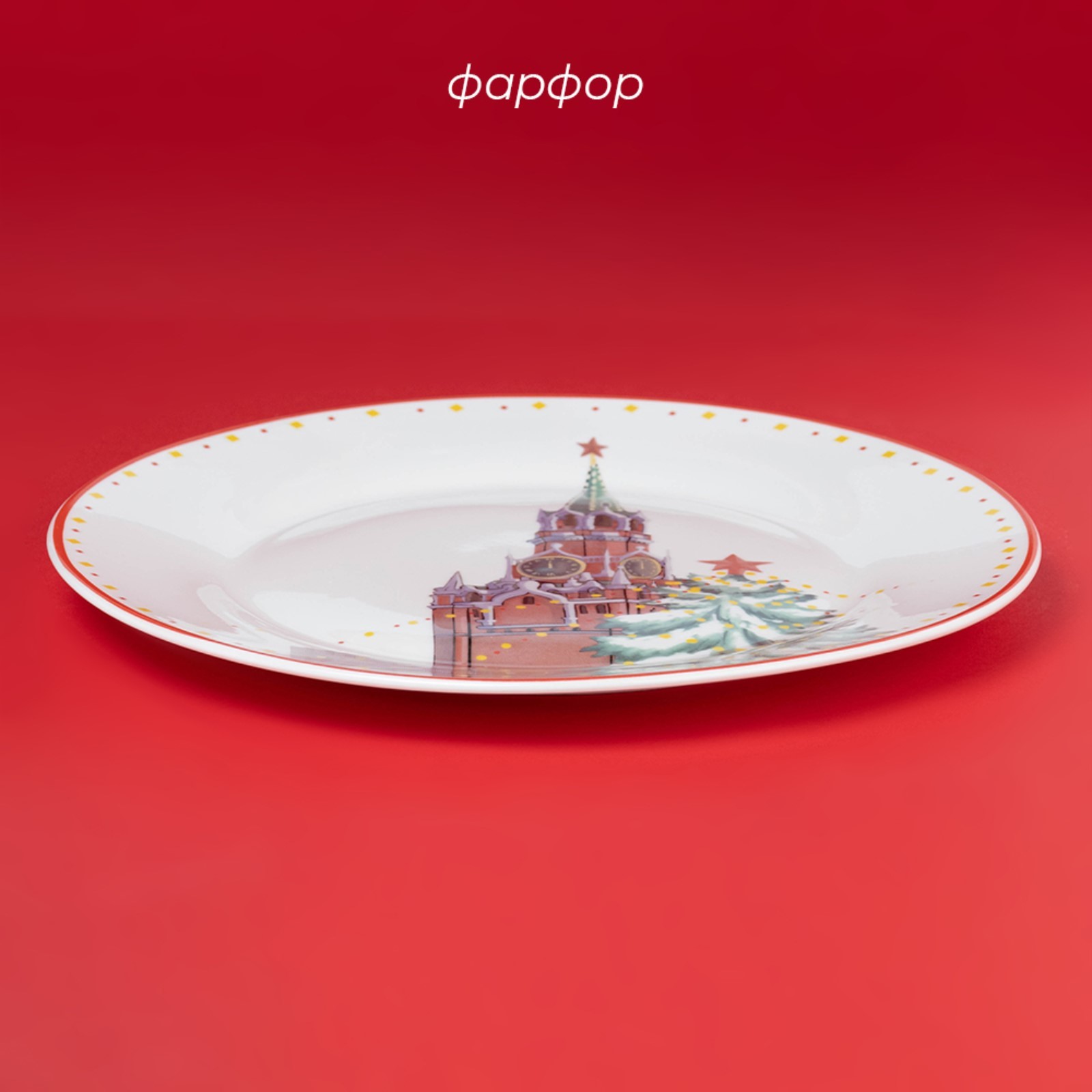 Тарелка новогодняя доляна «московский мишка», D=25,5 см, фарфор, цвет белый