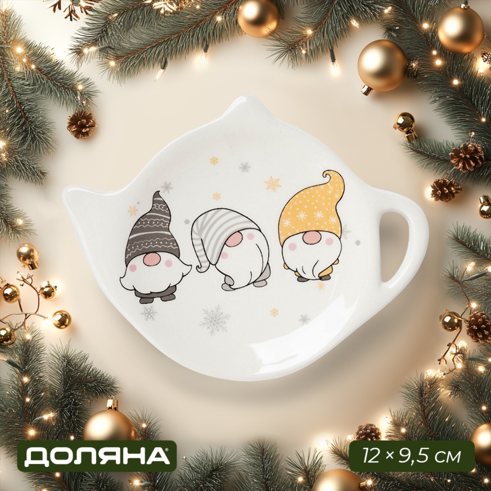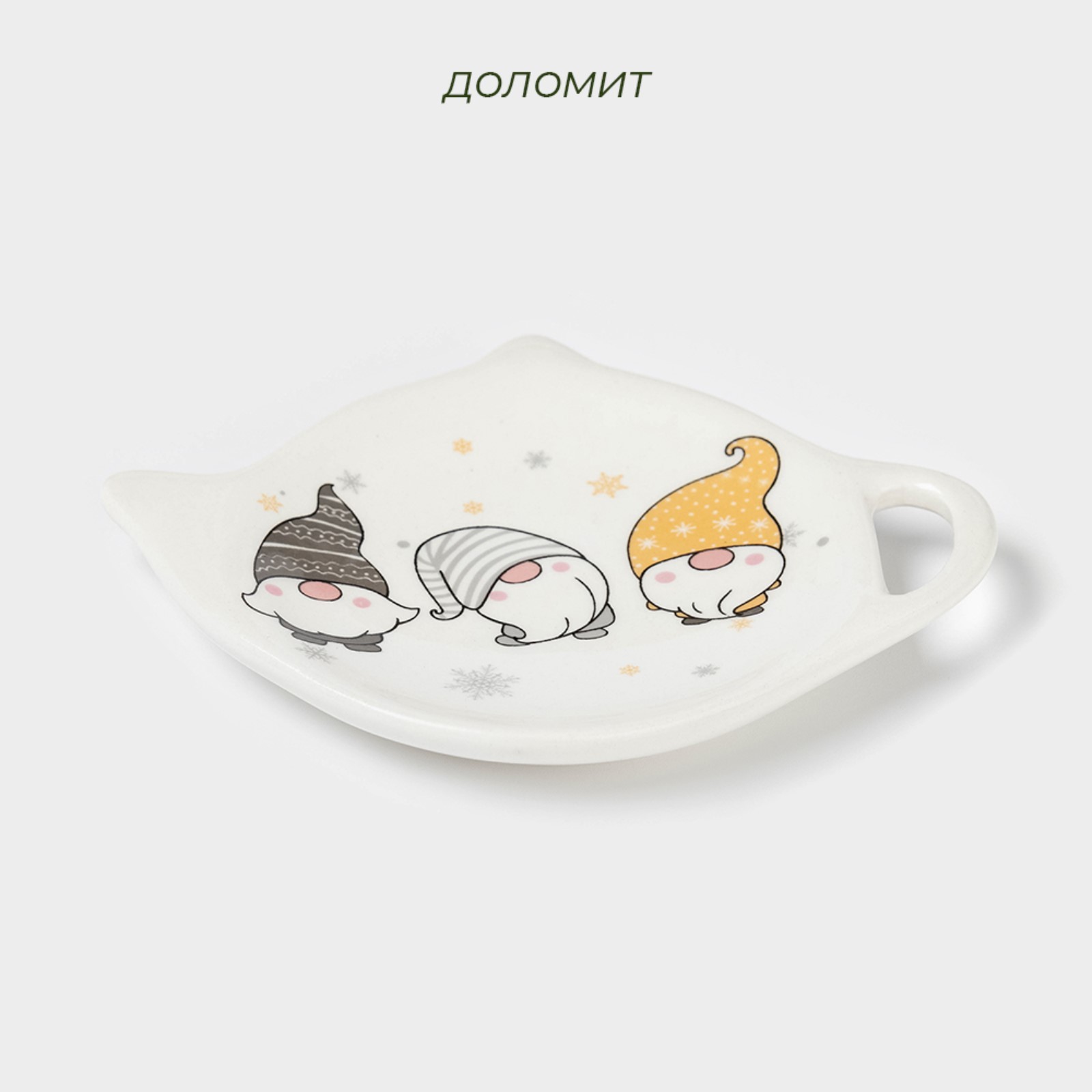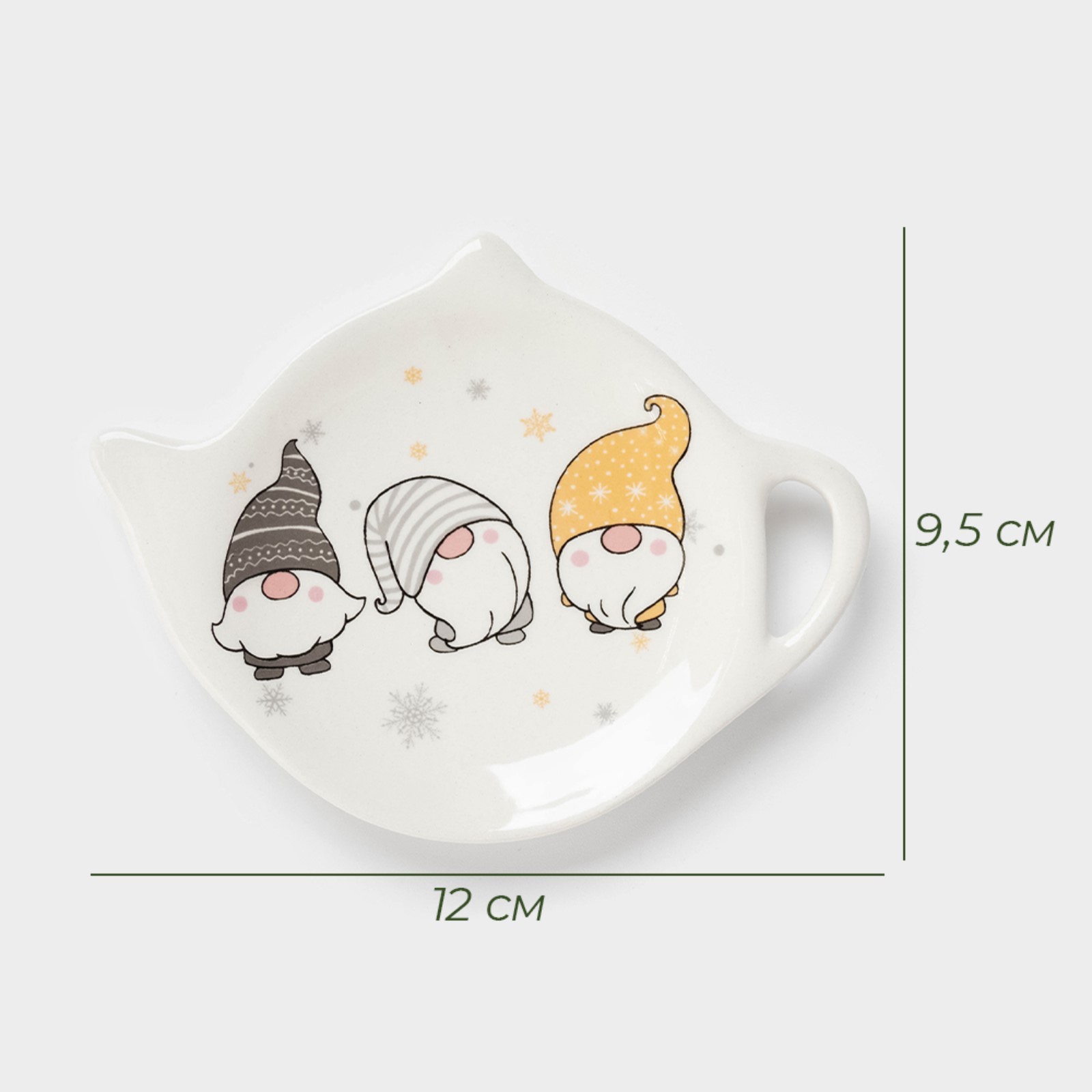 Новогодняя подставка под чайный пакетик доляна «домашние гномики», керамика, 12x9,5 см, цвет белый