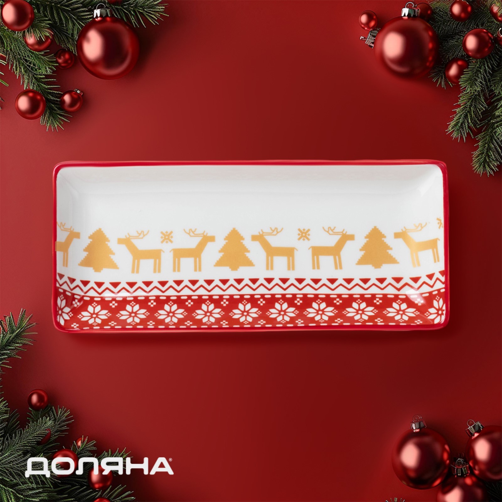 Новогоднее блюдо для сервировки доляна «финский лес», керамика, цвет белый. Новый год — это время, когда сбываются самые заветные желания, а чудеса становятся ближе. Предлагаем вашему вниманию керамическое блюдо Доляна. Это стильное и практичное решение для вашего праздничного стола. Натуральные материалы и яркий дизайн делают это блюдо прекрасным подарком для любой хозяйки. Преимущества посуды из доломита:Лёгкость. Посуда из доломита имеет небольшой вес, что облегчает её использование и уход. Красота. На пористую поверхность доломитовой посуды идеально ложится глазурь и краски, что делает её красивой и декоративной. Доступность. Технология производства позволяет изготавливать качественную доломитовую посуду по относительно невысокой цене. Экологичность. Доломит — натуральный материал, который не содержит вредных веществ и не влияет на качество пищи. При правильном уходе доломитовая посуда может прослужить долгое время, сохраняя свой первоначальный вид и свойства. С инструкцией по эксплуатации посуды из доломита вы можете ознакомиться в разделе «Документы». Цвет: Белый Форма: Прямоугольная Тематика: Новогодняя Материал: Керамика Можно мыть в посудомоечной машине: Нет Можно использовать в СВЧ-печи: Нет Особенности: Без особенностей Форма: Прямоугольник  развернуть описание ▼