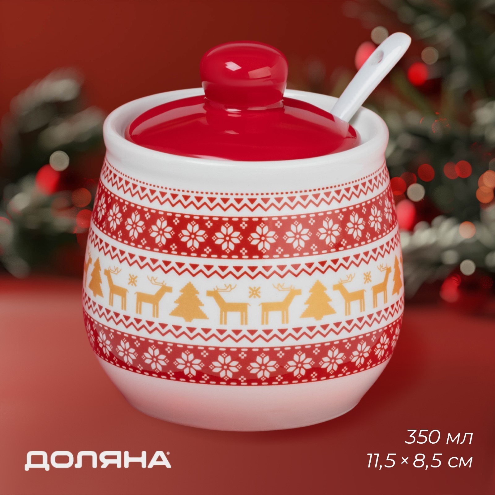 Банка для хранения сыпучих продуктов доляна «финский лес», 350 мл, керамика, цвет белый