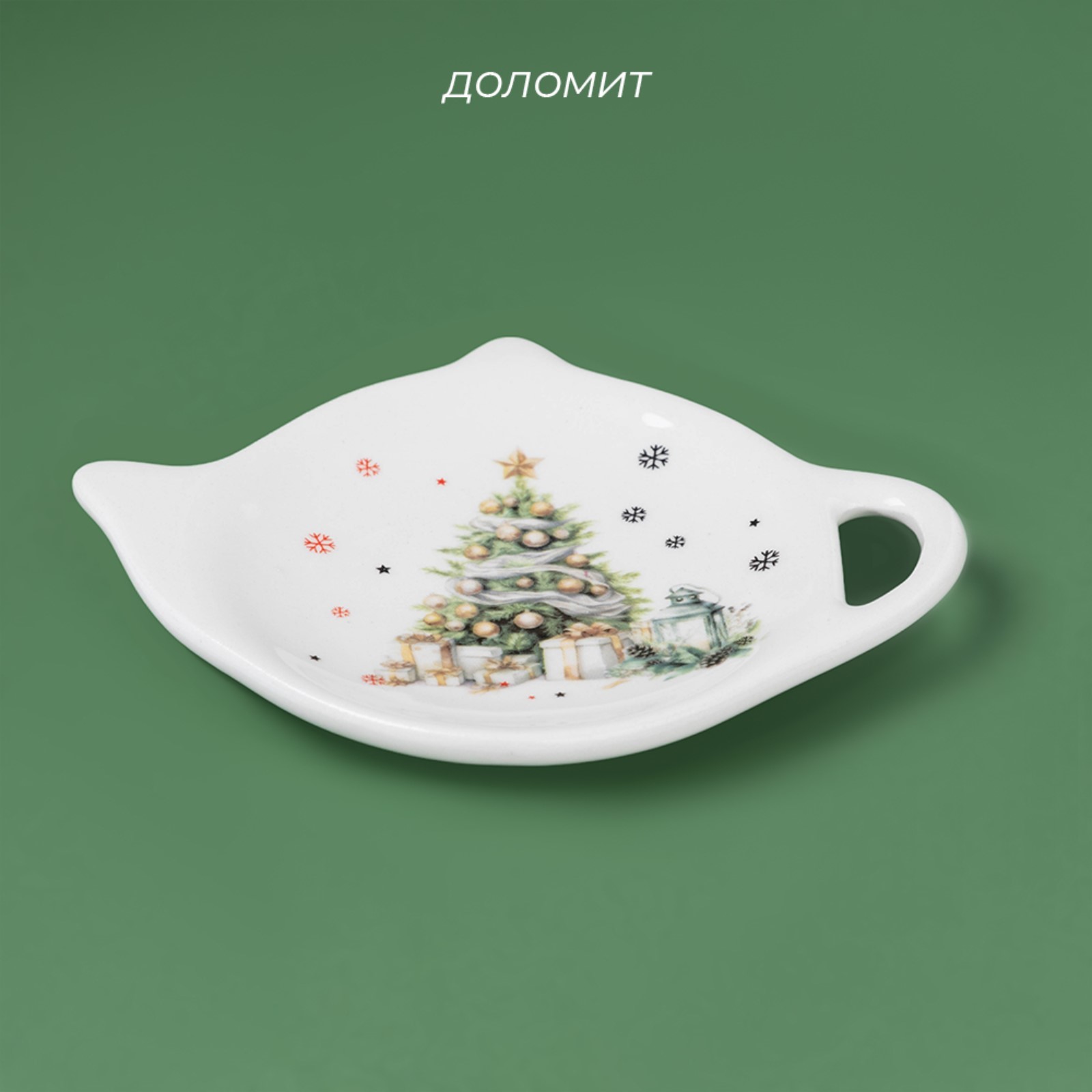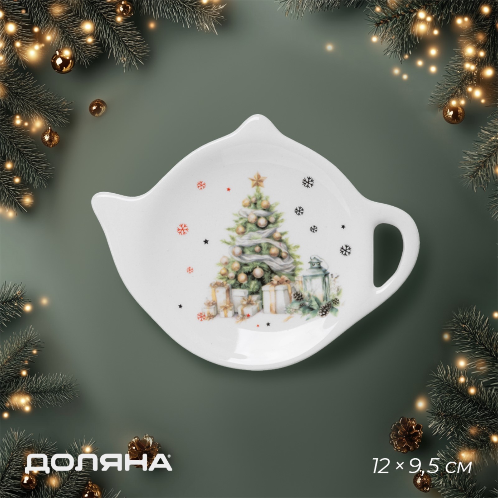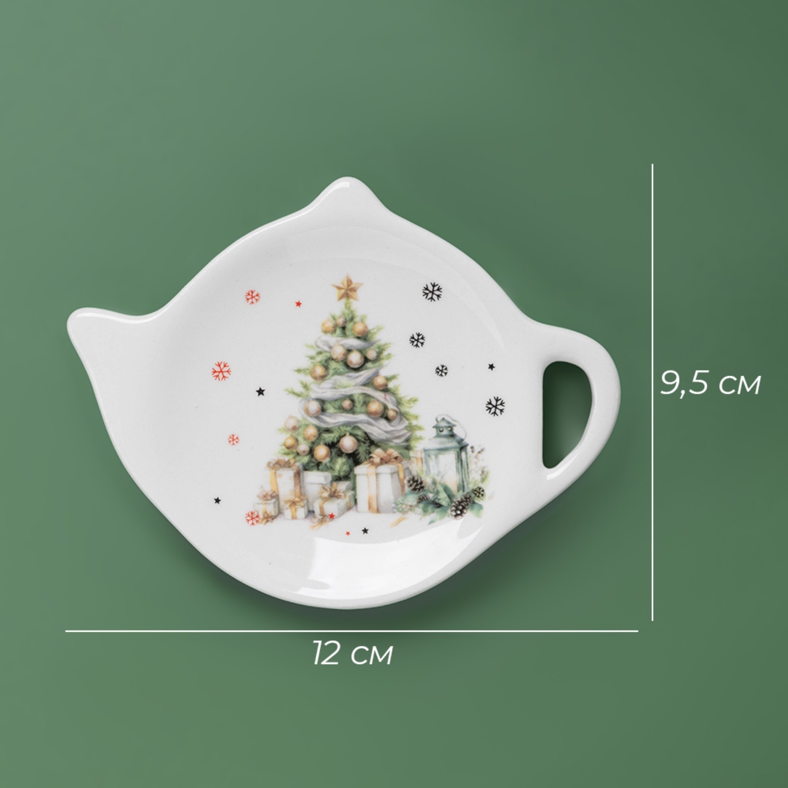 Новогодняя подставка под чайный пакетик доляна «приближение чуда», керамика, 12x9,5 см, цвет белый