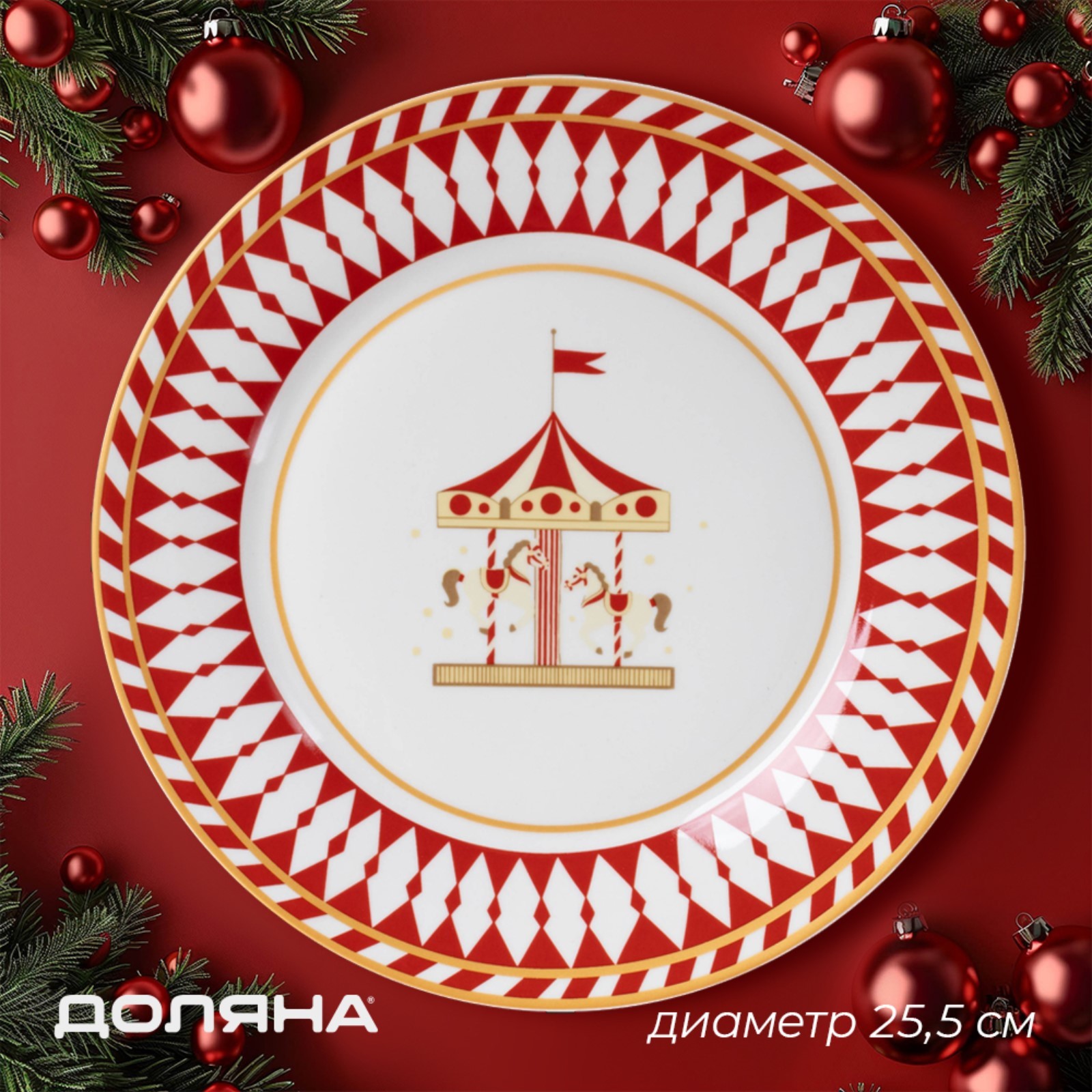 Тарелка новогодняя доляна «парк аттракционов», D=25,5 см, фарфор, цвет белый