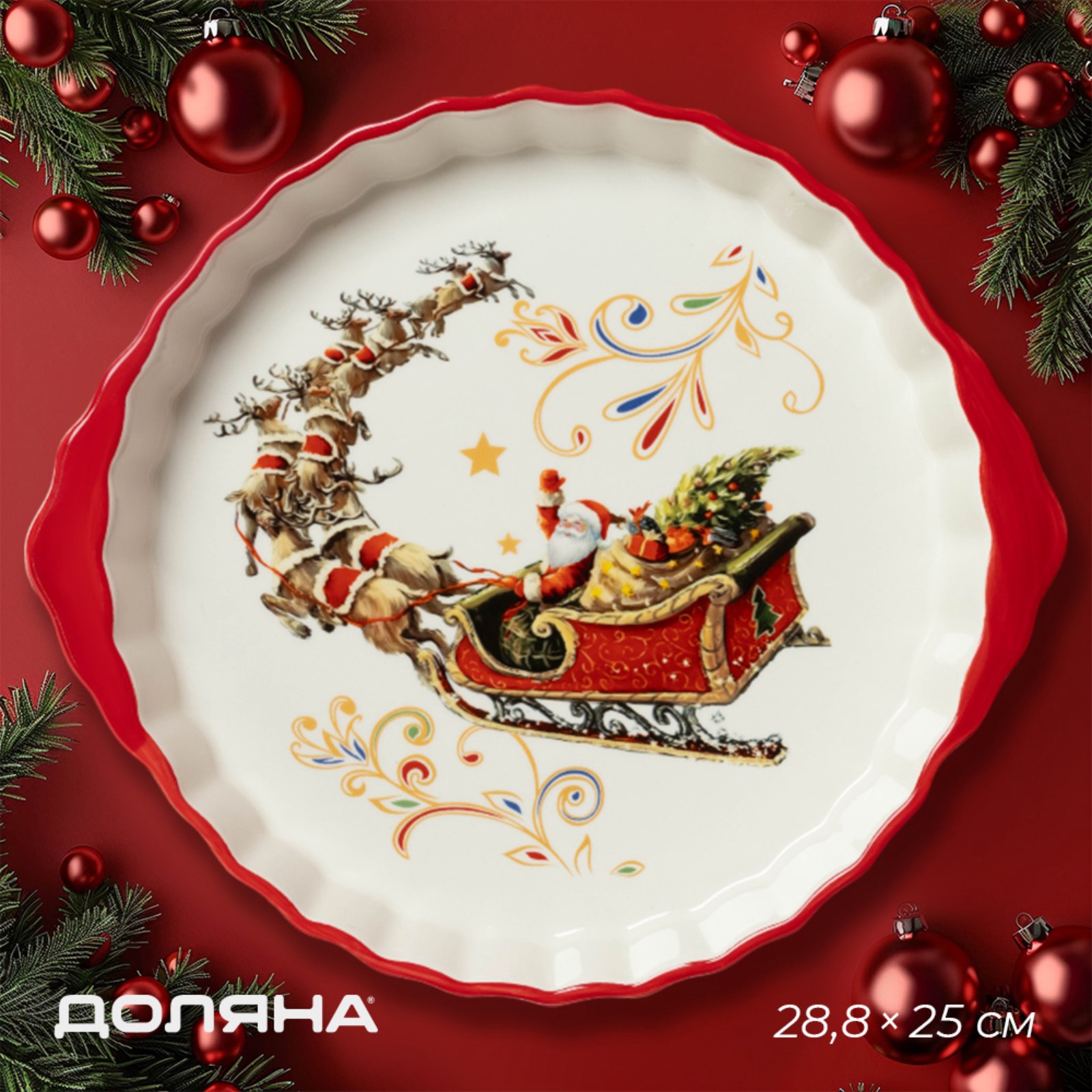 Блюдо для запекания новогоднее доляна «сани деда мороза», 28,8 25 4,3 см.   Блюдо для запекания «Сани Деда Мороза» от Доляна — это не просто кухонная утварь, это произведение искусства, созданное для того, чтобы сделать вашу жизнь ярче и вкуснее. Изготовленное из высококачественного материала, это блюдо станет надёжным помощником в приготовлении самых разнообразных блюд. Его размеры позволяют запекать большие порции, а благодаря удобной форме и антипригарному покрытию, блюда получаются равномерно пропечёнными и легко извлекаются из формы. Но главное достоинство блюда для запекания «Сани Деда Мороза» — это его неповторимый дизайн. Изящные сани, украшенные яркими узорами и новогодними мотивами, станут настоящим украшением вашего стола и создадут атмосферу праздника. Преимущества: Размер: Блюдо достаточно большое, чтобы вместить достаточное количество еды для всей семьи или компании друзей. Это делает его идеальным для праздничных мероприятий или уютных вечеров с близкими.Дизайн: яркий новогодний дизайн с изображением саней Деда Мороза. Блюдо украшено красочными узорами и мотивами, связанными с праздником. Такой дизайн добавляет радости и веселья к столу, создавая атмосферу праздника и ожидания чудес.Материал: изготовлено из доломита. Этот материал обладает высокой термостойкостью и равномерно распределяет жар, что обеспечивает равномерное приготовление пищи без пригорания. Кроме того, доломит является экологически чистым материалом, безопасным для здоровья.Универсальность: можно использовать для подачи закусок, кондитерских изделий и фруктов. Блюдо подходит для подачи различных видов блюд, будь то основное блюдо, десерт или закуска. Это делает его универсальным и практичным выбором для любого случая.Рекомендованная температура: до 200 °C. Блюдо можно использовать для приготовления различных блюд при температуре до 200 °C. Это позволяет готовить разнообразные блюда, включая мясо, рыбу, овощи и выпечку.Набор:Нет|Цвет:Белый|Цвет:Красный|Количество ячеек:1|Высота стенки, см:4.3|Объём, мл:1100|Рисунок:Да|Крышка:Нет|Материал:Керамика (Доломит)|Тип покрытия:Без покрытия|Тип формы:Для коржей|Тип формы:Для приготовления вторых блюд|Тип формы:Для пирогов|Разъёмная форма:Нет|Можно мыть в посудомоечной машине:Да|Страна:Китай  развернуть описание ▼