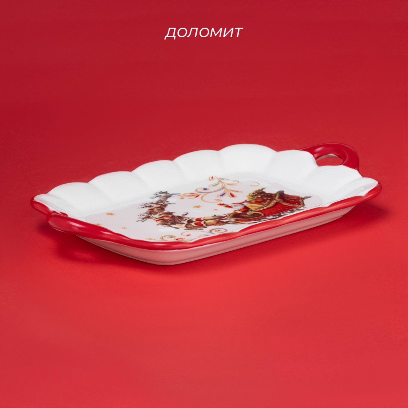 Тарелка новогодняя доляна «сани деда мороза», 23x14 см, керамика, цвет белый