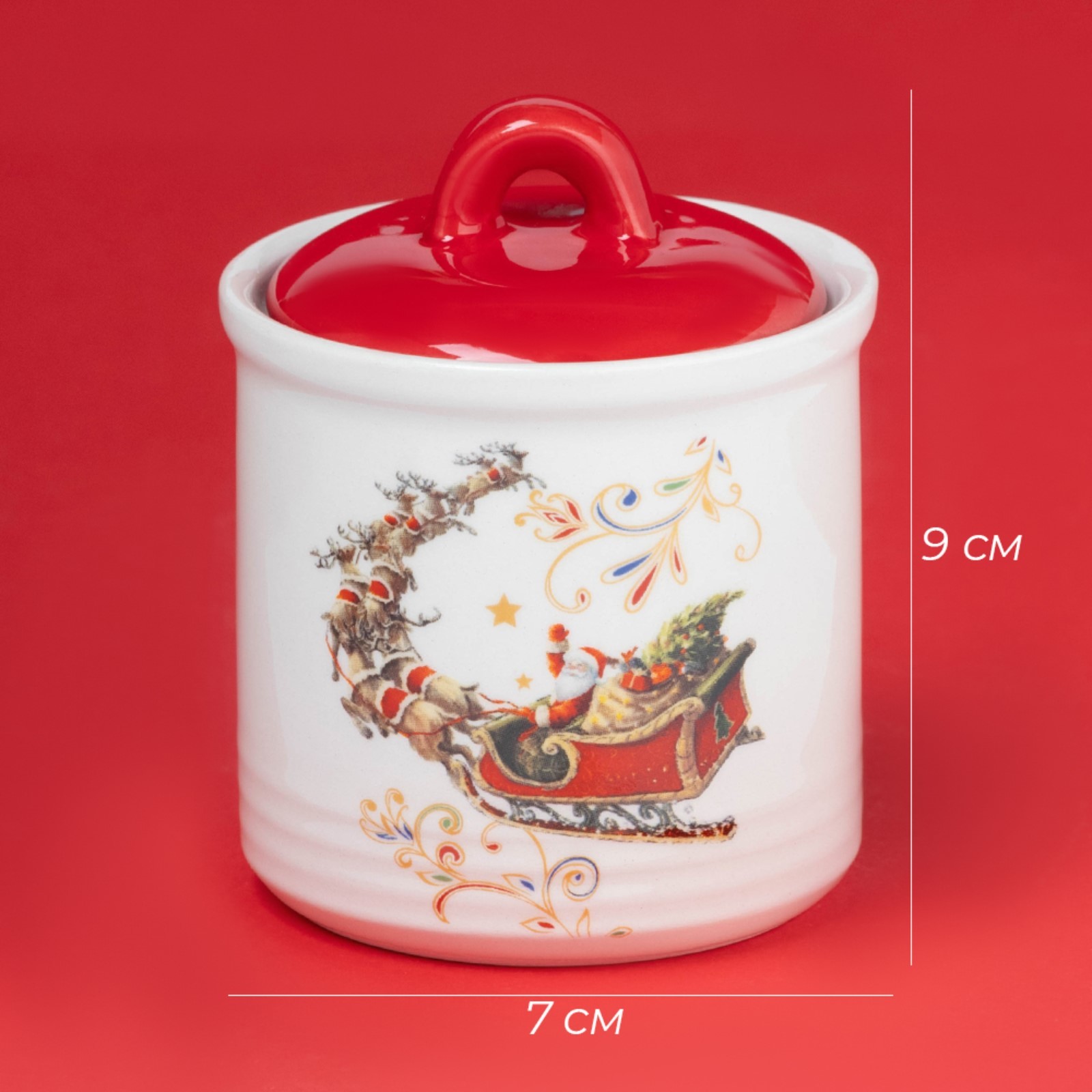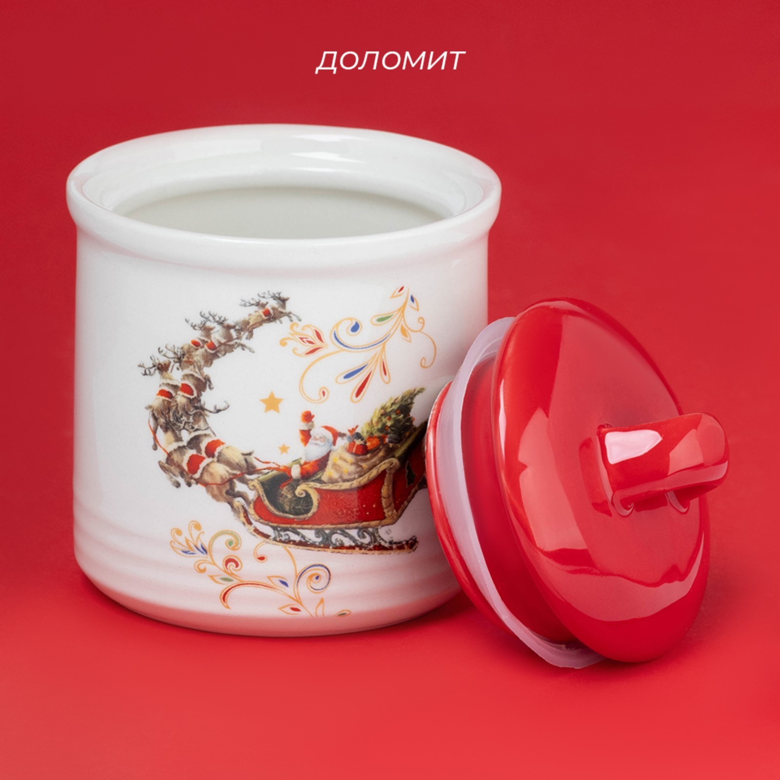 Банка для хранения сыпучих продуктов доляна «сани деда мороза», керамика, цвет белый