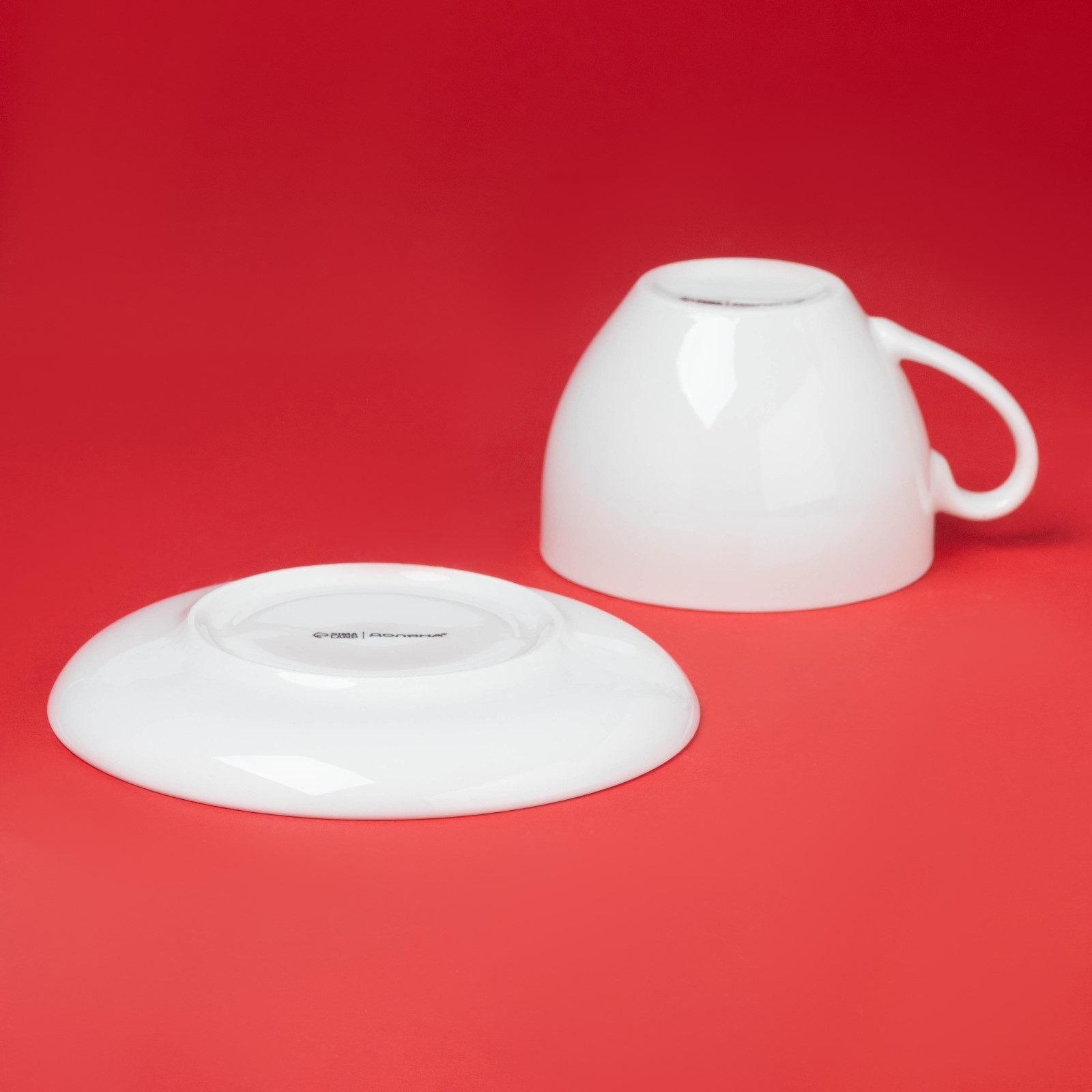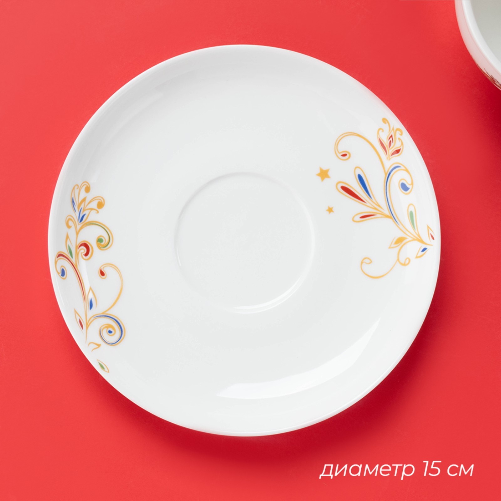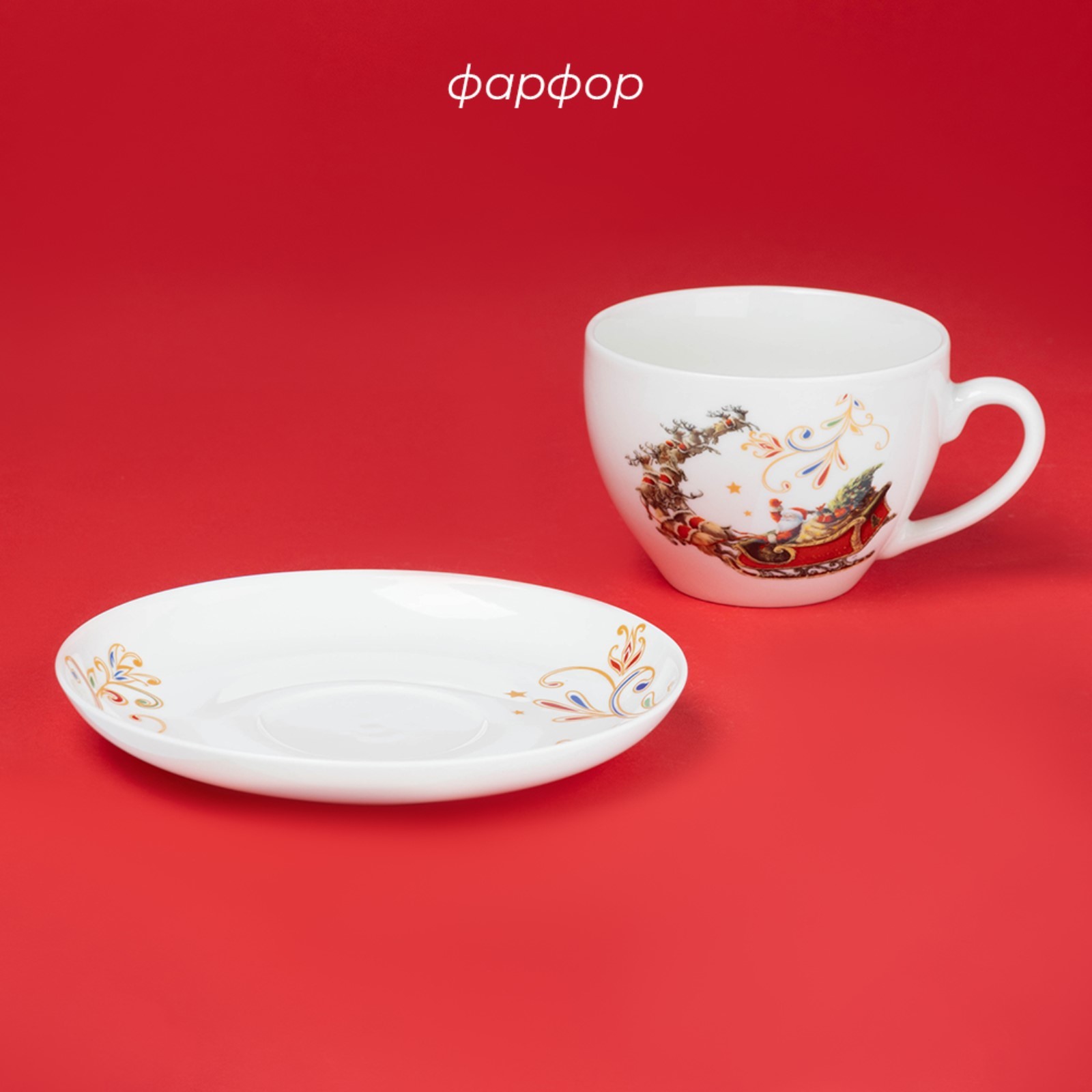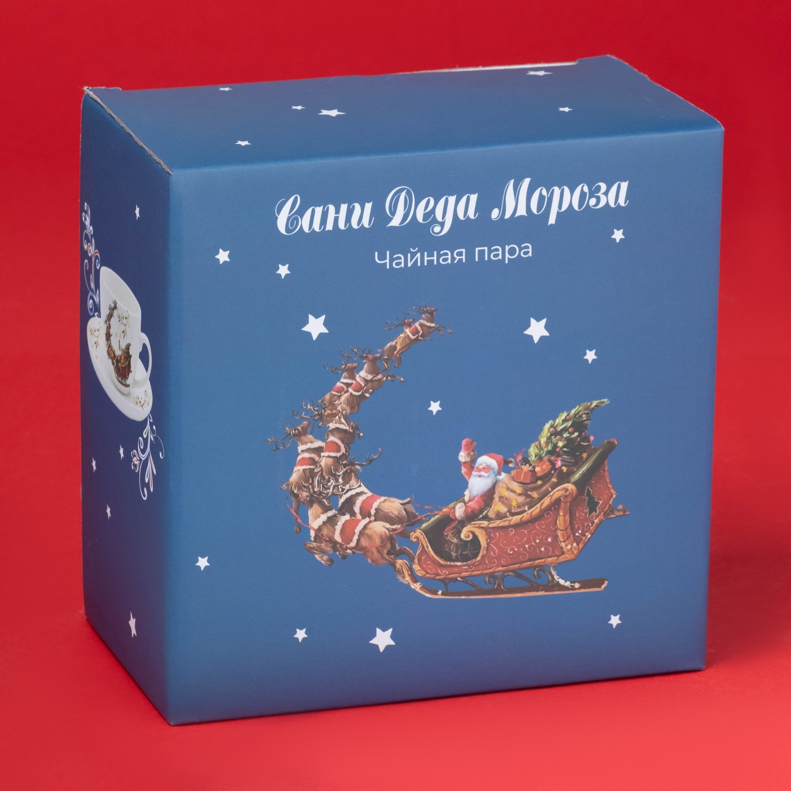 Новогодняя чайная пара доляна «сани деда мороза», 2 предмета: чашка 210 мл, блюдце D=15 см, фарфор, цвет белый