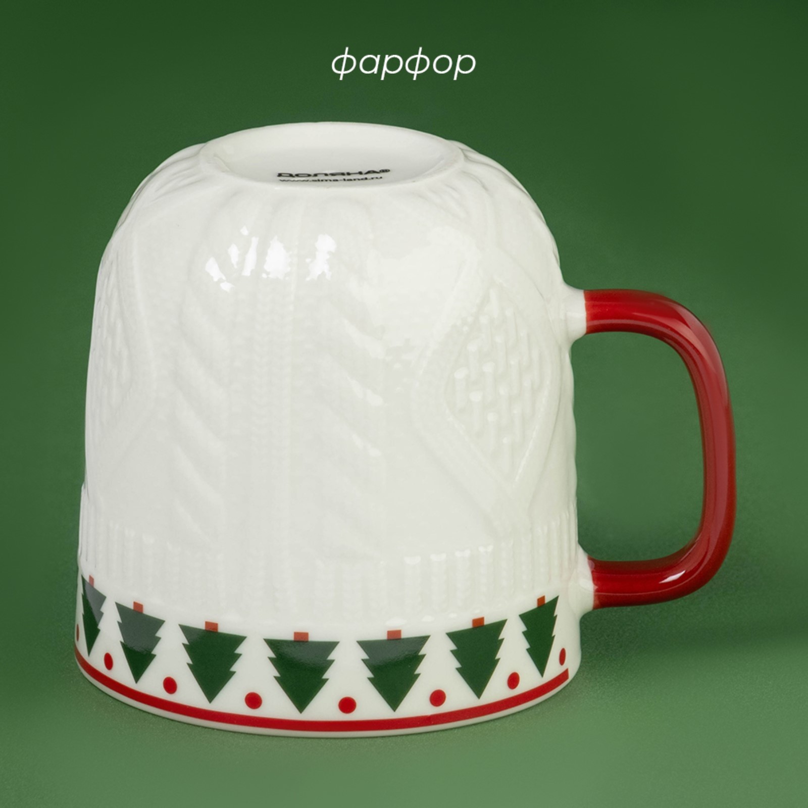 Кружка доляна «уютный новый год», 370 мл, 12 9 9,2 см, фарфор, белая