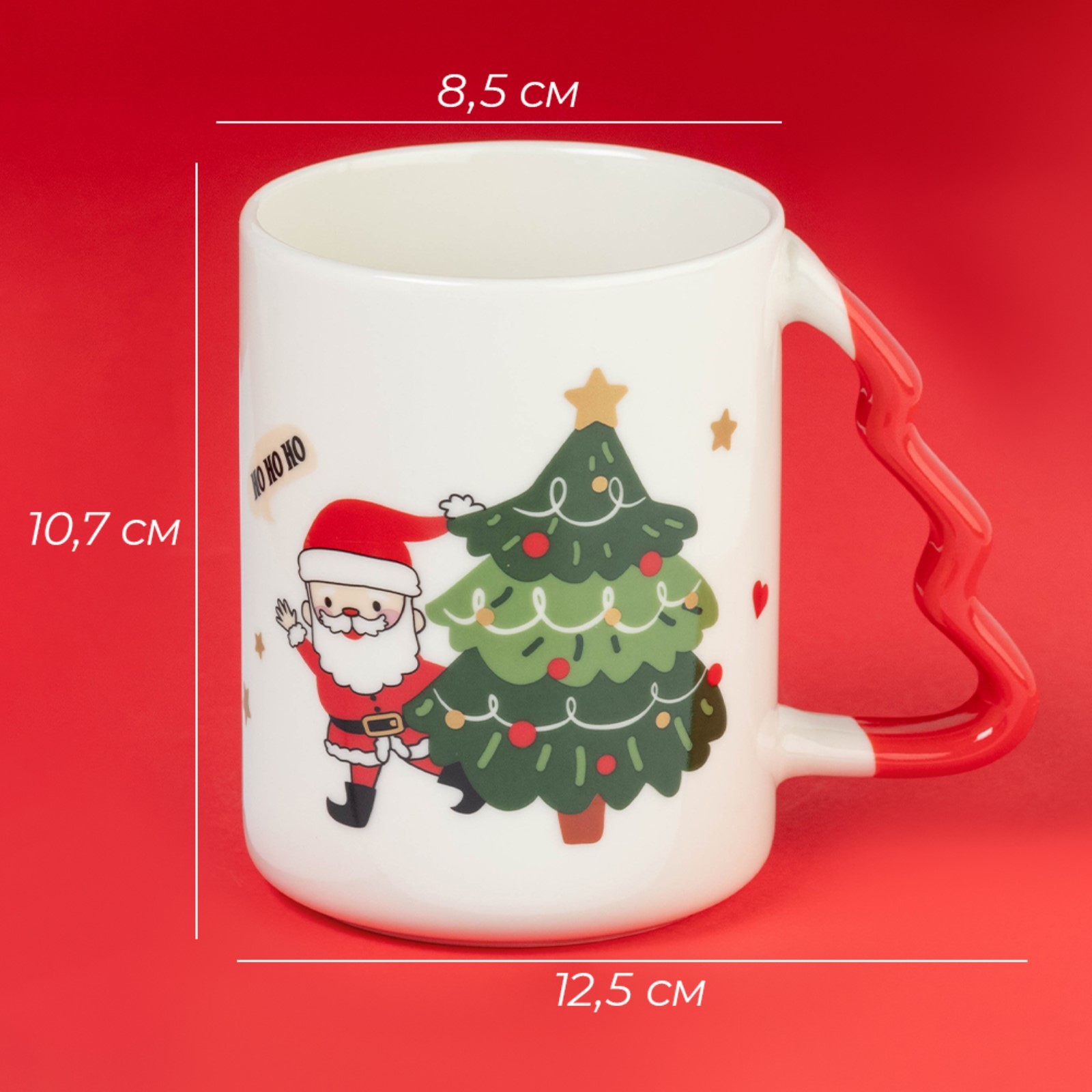 Новогодняя кружка доляна «веселый дедушка», 400 мл, 12,5x8,5x10,7см, цвет белый