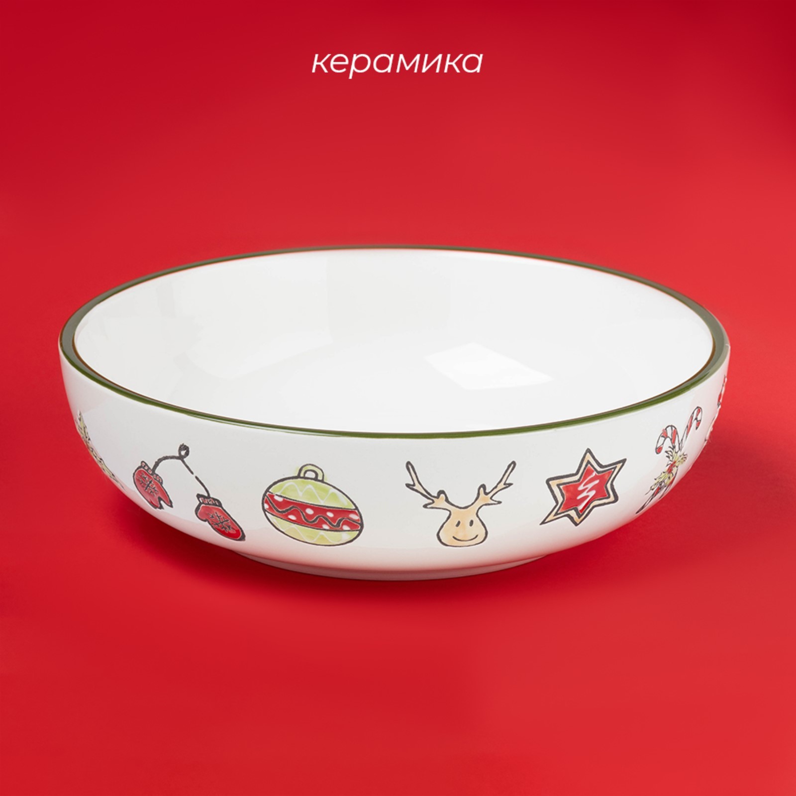 Тарелка новогодняя глубокая доляна Sweet Treats, 1,1 л, D=20,7 см, керамика, цвет белый