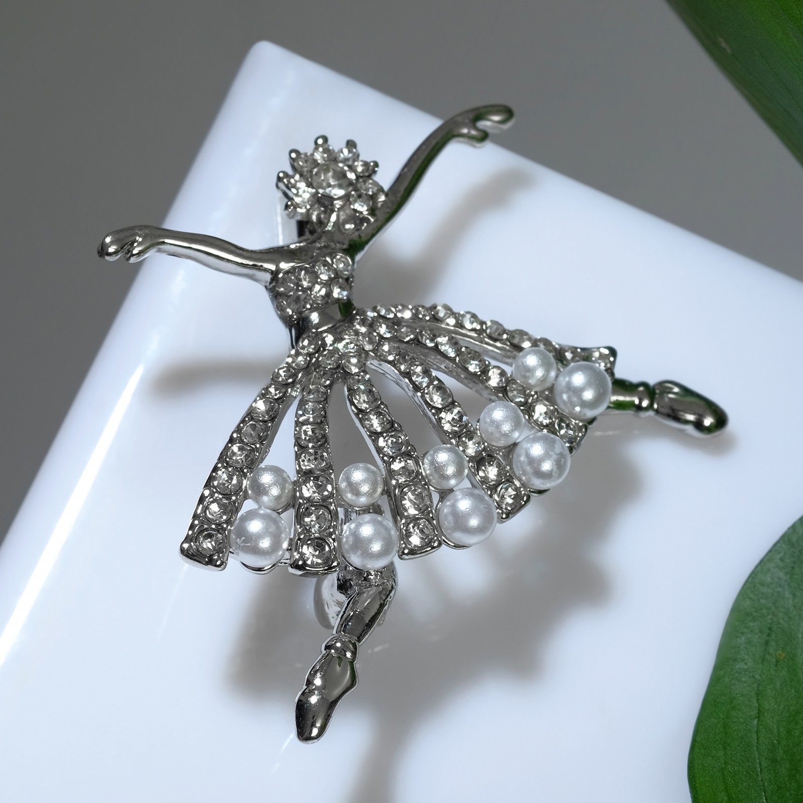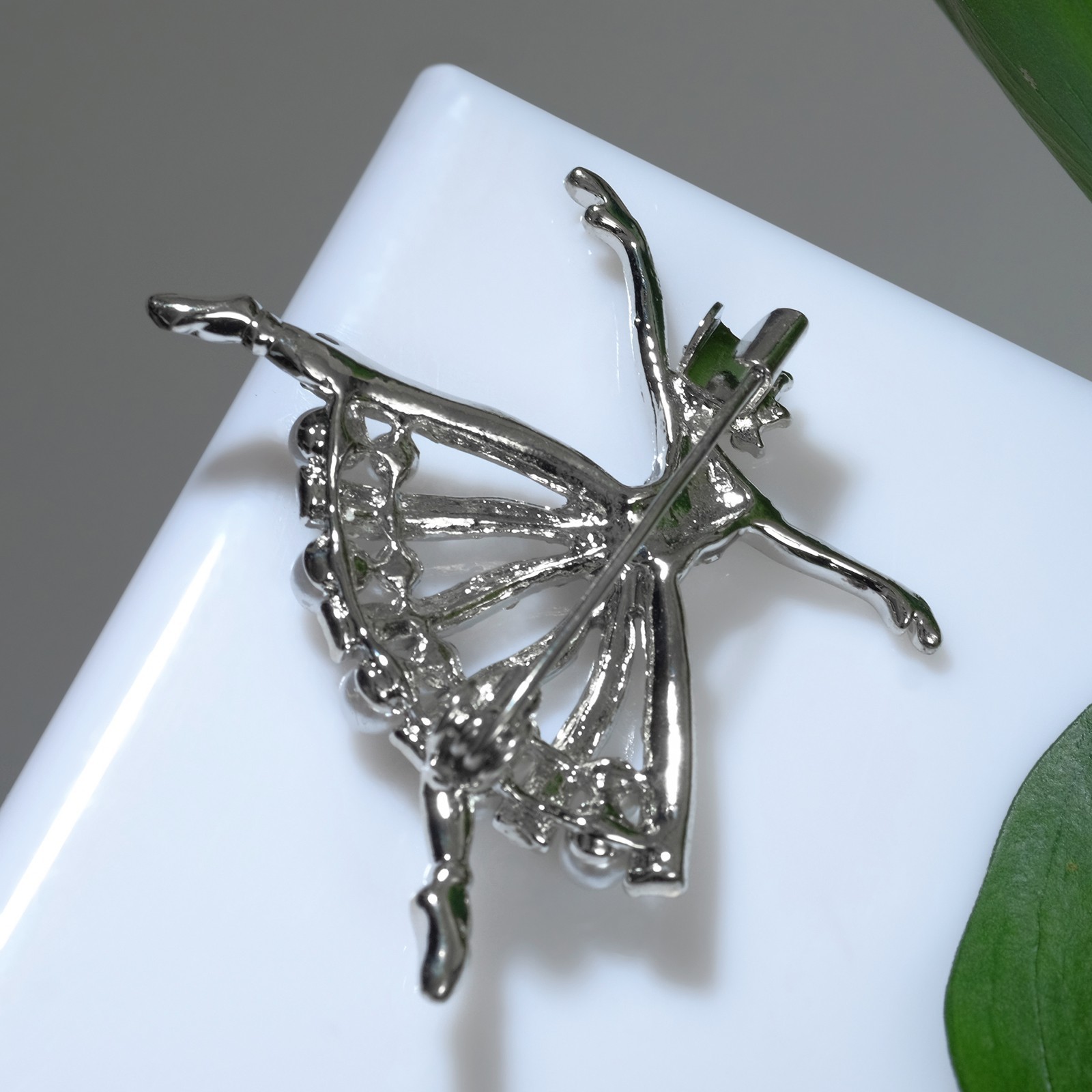 Брошь «балерина» с бусинками, цвет белый в серебре