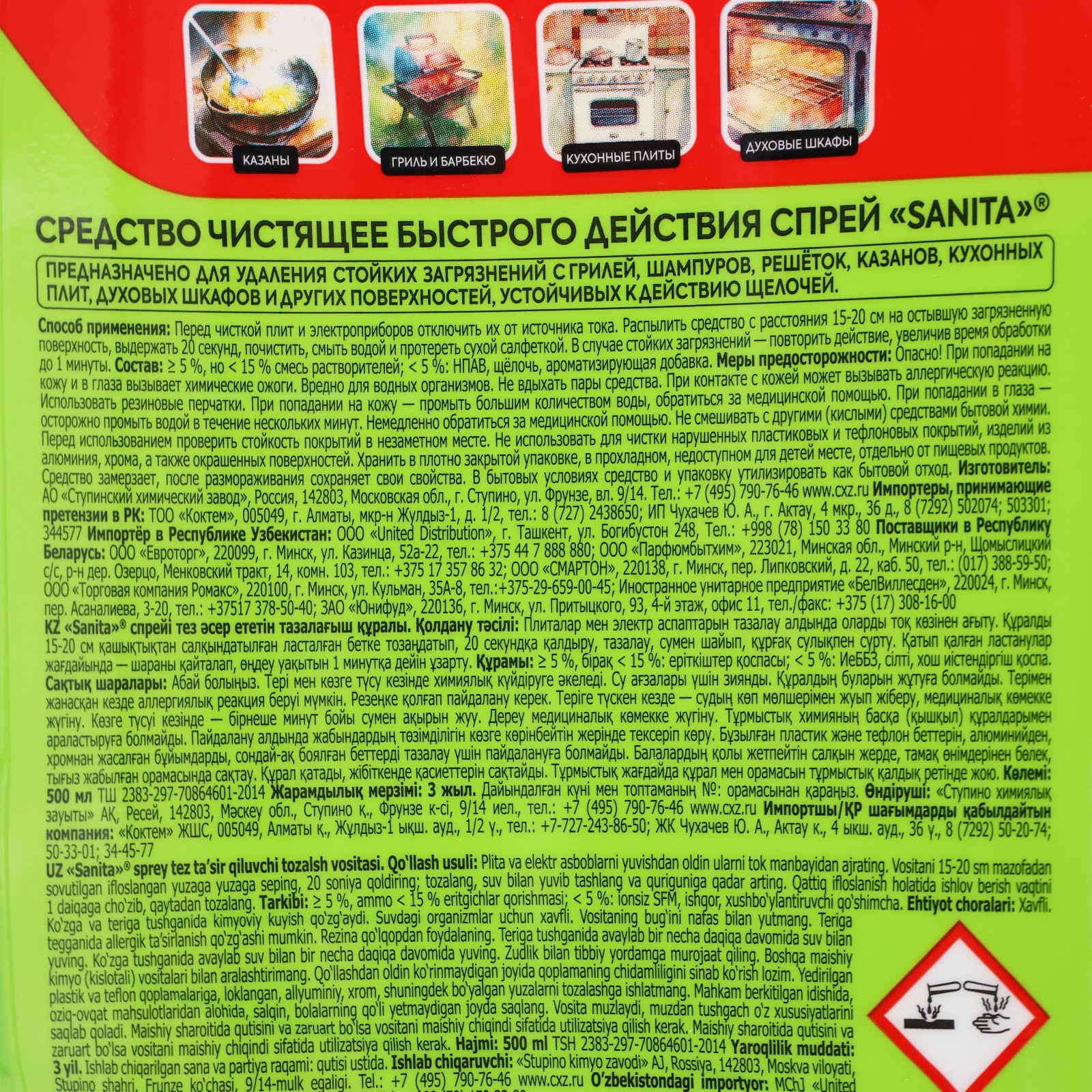 Средство чистящее Sanita казан-мангал, спрей, 500 мл