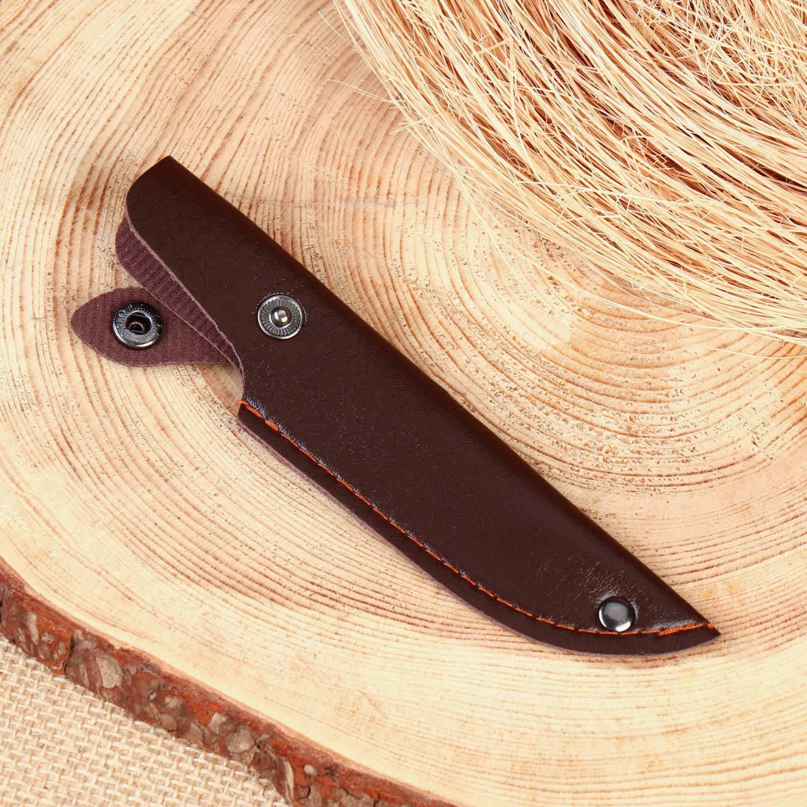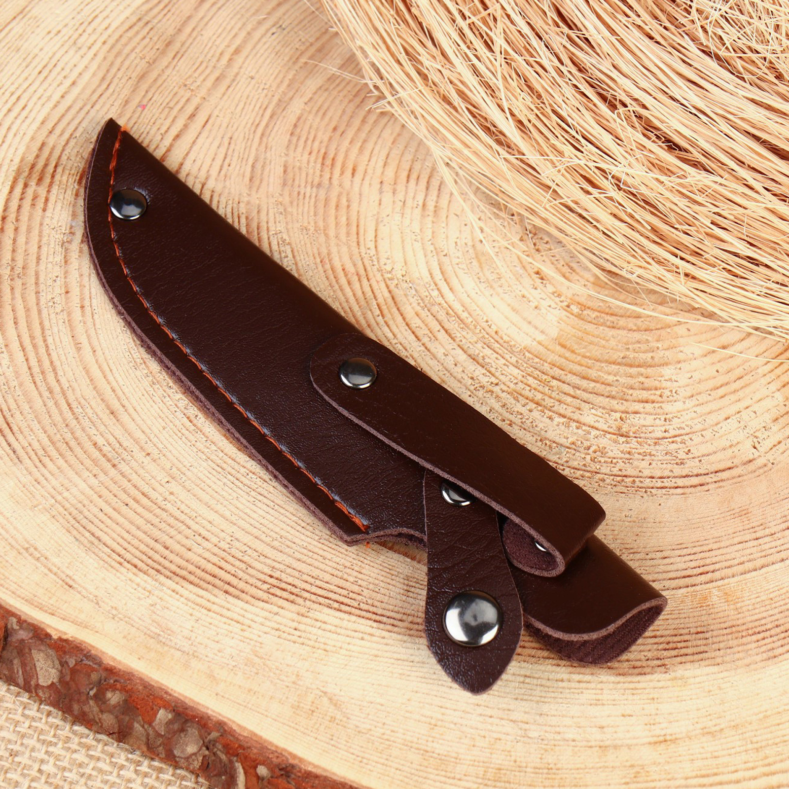 Ножны - чехол для ножа, под лезвие до 10 х 3 см, темно-коричневый. Ножны-чехол для ножа — это функциональный аксессуар, предназначенный для безопасного и удобного хранения и переноски ножей. Ножны выполнены из искусственной кожи в минималистичном стиле. Чехол компактный, благодаря чему не добавляет излишнего объема и веса ножу. Цвет: Коричневый Ширина клинка, см: 3 Длина клинка, см: 10 Материал: Искусственная кожа  развернуть описание ▼