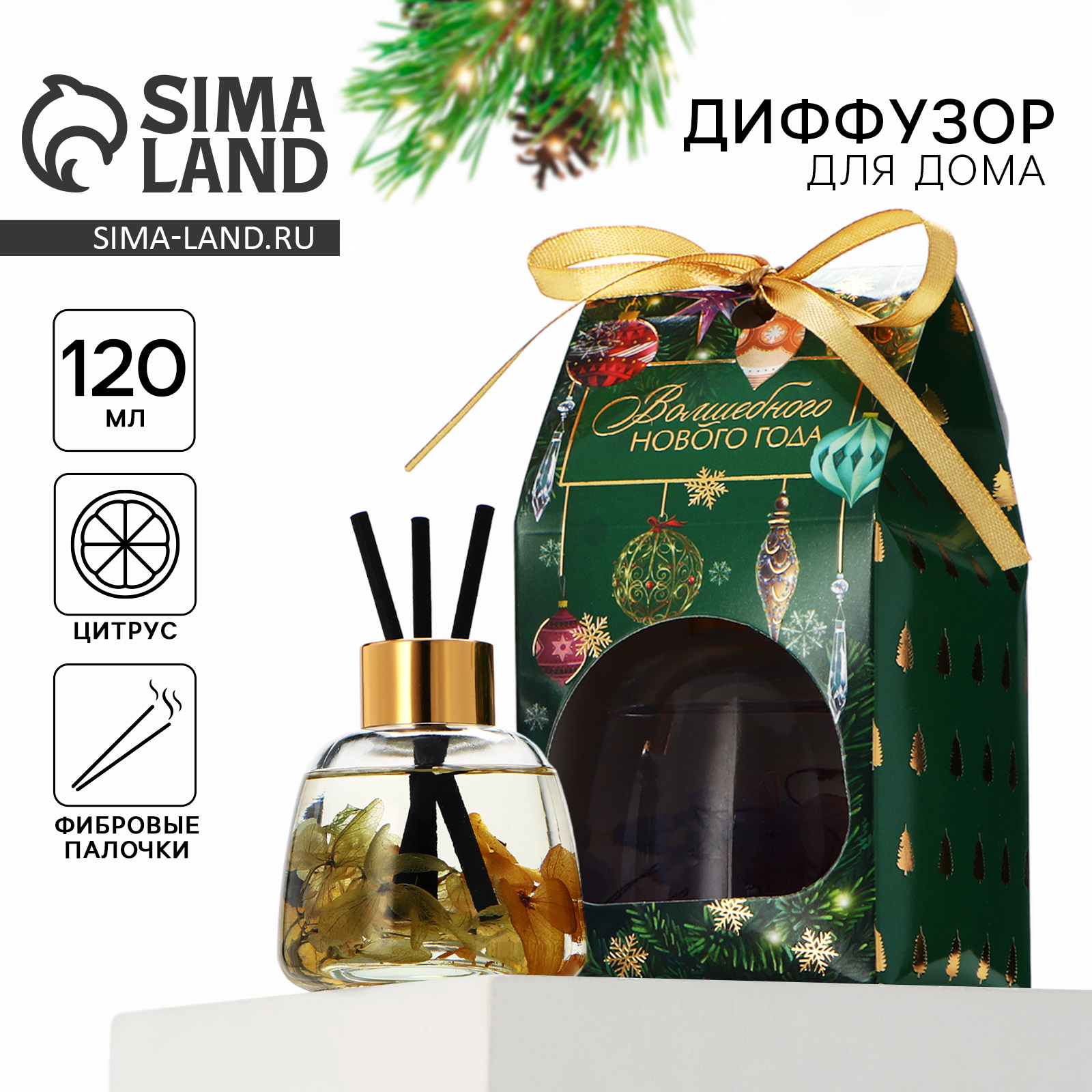 Аромадиффузор для дома новогодний «новый год: аромат цитрус», 120 мл.