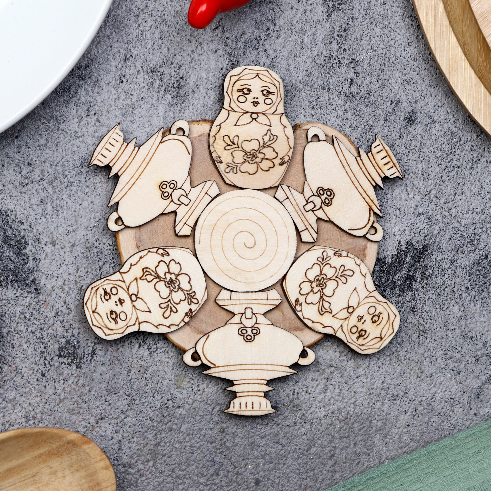 Подставка под горячее "самовар с матрёшкой", D=12 см, можжевельник