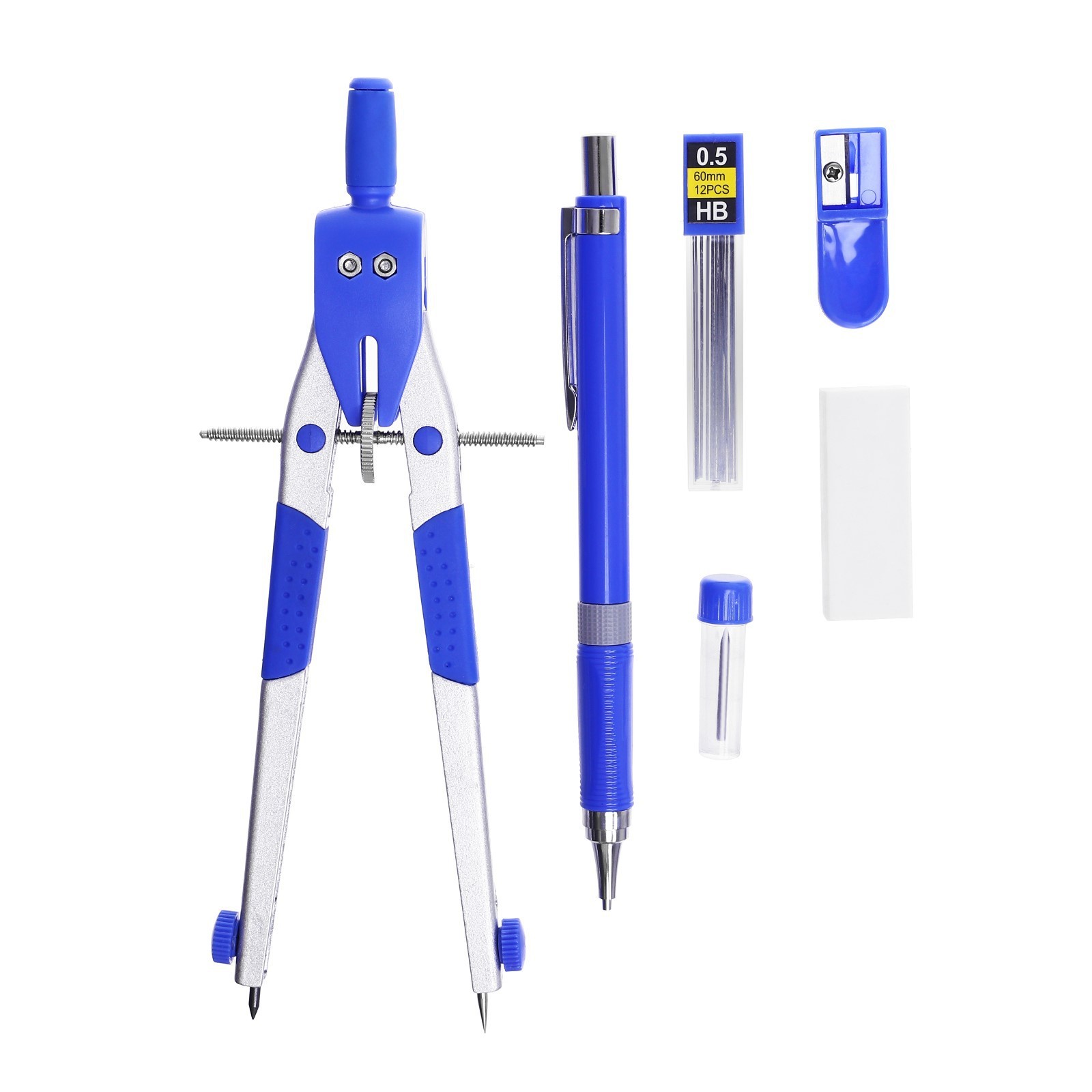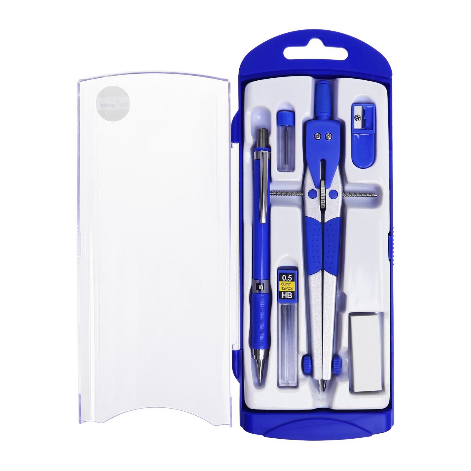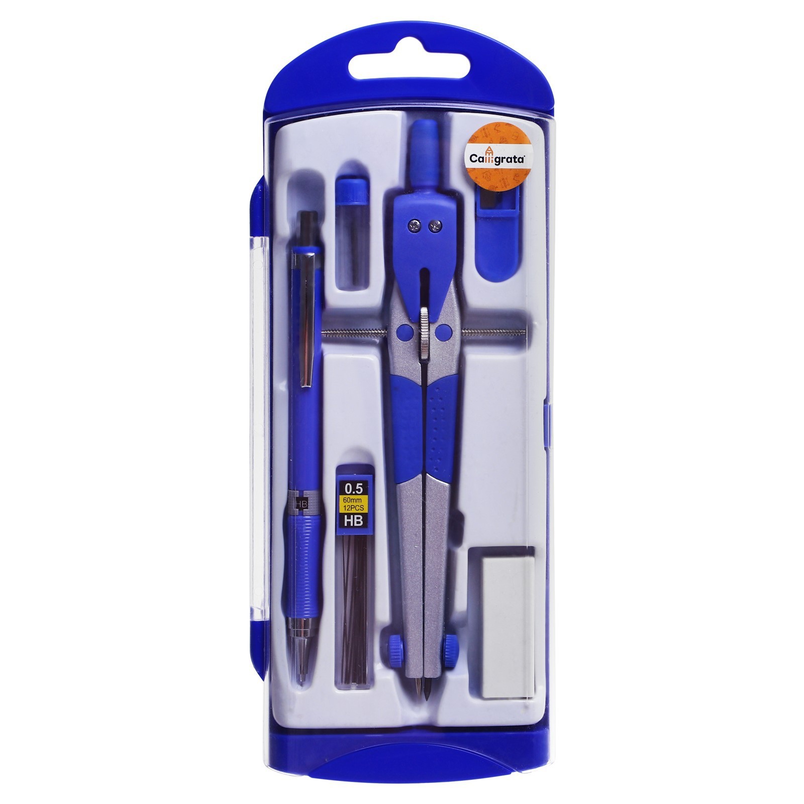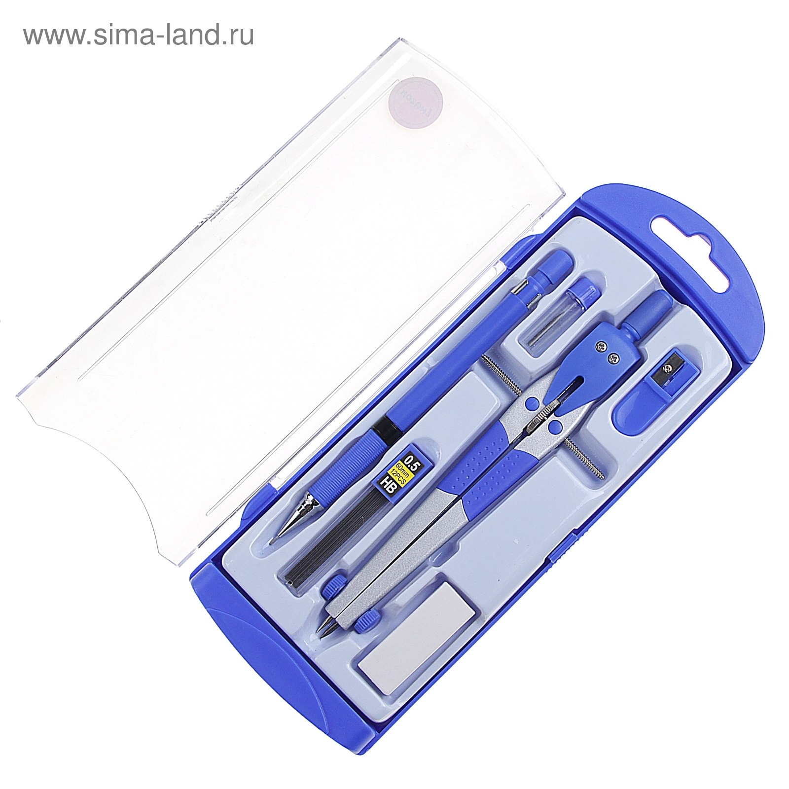 Готовальня, 6 предметов: циркуль, точилка, грифель, ластик, карандаш механический 0.5 мм, грифель нв 0.5 мм, в пластиковом пенал
