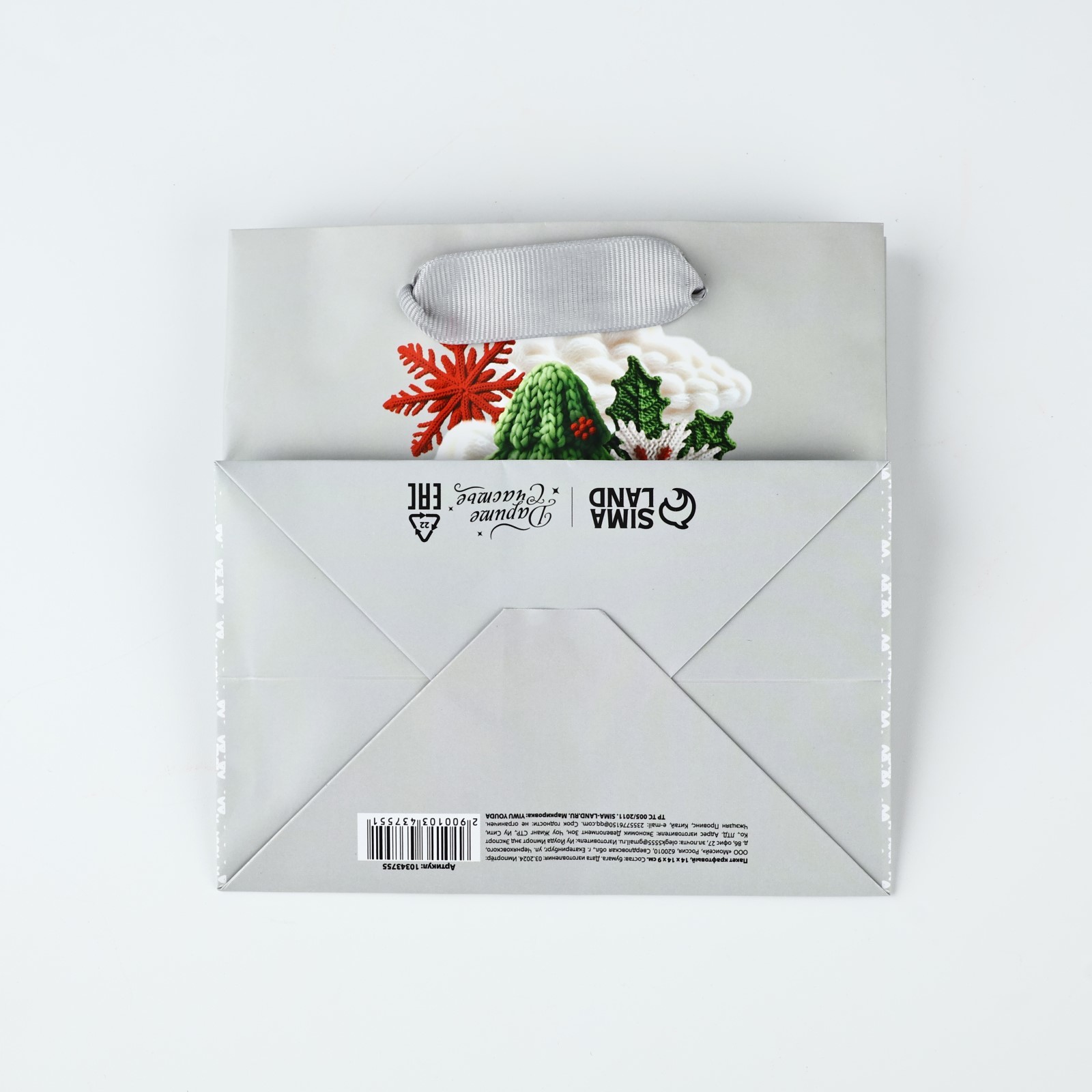 Цвет:Серый|Для кого:Унисекс|Плотность, г/м :150|Тематика:Новогодняя|Символ года:Нет|Тематика праздника:Новый год|Отделка пакета:Без отделки|Вид ручки:Ручка-лента|Страна:Китай