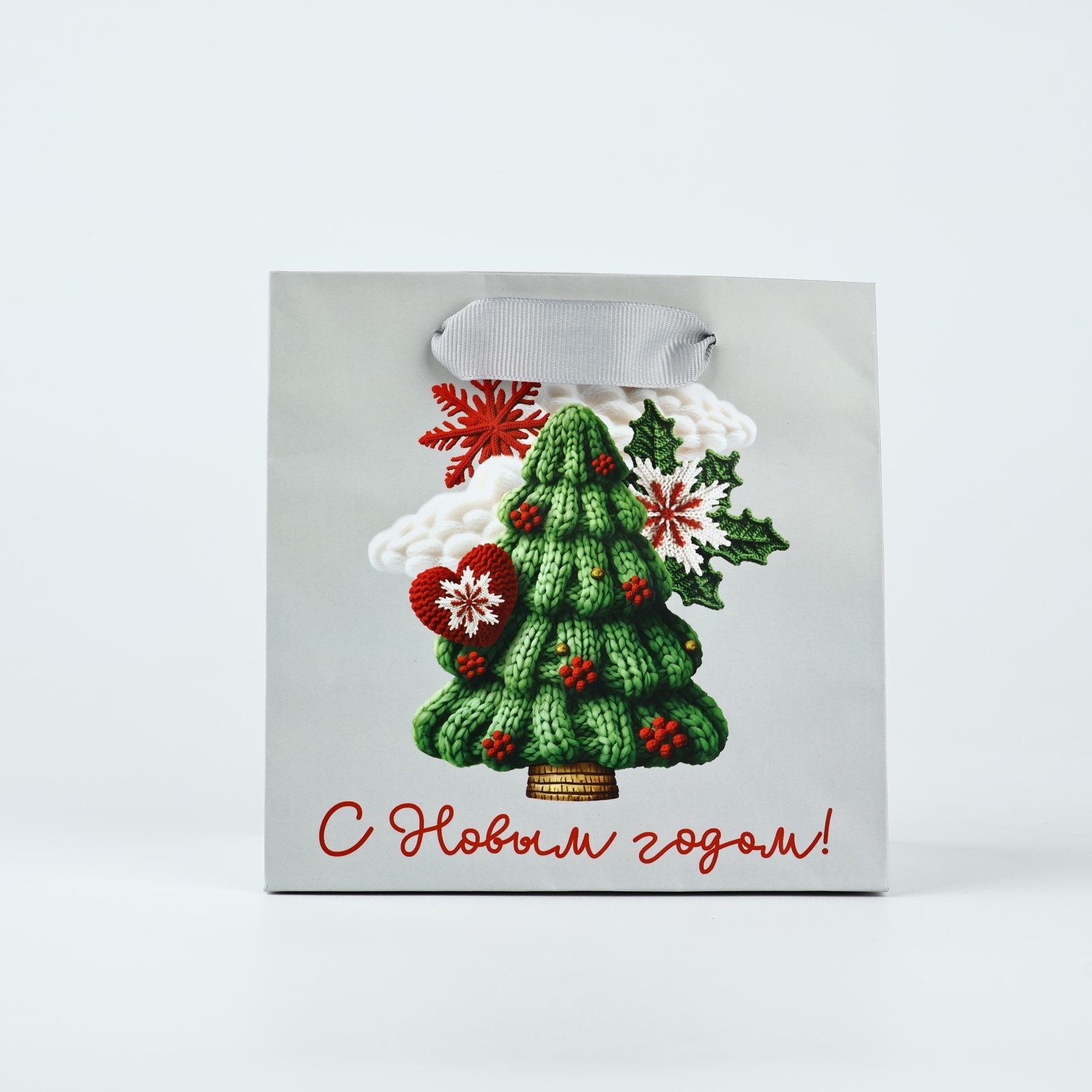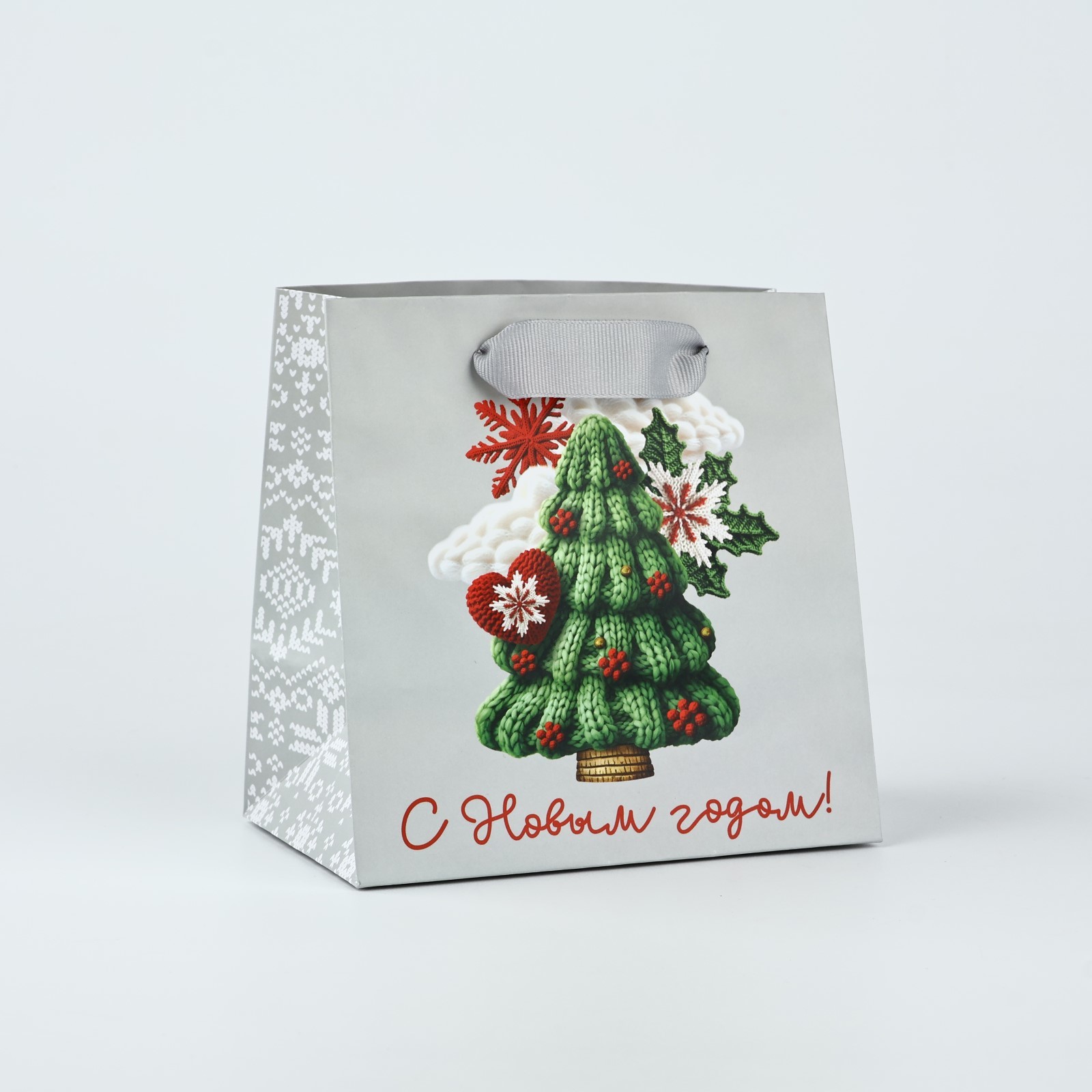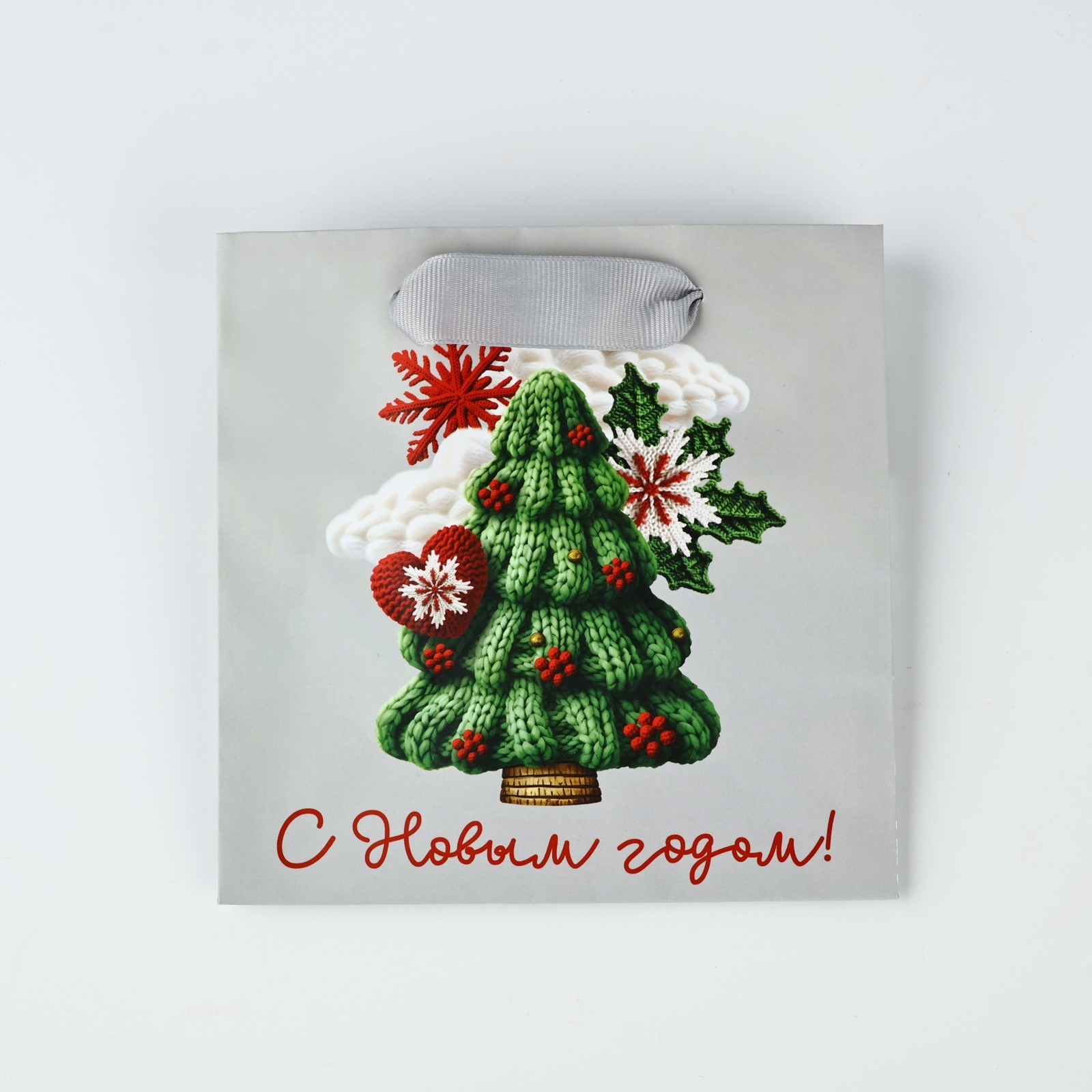 Пакет подарочный новогодний ламинированный квадратный «с новым годом», ёлка, 14 х 14 х 9 см.