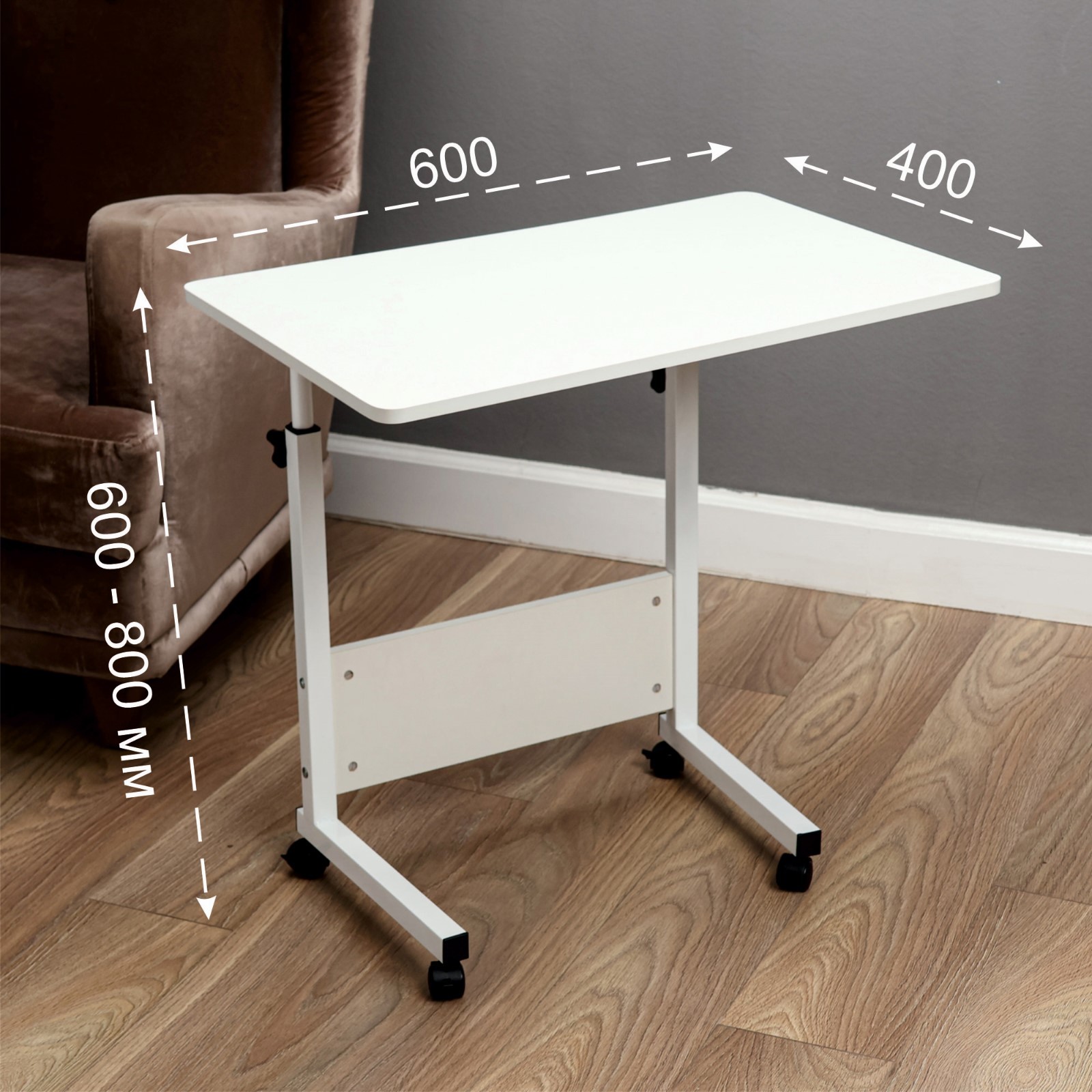 Столик прикроватный «клик мебель», на колёсиках, 600 400 600(800) мм, цвет белый. Столик прикроватный выполнен в современном дизайне и имеет регулируемый каркас из металла. Множество регулировок стола по высоте позволяет работать в положении сидя и лежа. Стол оснащен функциональными колесиками с блокировкой для удобного передвижения. Удобное использование столика над кроватью - нижняя часть основания заходит под кровать, а верхняя часть со столешницей располагается над поверхностью кровати. Закругленные углы делают стол безопасным и удобным. Дополнительно: Высота: от 600 до 800 мм.Ширина: 600 мм.Глубина: 400 мм.Толщина столешницы: 15 мм.Цвет:Белый|Форма:Прямоугольная|Ширина, мм:600|Глубина, мм:400|Высота, мм:600|На колёсиках:Да|Оттенок:Белый|Материал:ЛДСП|Материал:Металл|Поставляется в разобранном виде:Да|Страна:Китай  развернуть описание ▼