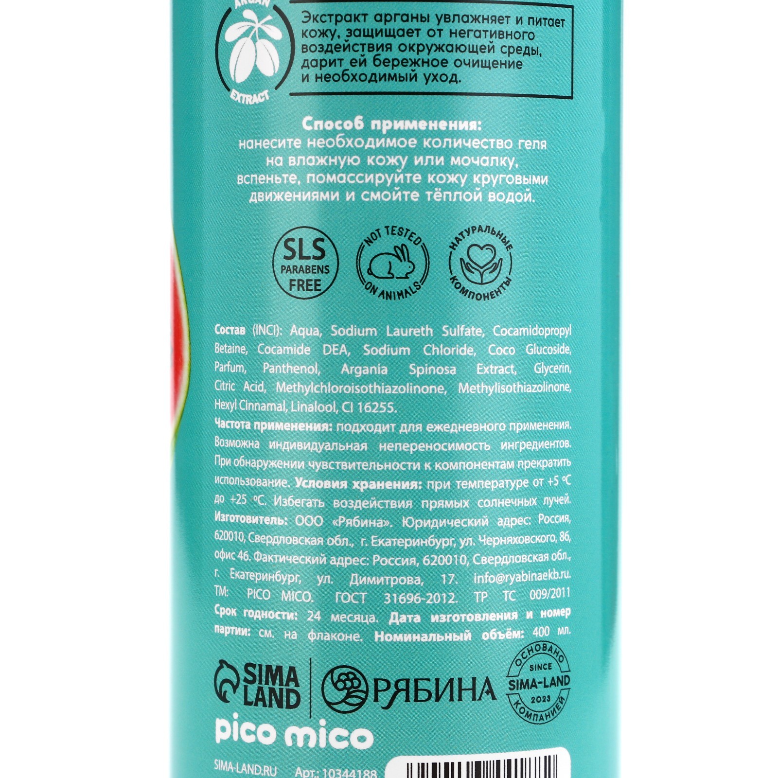 Гель для душа женский ice watermelon, 400 мл, аромат арбуза, pico mico. Состав: Aqua, Sodium Laureth Sulfate, Cocamidopropyl Betaine, Сocamide DEA, Sodium Chloride, Coco Glucoside, Parfum, Panthenol, Argania Spinosa Extract, Glycerin, Citric Acid, Methylchloroisothiazolinone, Methylisothiazolinone, Hexyl Cinnamal, Linalool, CI 16255. Набор:Нет|Для кого:Унисекс|Объём, мл:400|Аромат:Арбуз|Темпер. ограничение НЕ НИЖЕ :+5|Темпер. ограничение НЕ ВЫШЕ :+25|Возраст:Для взрослых|Назначение:Очищение, детокс|Форма выпуска:Флакон без дозатора|Страна:Россия  развернуть описание ▼