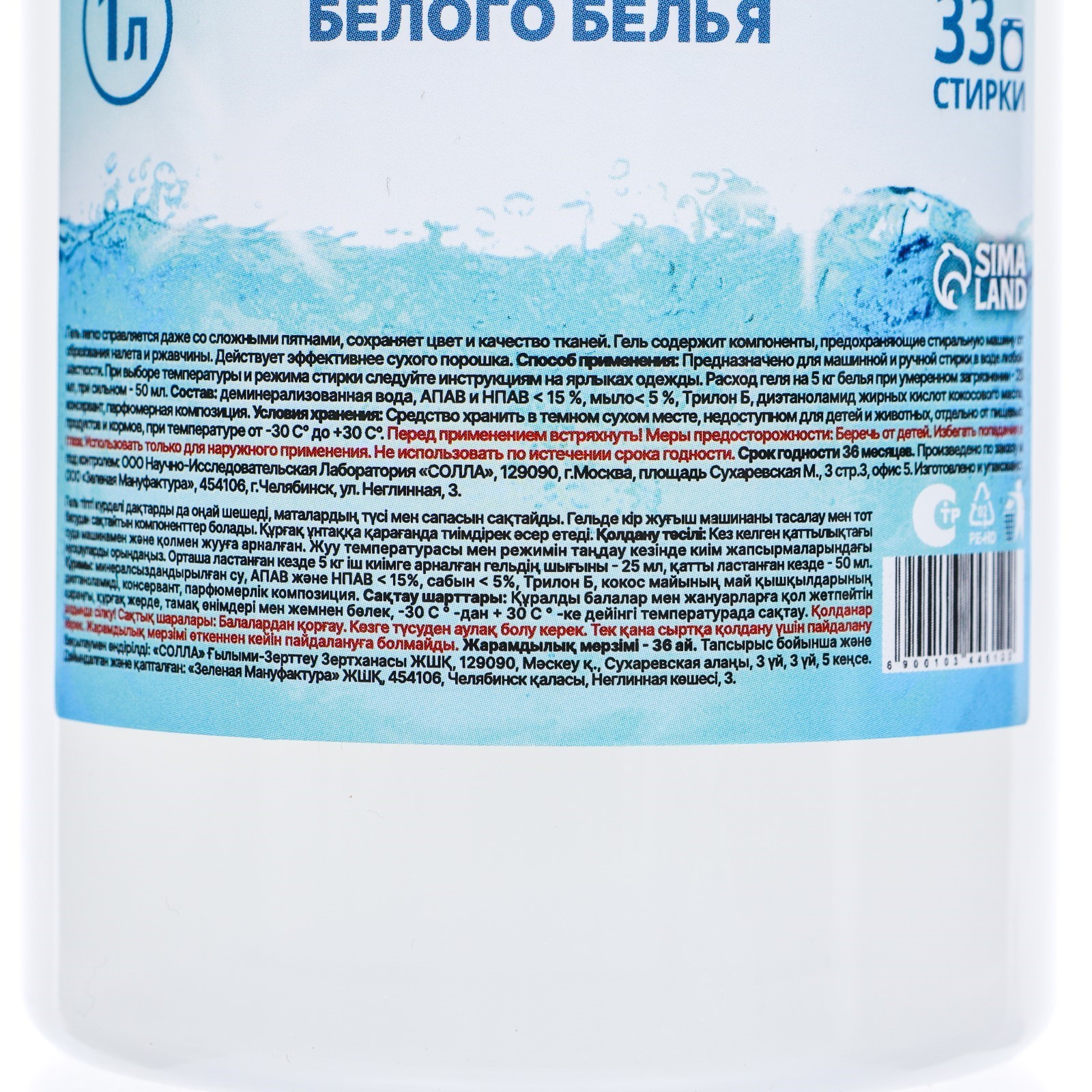 Гель для стирки "мой выбор" для белого белья, концентрат, 1 л