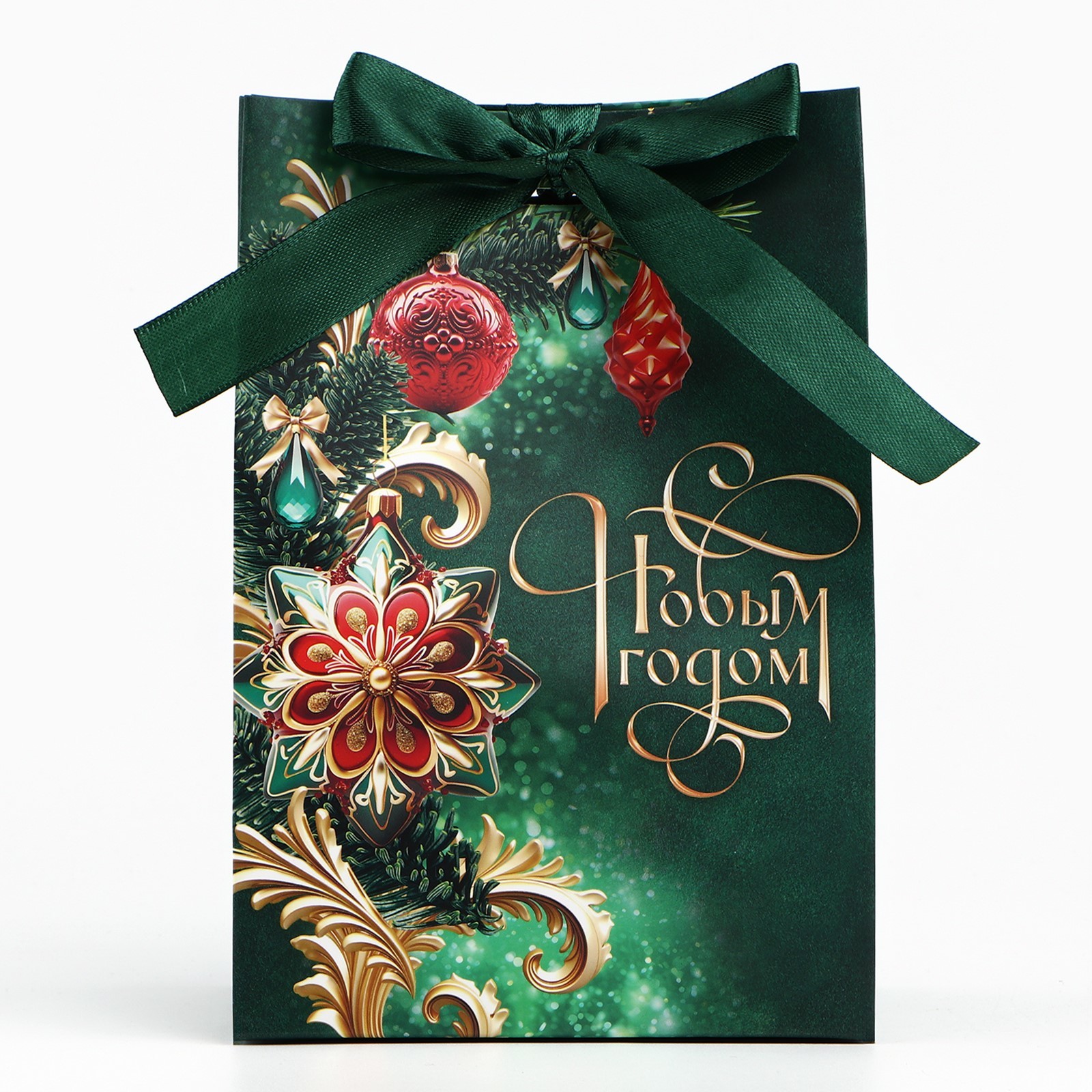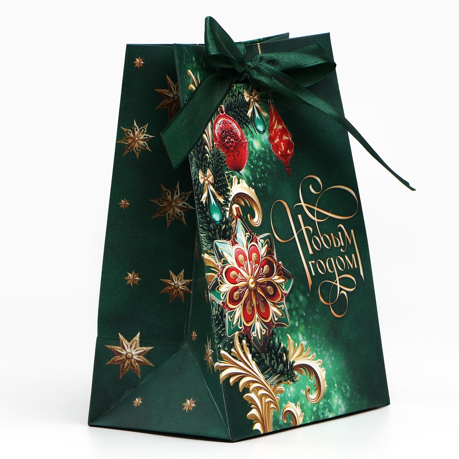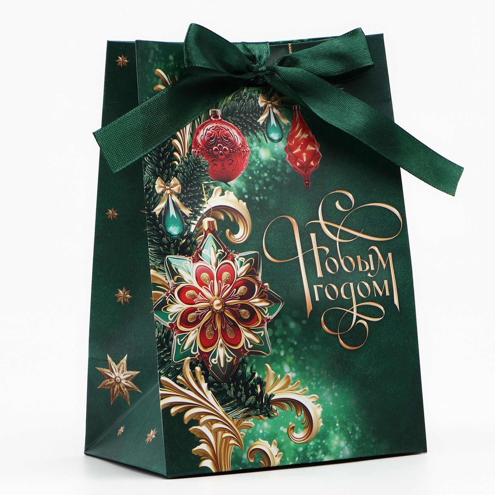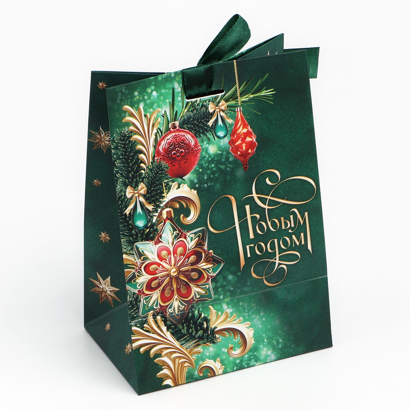 Цвет:Зелёный|Для кого:Унисекс|Плотность, г/м :210|Ширина, см:9|Тематика:Новогодняя|Тематика праздника:Новый год|Материал:Бумага|Отделка пакета:Текстиль|Расширение:Боковая складка|Вид ручки:Без ручки|Липкий край:Нет|Страна:Китай