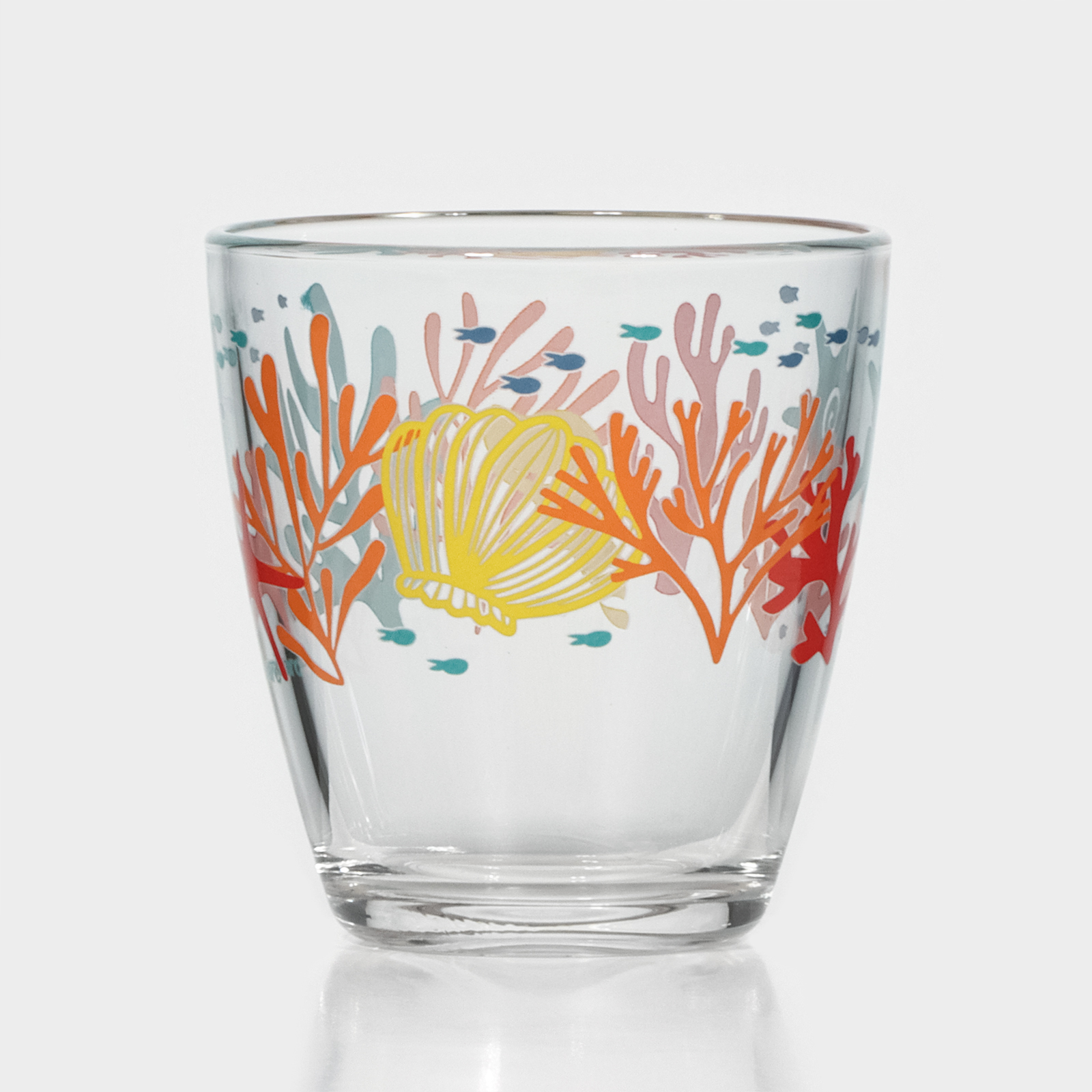Стакан низкий стеклянный «кораллы», 250 мл. Посуда из стекла отличается практичностью и эффектным внешним видом. Стеклянный стакан удачно дополнит интерьер и станет необходимым предметом на каждый день. Преимущества:практичность и долговечность;экологическая безопасность;не впитывает запахи;изящность и привлекательность. Эксплуатация:мыть губкой или специальной мягкой щеткой;осторожнее с посудомоечной машиной - желательно мыть стеклянные тарелки, бокалы при температуре чуть выше комнатной;после мытья поместить на решетчатую стойку, чтобы вода стекала вниз;полировать нужно мягким материалом без ворса, одним полотенцем взять предмет, другим полировать. Цвет: Прозрачный Диаметр, см: 8 В наборе, шт.: 1 Объём, мл: 250 Тематика: Морская тематика Материал: Стекло Температурное ограничение: Нет Можно мыть в посудомоечной машине: Да Можно использовать в СВЧ-печи: Нет Текстура: Гладкая Особенности: Без особенностей Для горячего: Нет  развернуть описание ▼