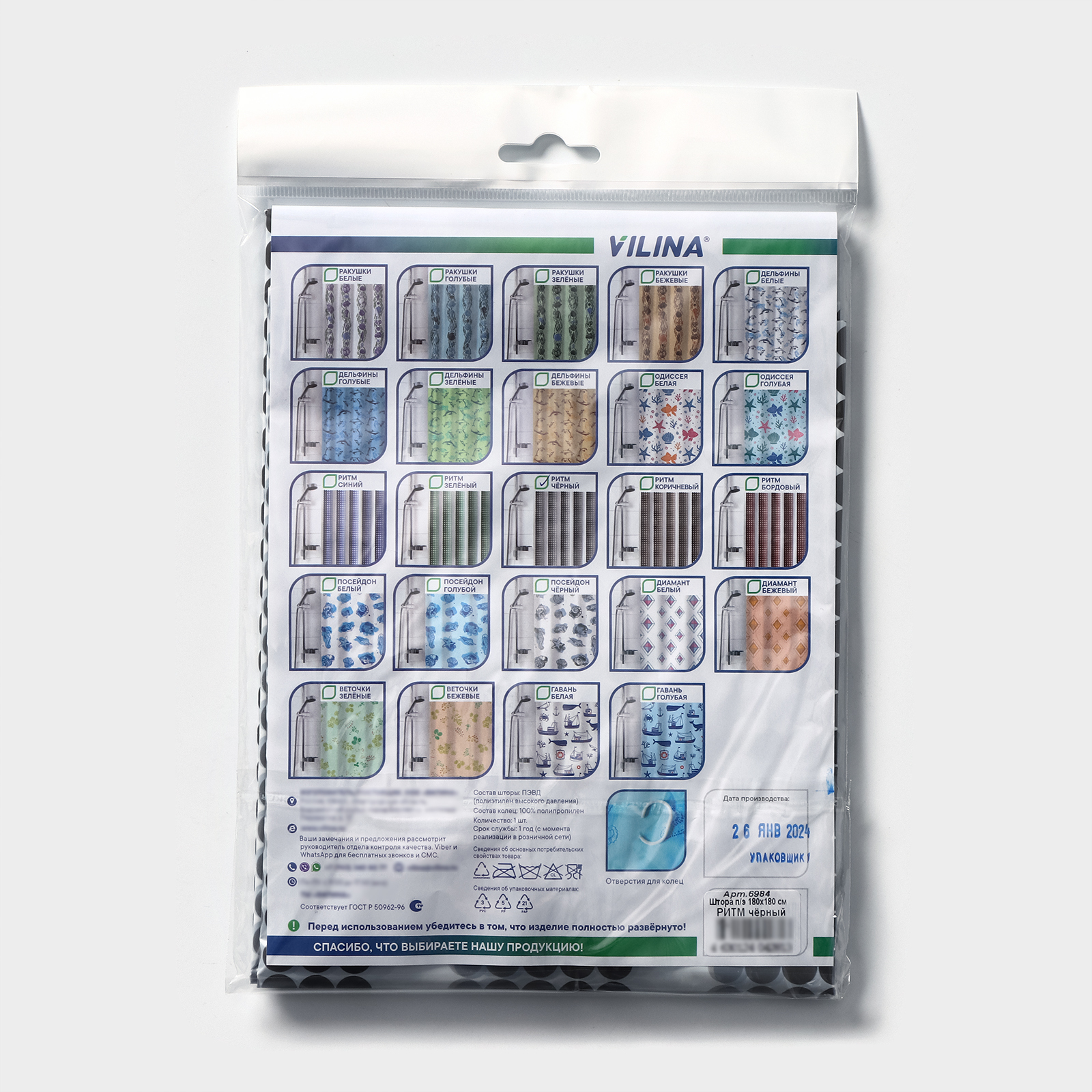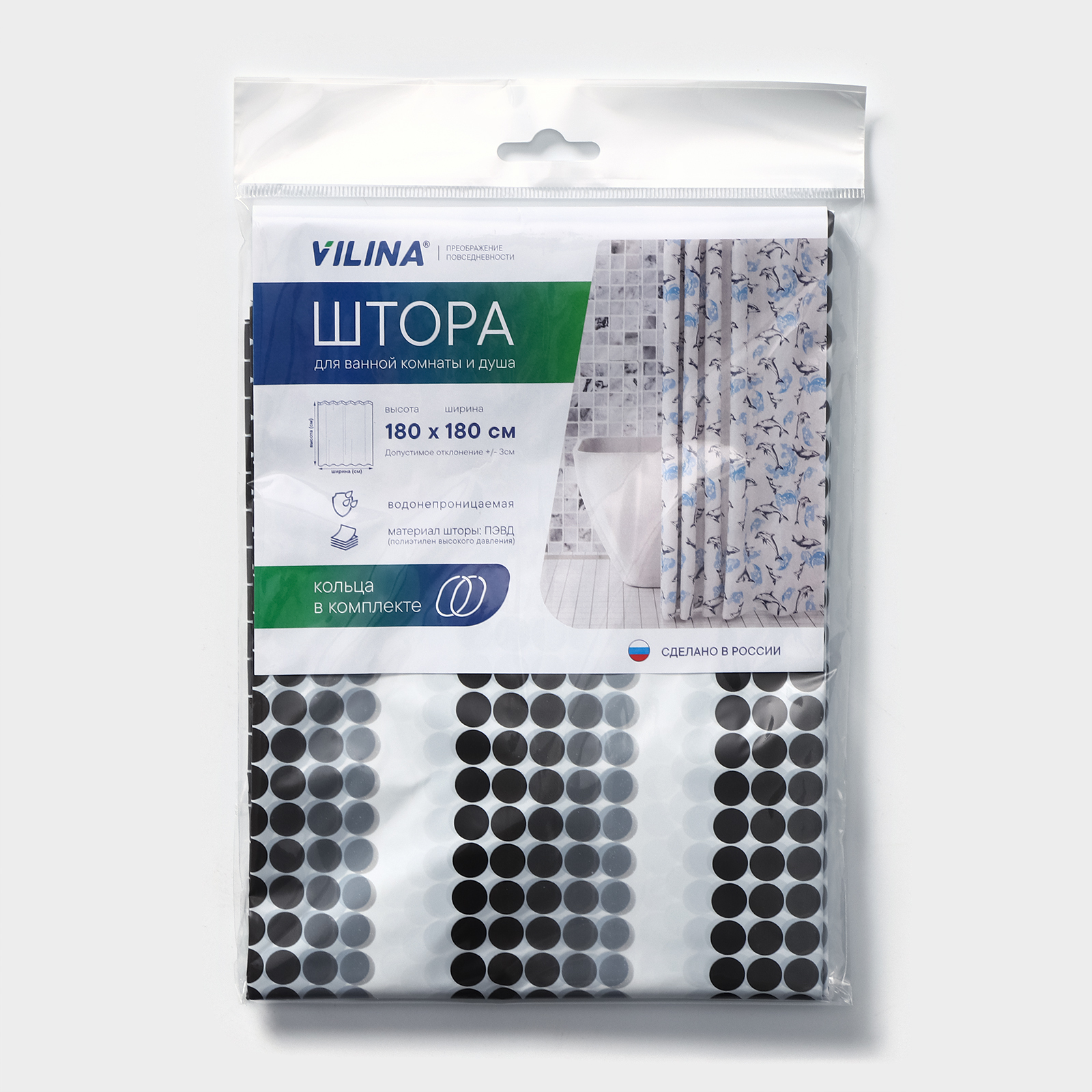 Штора для ванной комнаты «ритм», 180x180 см, цвет белый-черный