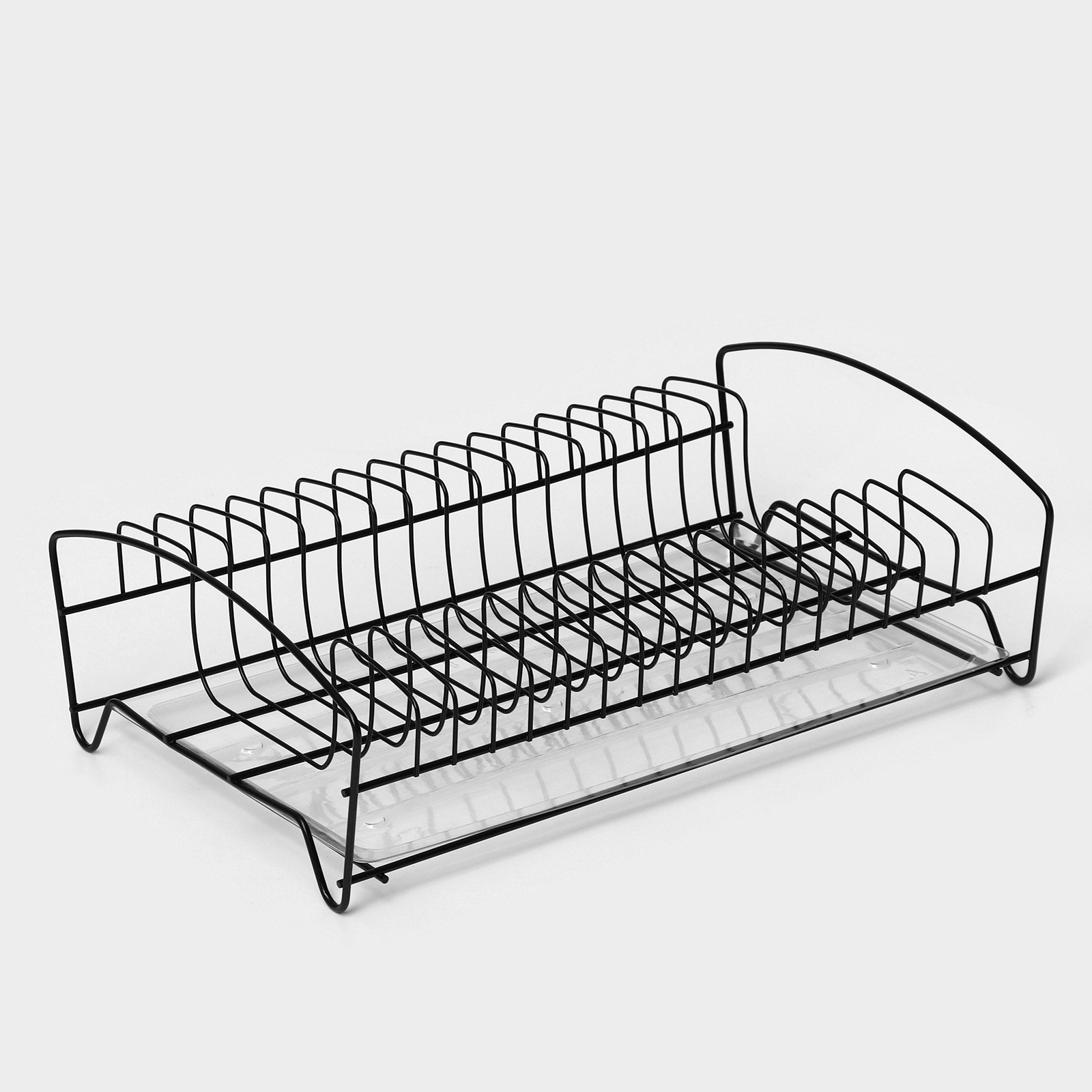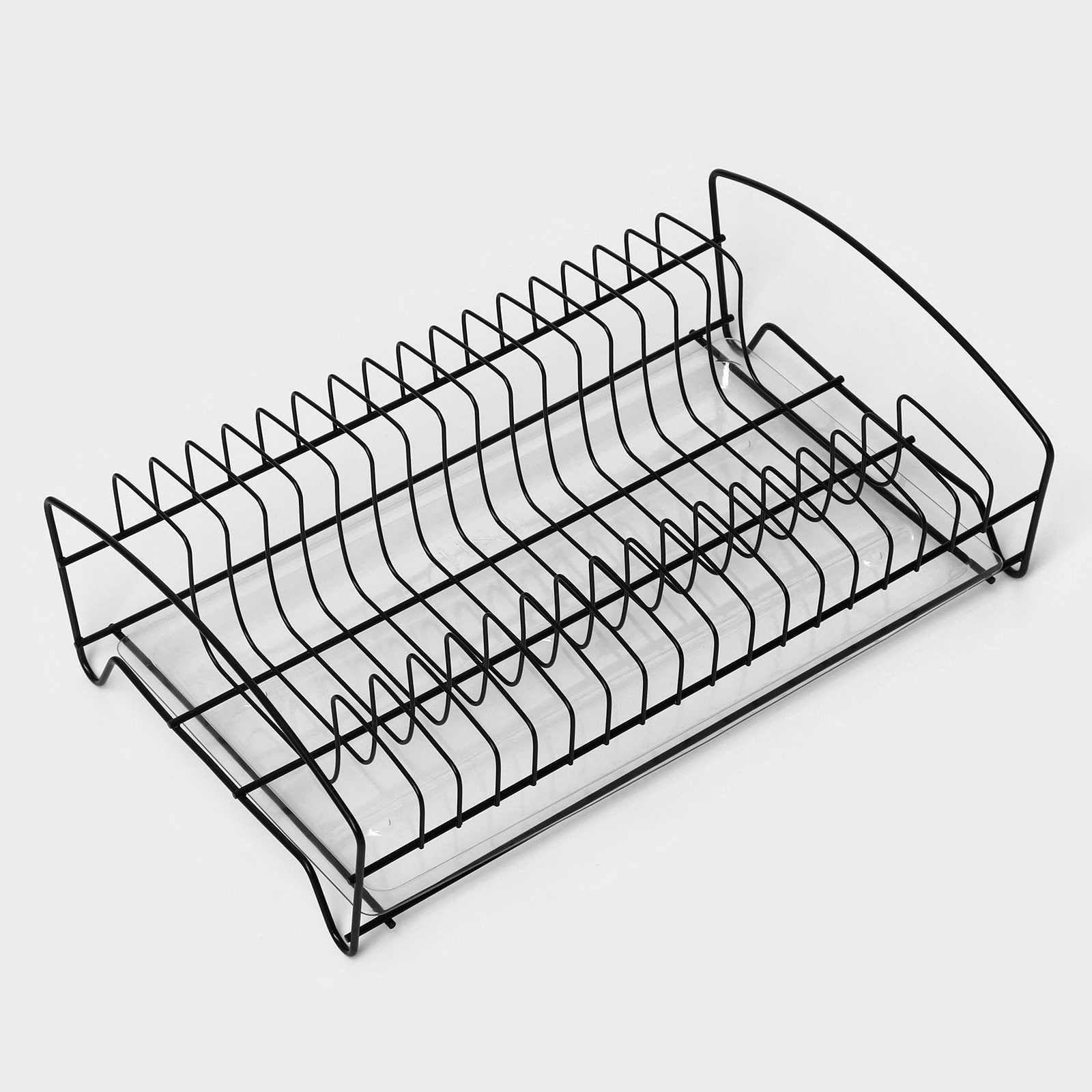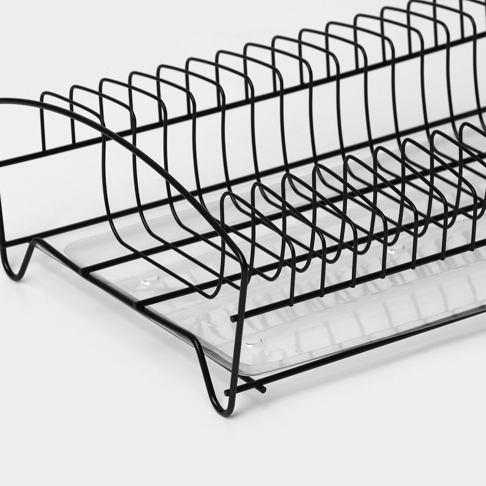 Сушилка для тарелок с поддоном, 38x24,5x12,4 см, цвет чёрный