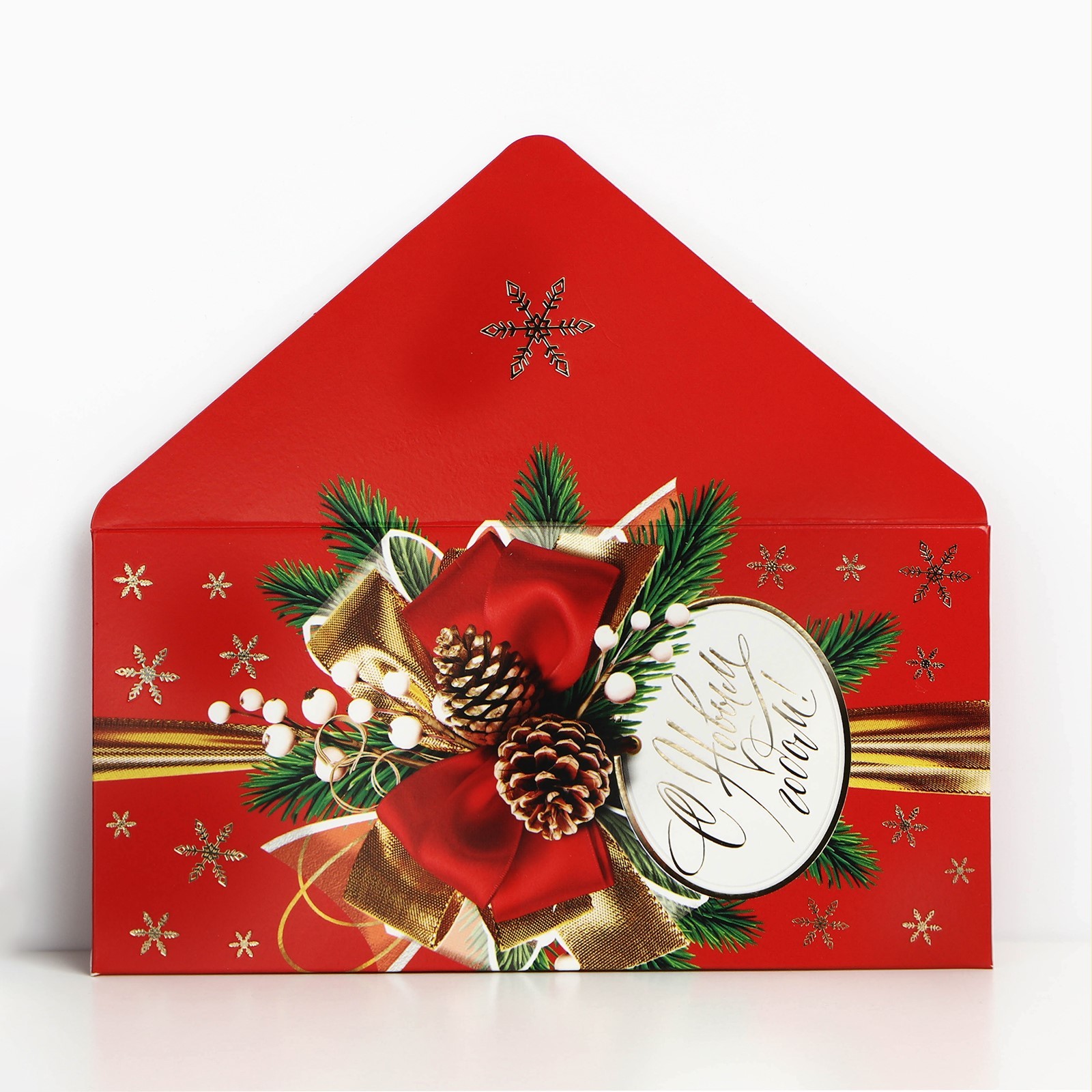 Конверт для денег «с новым годом!», тиснение, 16.5 х 8 см. Цвет:Красный|Для кого:Унисекс|Плотность, г/м :190|Размер, см:8 х 16.5|Отделка:Тиснение|Символ года:Нет|Тематика праздника:Новый год|Адресат:Без адресата|Материал:Картон|Страна:Россия  развернуть описание ▼