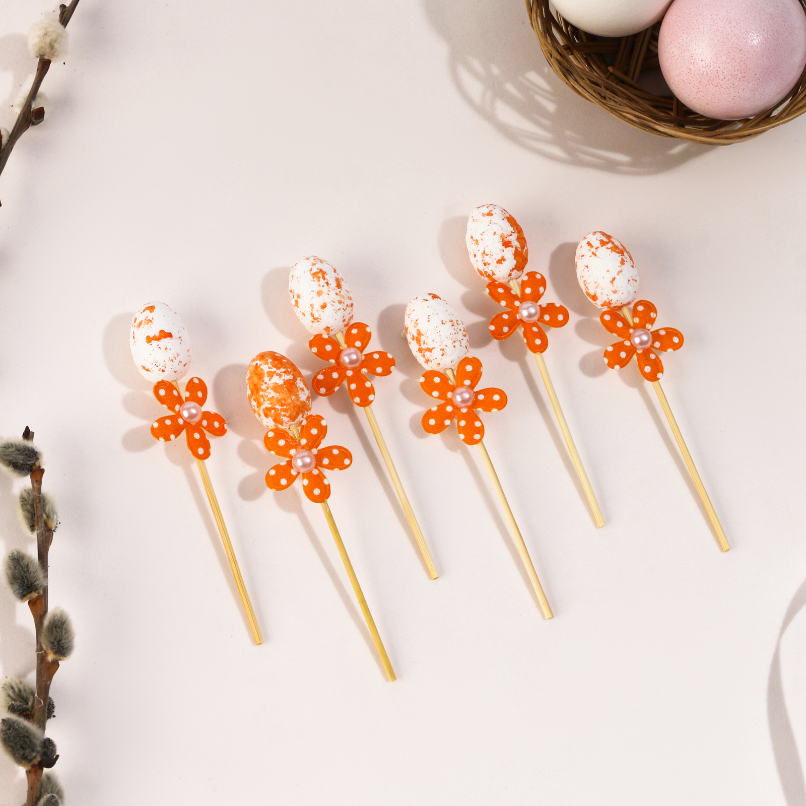 Шпажки яйцо цветочек оранжевый, набор 6 шт.