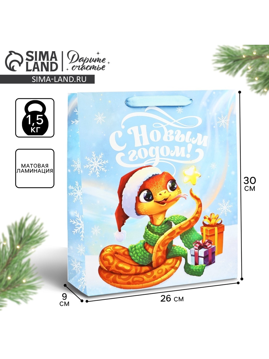 Пакет подарочный новогодний ламинированный «с новым годом», m 26 х 30 х 9 см. Цвет:Разноцветный|Для кого:Унисекс|Плотность, г/м :190|Тематика:Новогодняя|Тематика праздника:Новый год|Материал:Бумага|Отделка пакета:Без отделки|Вид ручки:Ручка-лента|Страна:Китай  развернуть описание ▼