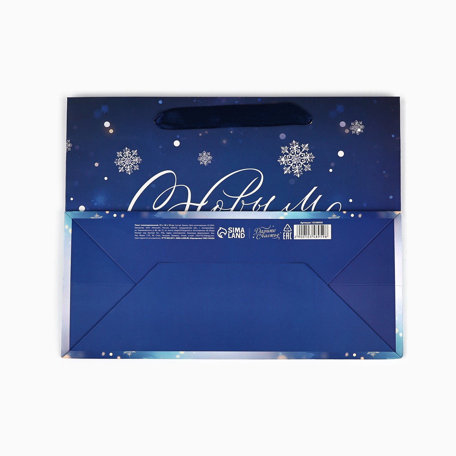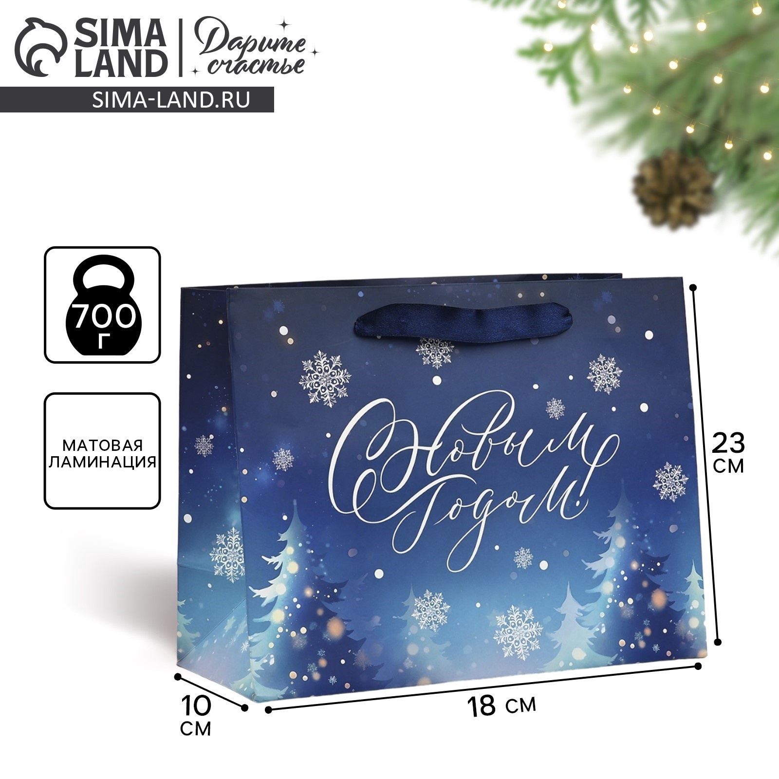 Пакет подарочный новогодний ламинированный «с новым годом», ms 18 х 23 х 10 см. Цвет:Синий|Для кого:Унисекс|Плотность, г/м :190|Тематика:Новогодняя|Символ года:Нет|Тематика праздника:Новый год|Отделка пакета:Без отделки|Вид ручки:Ручка-лента|Страна:Китай  развернуть описание ▼