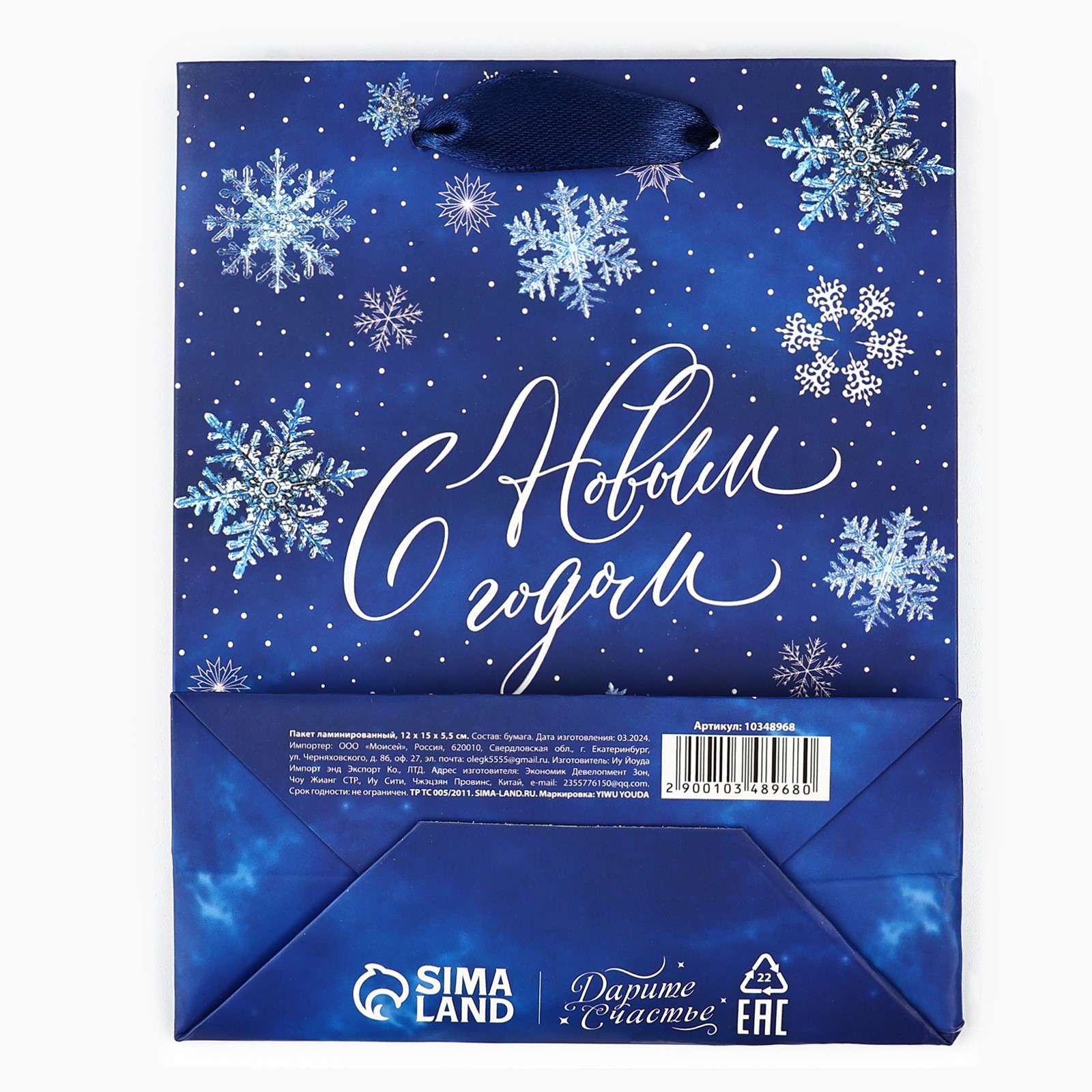 Пакет подарочный новогодний ламинированный «с новым годом», s 12 х 15 х 5.5 см. Цвет:Синий|Для кого:Унисекс|Плотность, г/м :157|Тематика:Новогодняя|Символ года:Нет|Тематика праздника:Новый год|Отделка пакета:Без отделки|Вид ручки:Ручка-лента|Страна:Китай  развернуть описание ▼