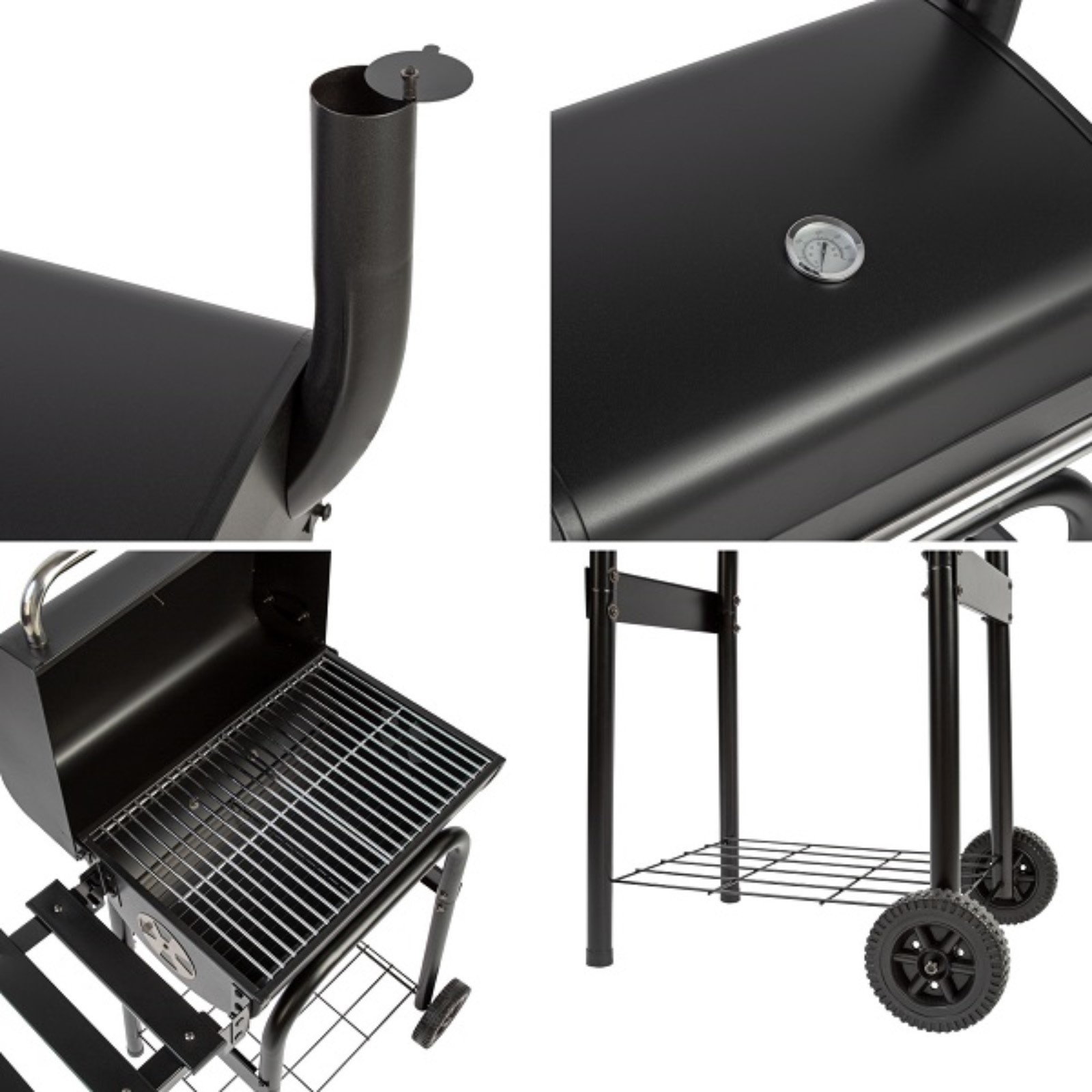 Гриль 11060. Толщина металла, мм: 0.7 Ширина жаровни, см: 21 Высота от пола до дна жаровни, см: 51 Длина жаровни, см: 58 Высота жаровни, см: 79 Материал: Углеродистая сталь Размер жаровни, см: 29 х 21 Вид: Барбекю Вид: Гриль Особенности: С колёсами Особенности: С крышкой Особенности: С решёткой Особенности: С дровяником  развернуть описание ▼