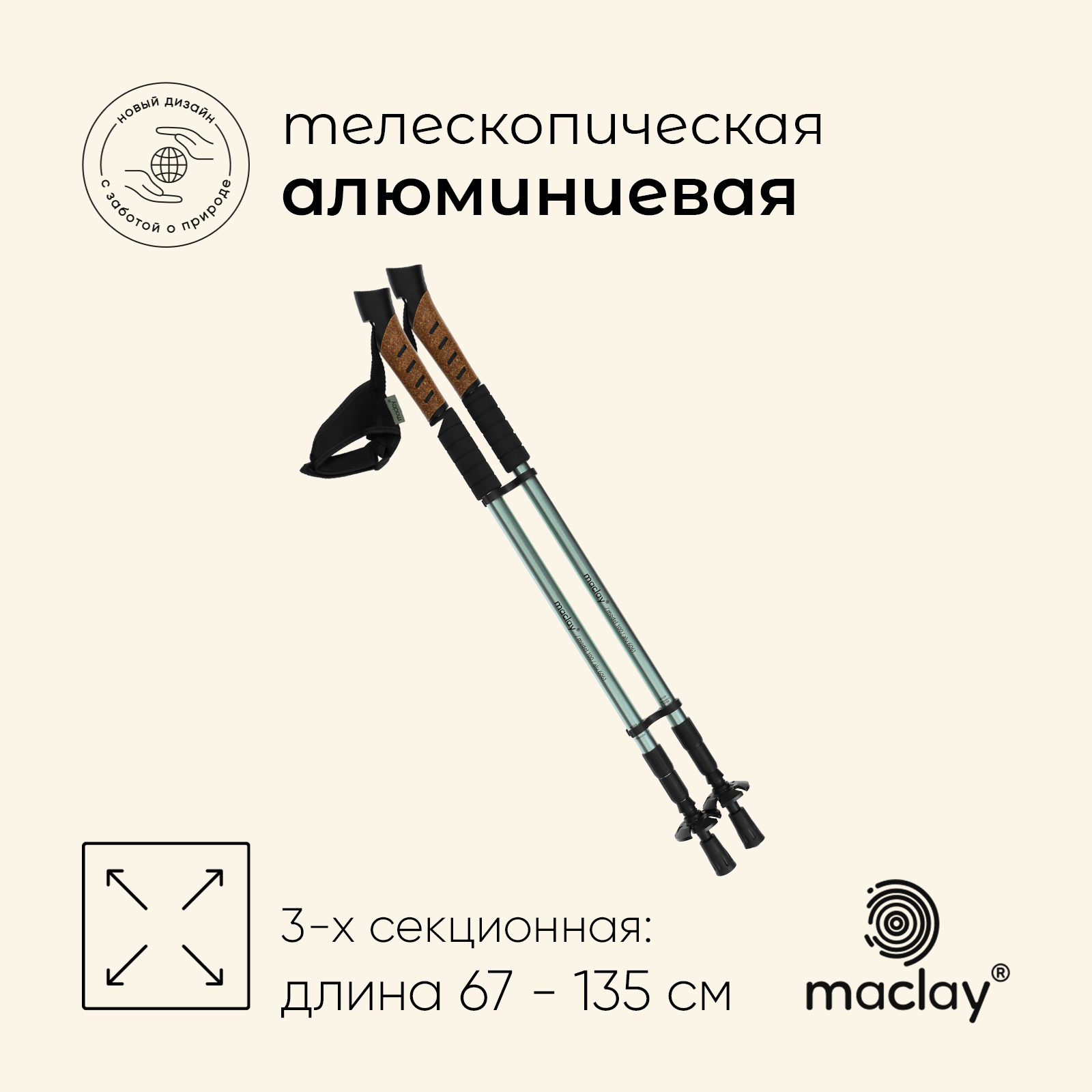 Палки для скандинавской ходьбы maclay alu 100, телескопические, 2 шт.. Длина, см: 67 - 135 В наборе, шт.: 2 Количество секций: 3 Диаметр трубки, мм: 14 Диаметр трубки, мм: 16 Диаметр трубки, мм: 18 Материал ручки: Пробка Конструкция палки: Телескопическая  развернуть описание ▼
