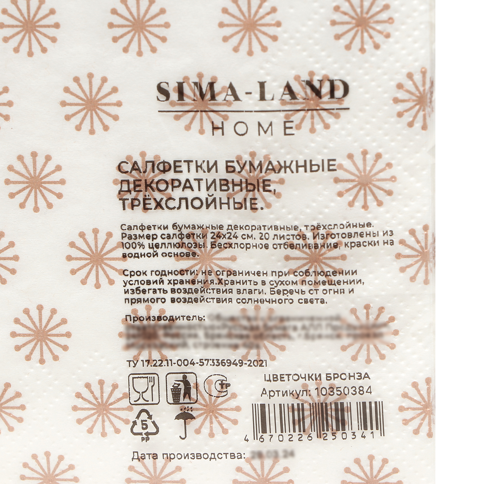 Салфетки бумажные Sima-land Home цветочки бронза, 24х24, 3 слоя, 20 шт
