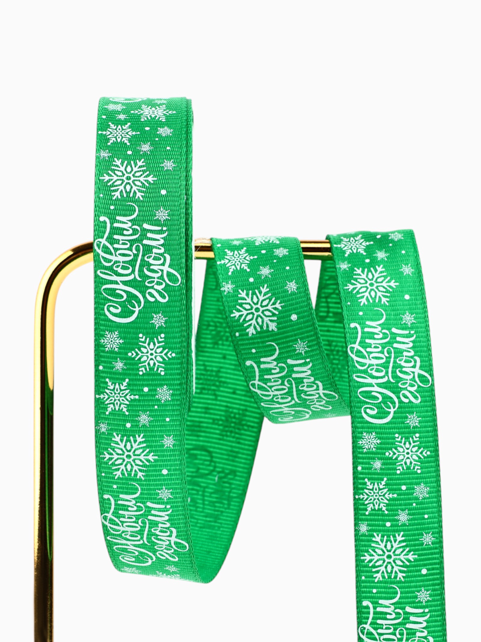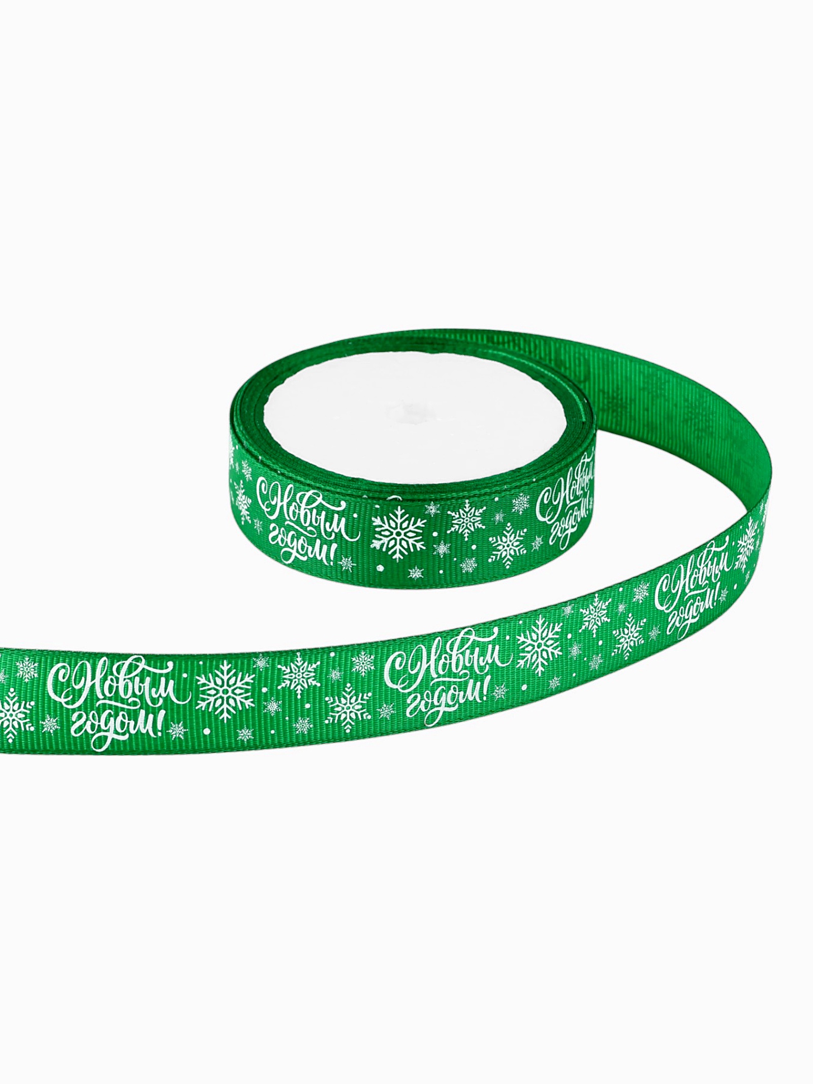 Лента декоративная репсовая «с новым годом!», зелёная, 2 см х 5 м. Набор:Нет|Цвет:Зелёный|Длина, м:5|Ширина, мм:20|Тематика:Новогодняя|Символ года:Нет|Тематика праздника:Новый год|Материал:Репс|Вид:Репсовая|Особенности:С рисунком|Страна:Китай  развернуть описание ▼