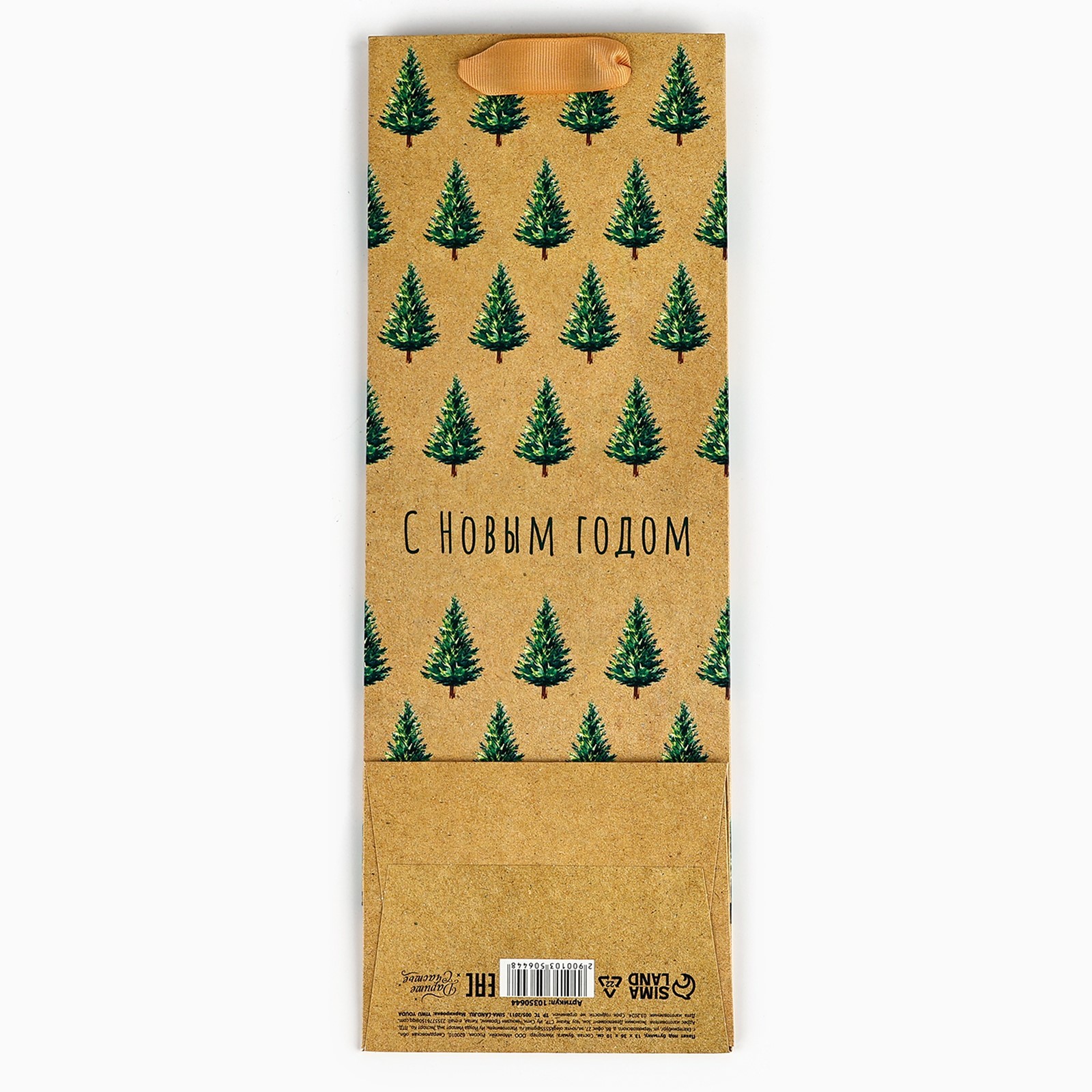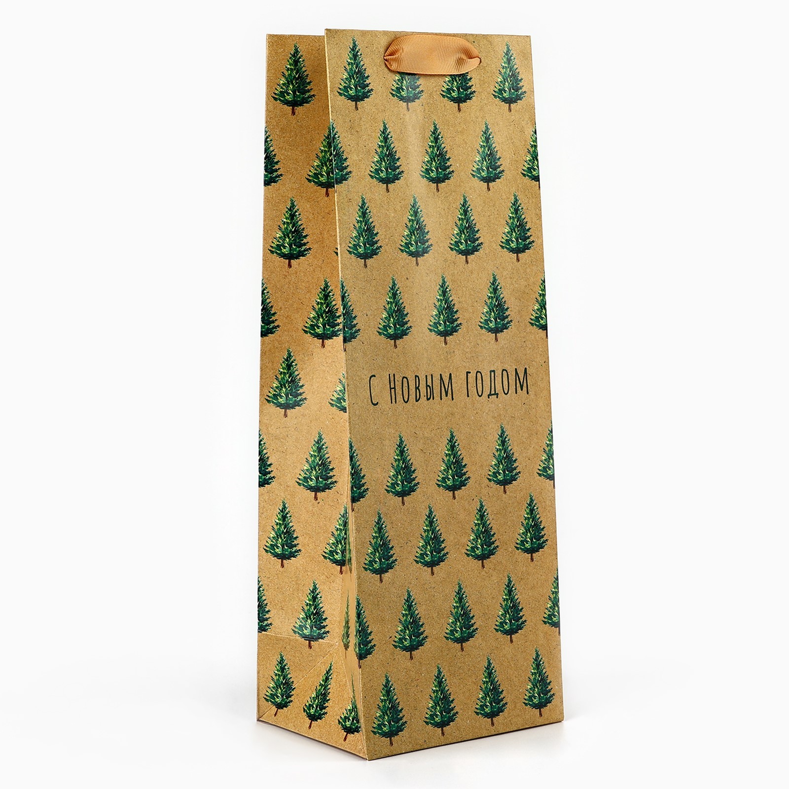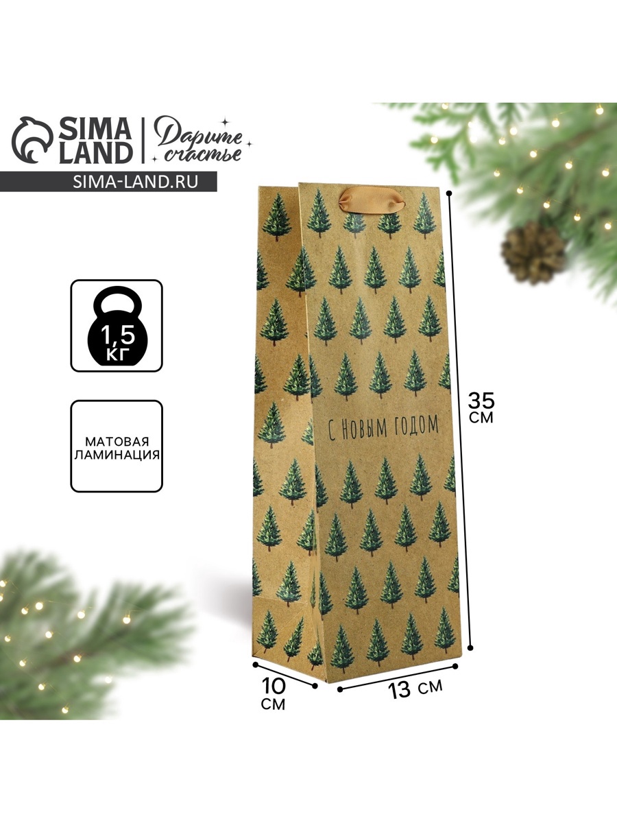 Пакет подарочный под бутылку «с новым годом», 13 х 35 х 10 см