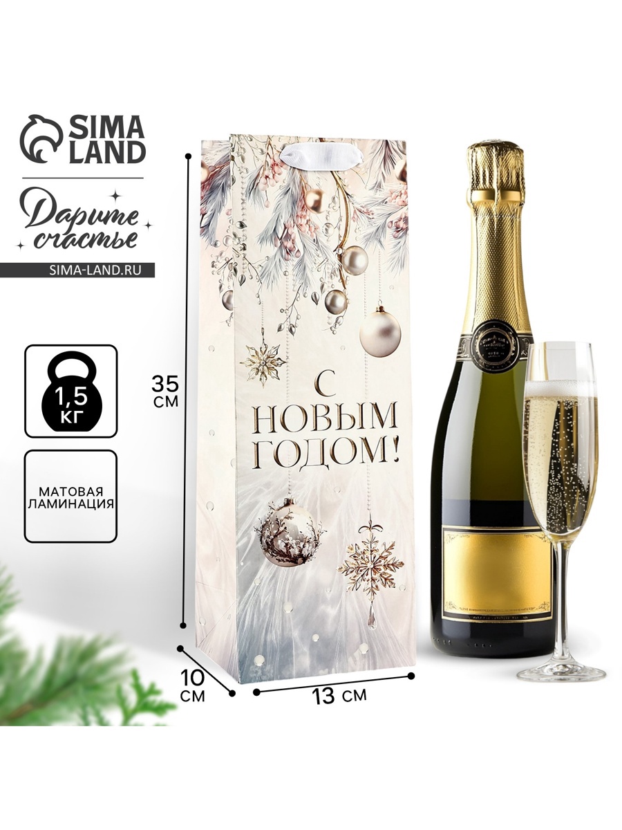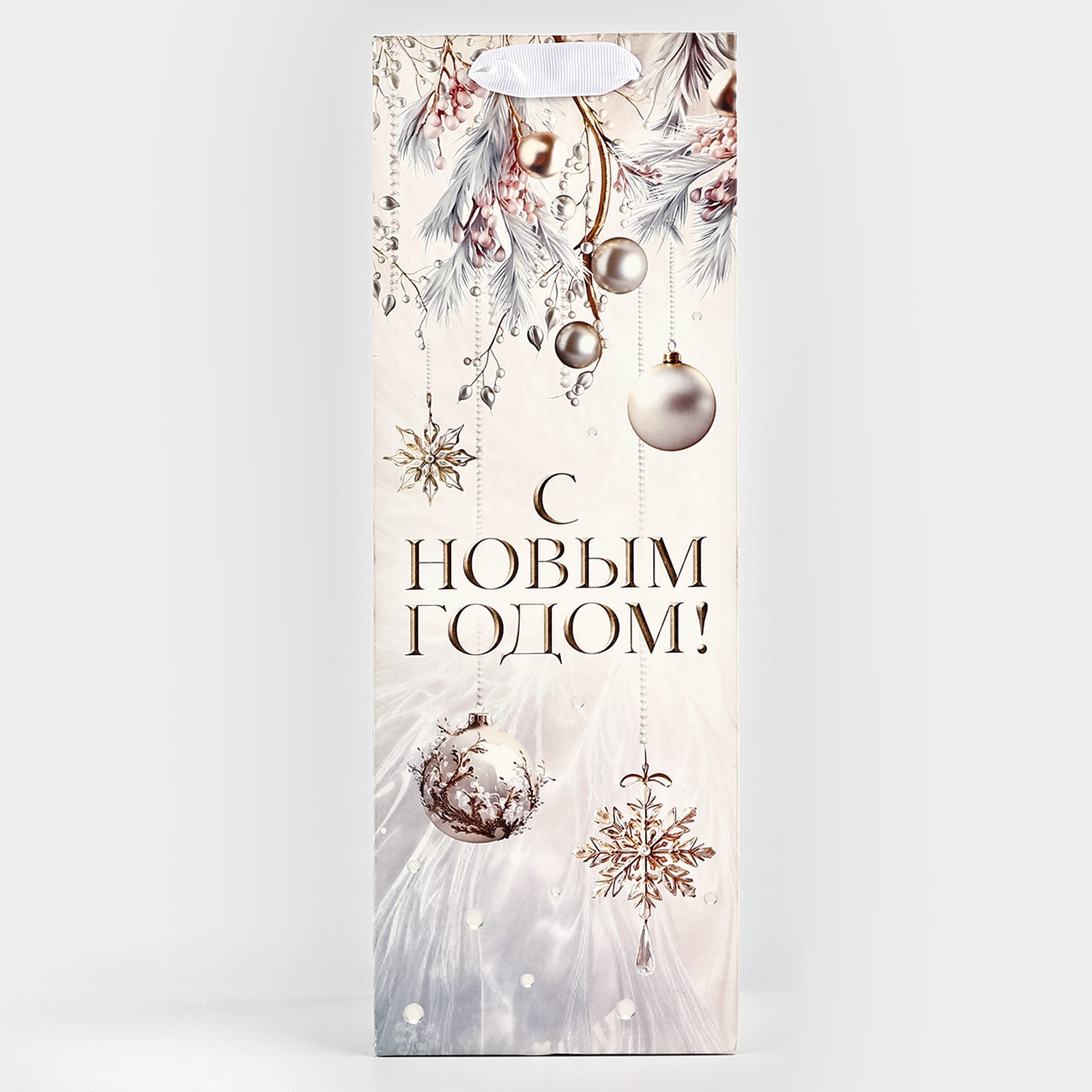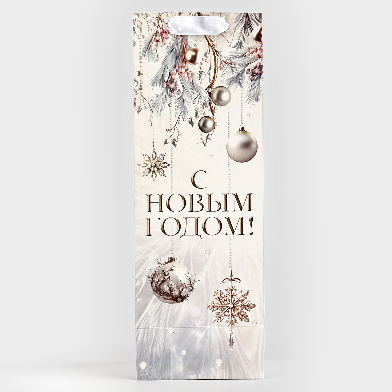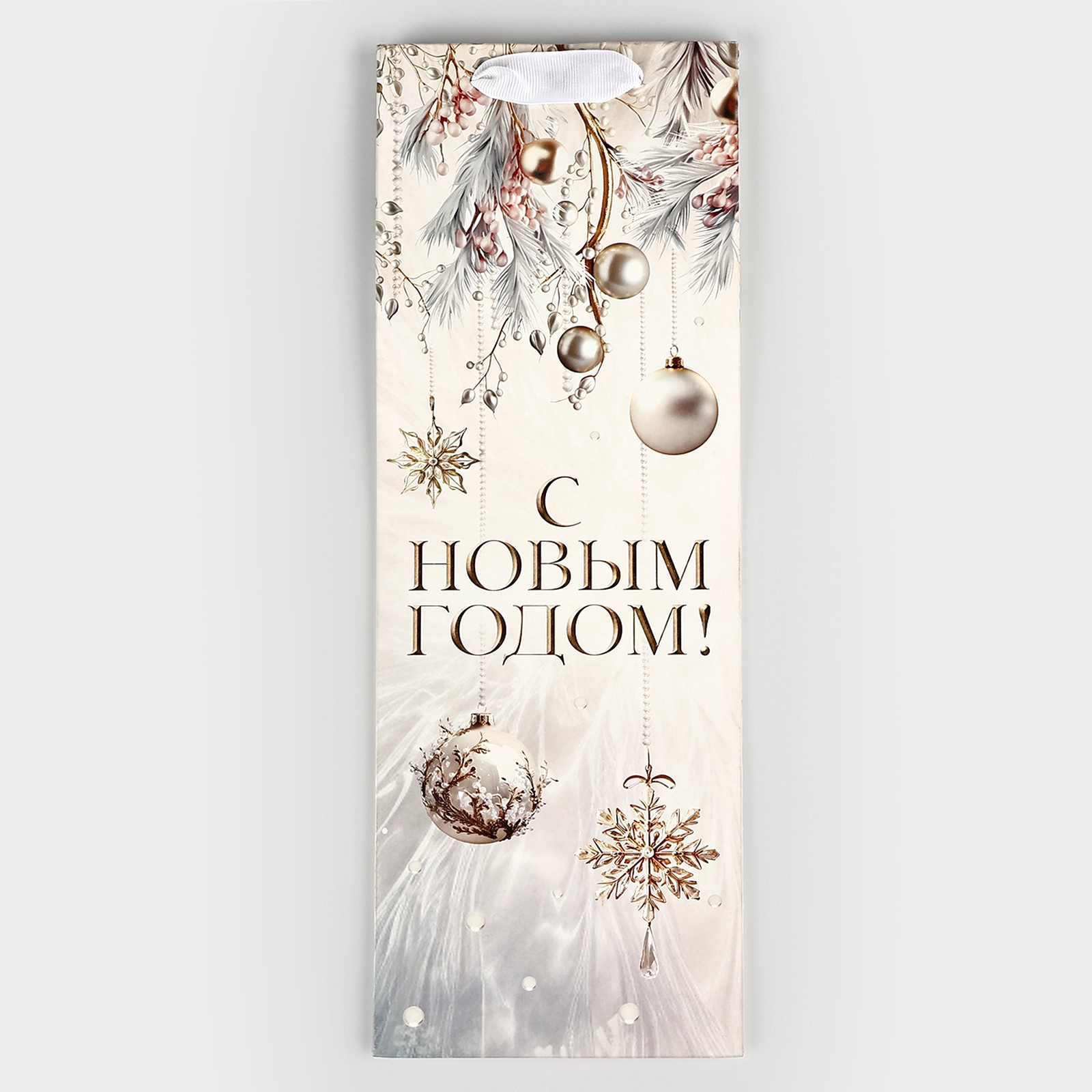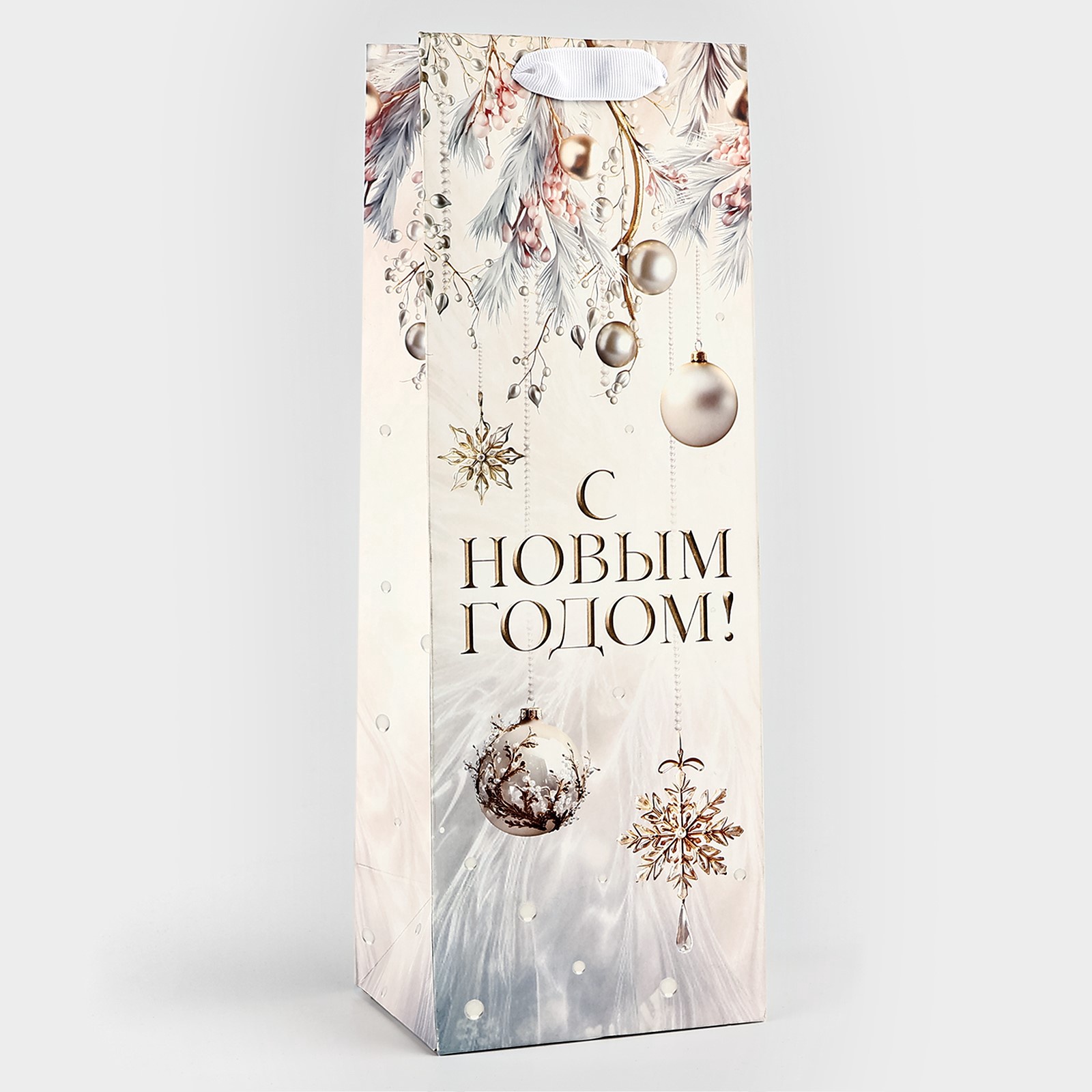 Пакет подарочный под бутылку «с новым годом», 13 х 35 х 10 см. Цвет:Белый|Для кого:Унисекс|Тематика:Новогодняя|Тематика праздника:Новый год|Материал:Бумага|Отделка пакета:Без отделки|Вид ручки:Ручка-лента|Страна:Китай  развернуть описание ▼