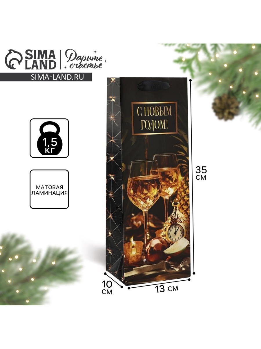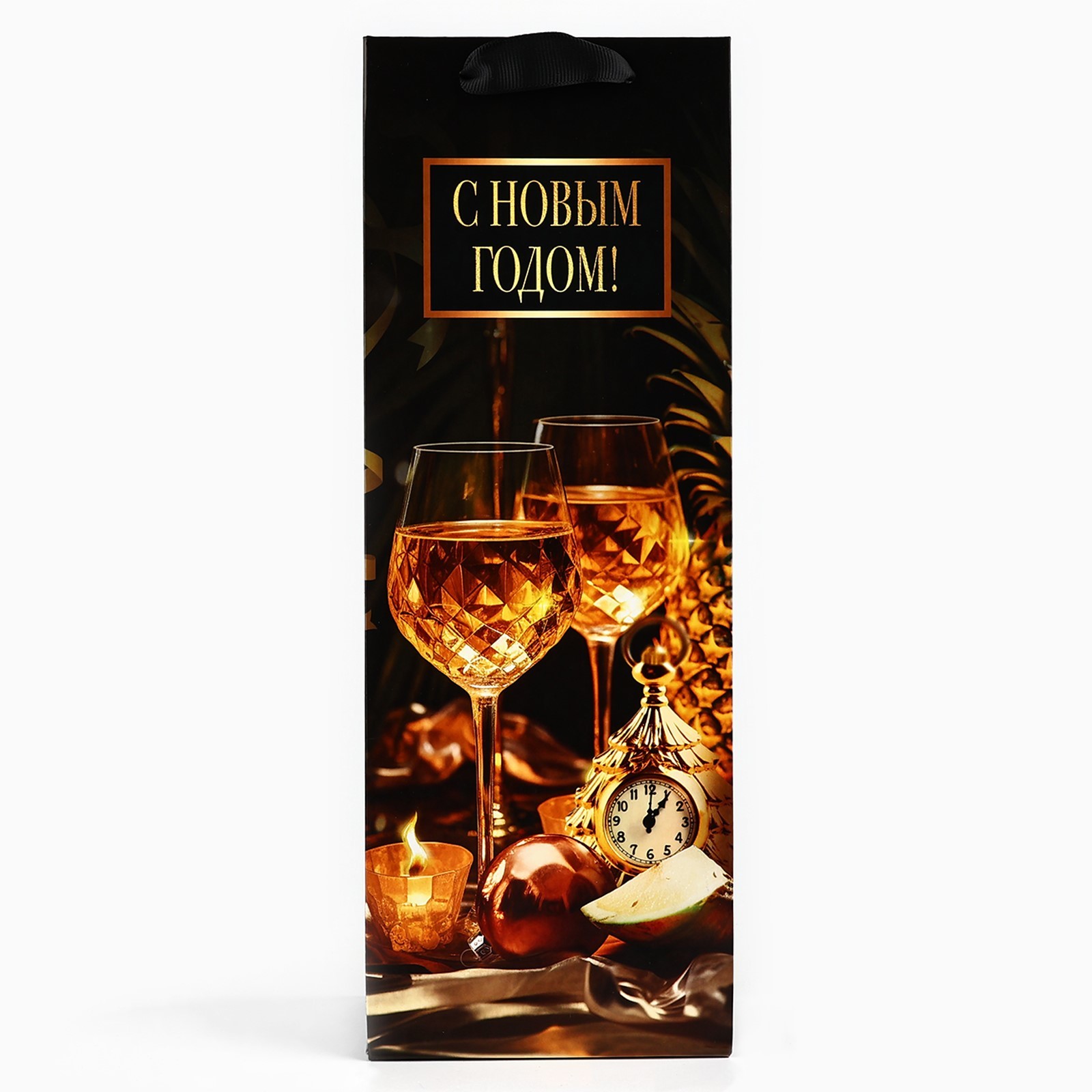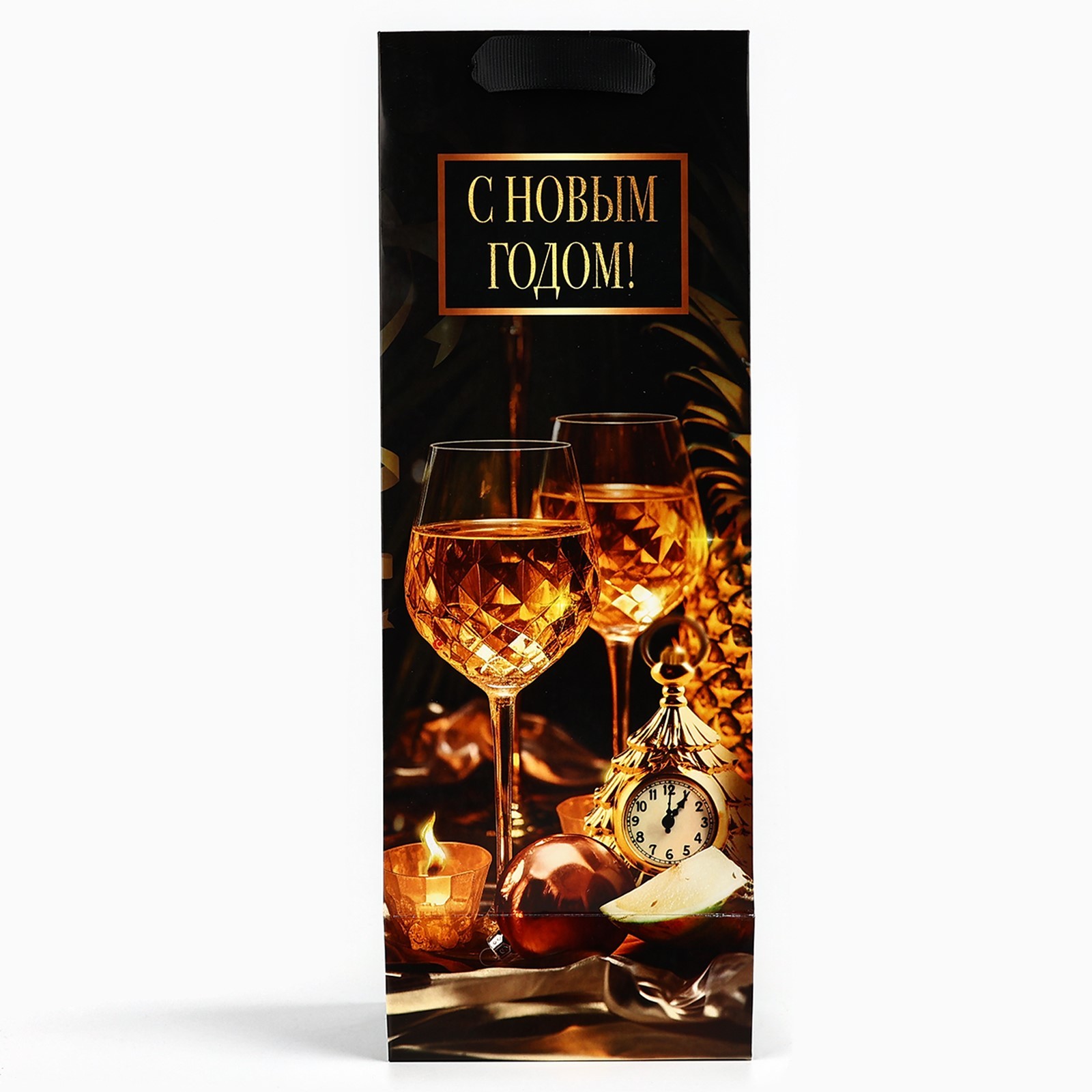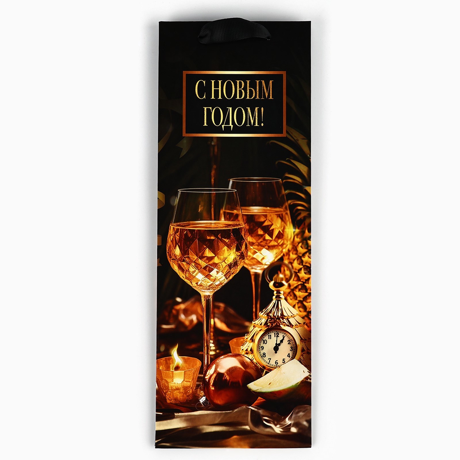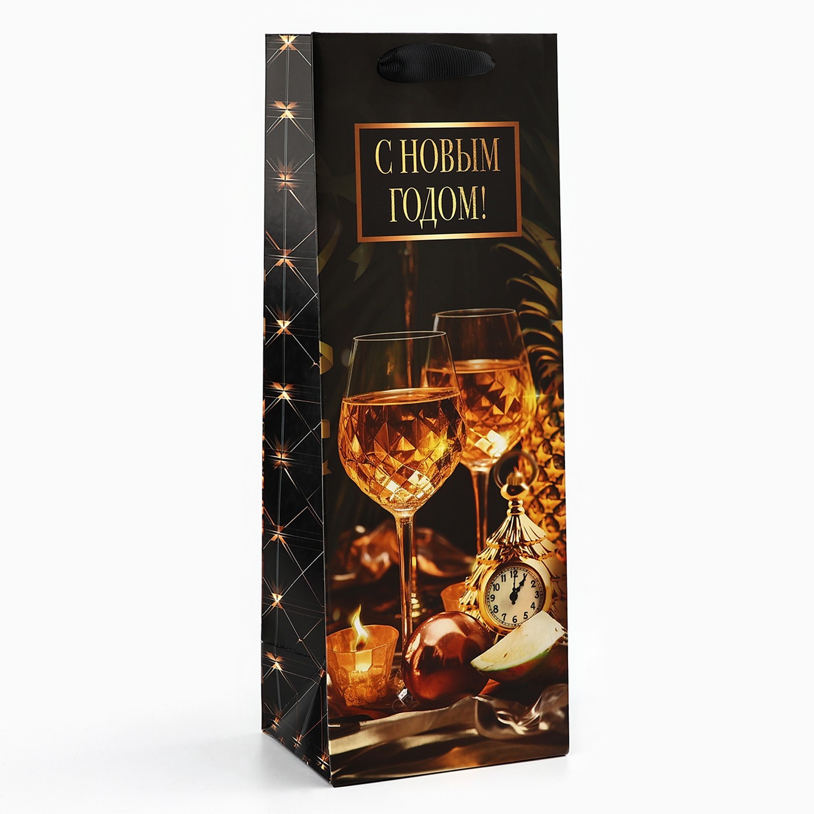 Пакет подарочный под бутылку «с новым годом», 13 х 35 х 10 см. Цвет:Чёрный|Для кого:Унисекс|Тематика:Новогодняя|Тематика праздника:Новый год|Материал:Бумага|Отделка пакета:Без отделки|Вид ручки:Ручка-лента|Страна:Китай  развернуть описание ▼