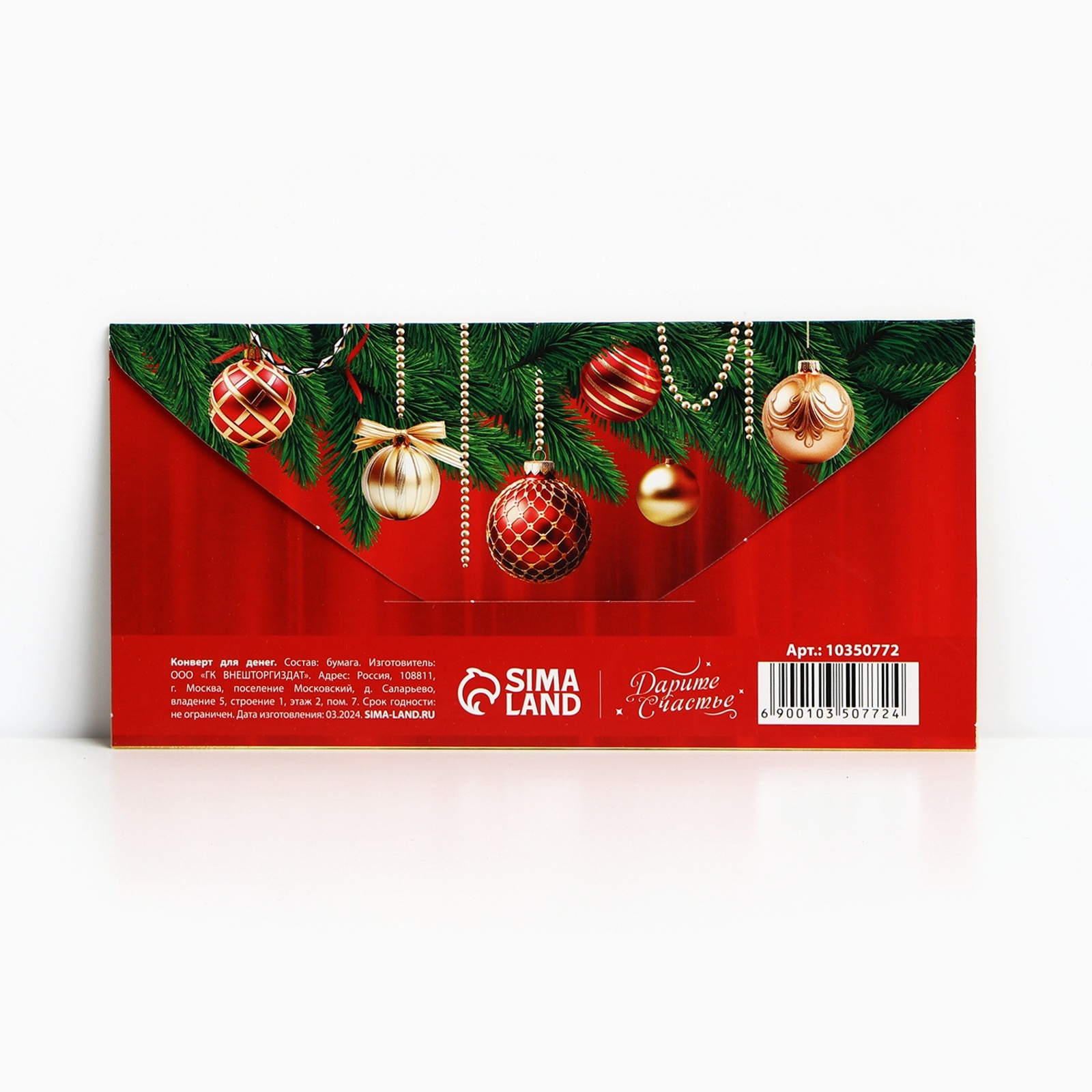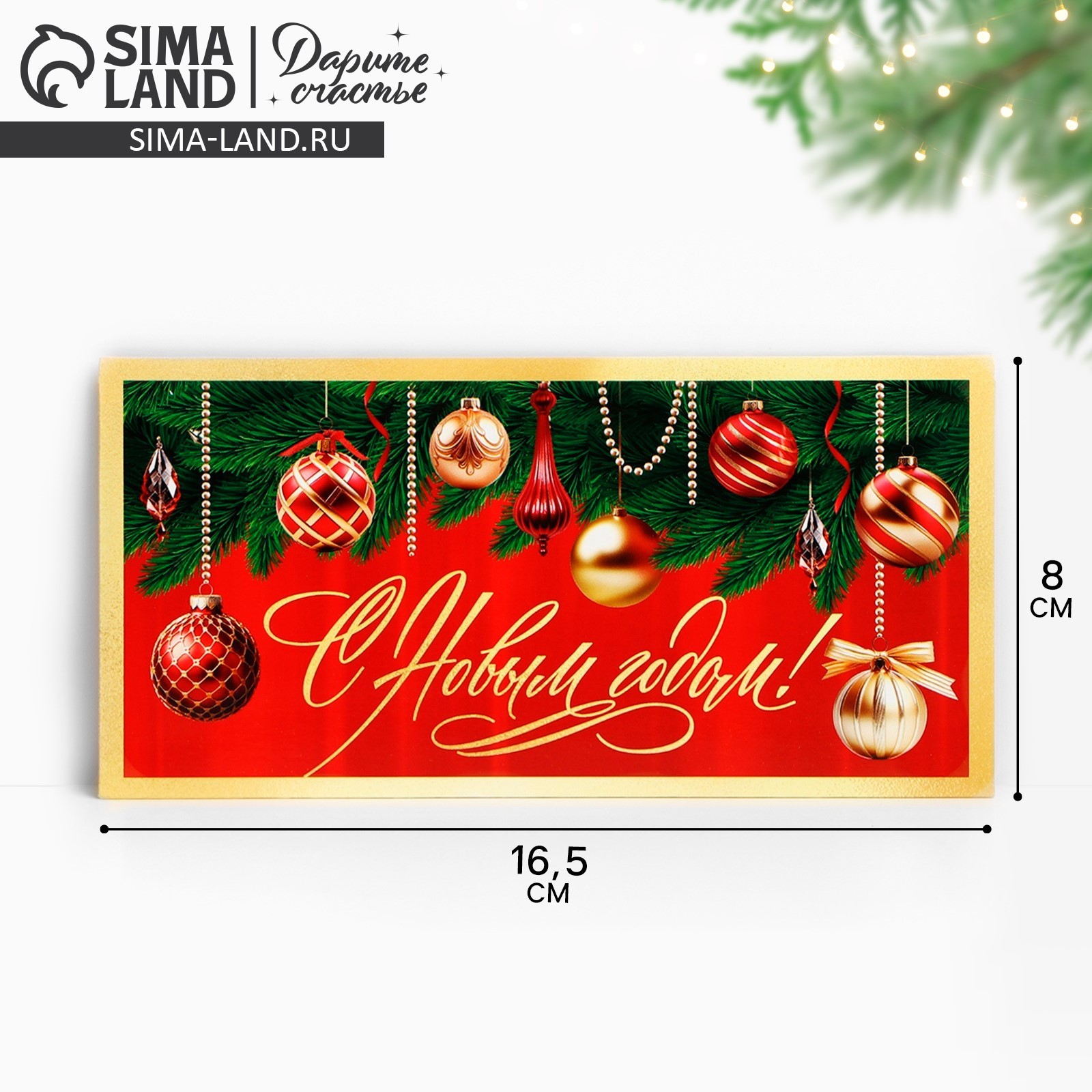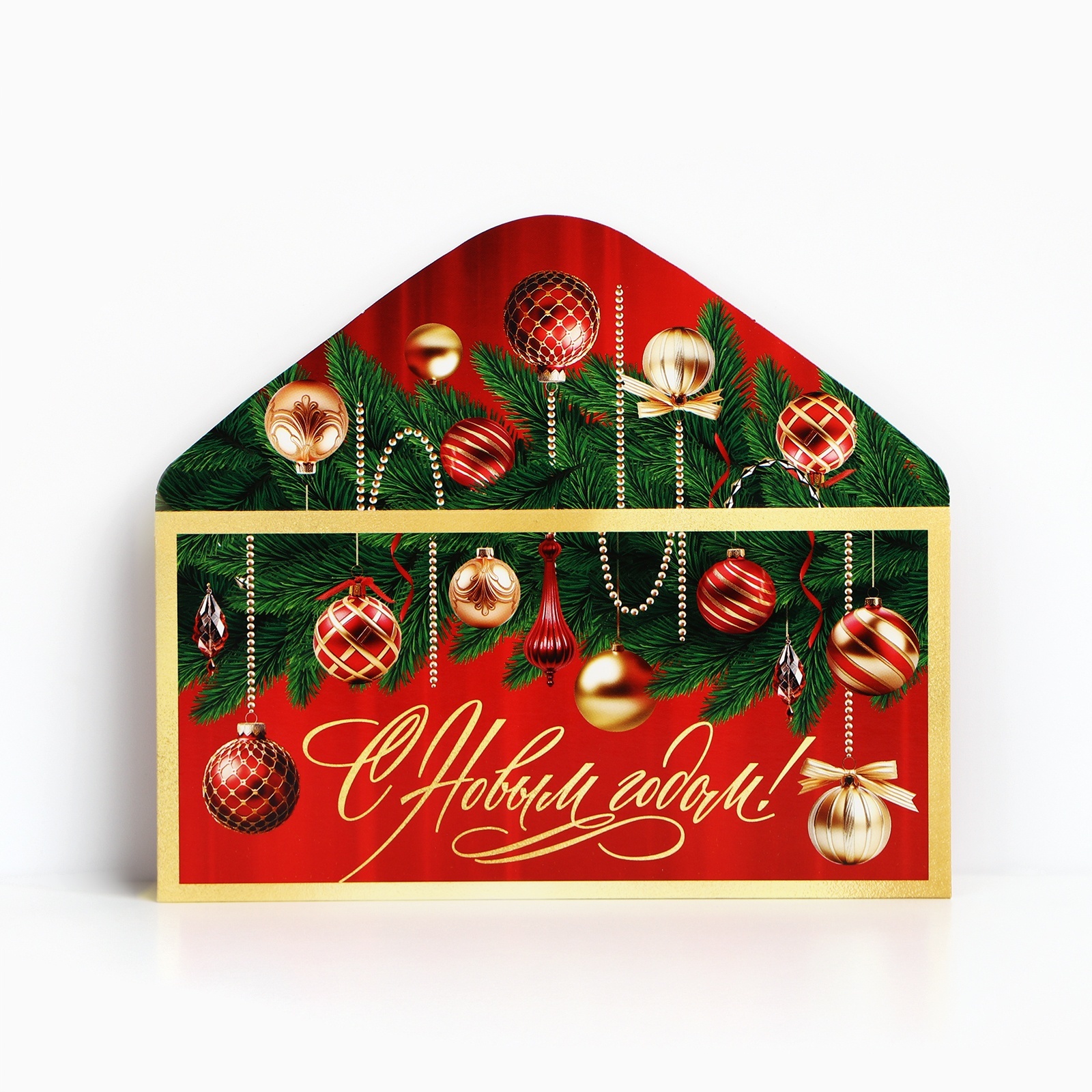Конверт для денег «с новым годом», 16.5 х 8 см. Цвет:Красный|Для кого:Унисекс|Плотность, г/м :190|Размер, см:8 х 16.5|Отделка:Без отделки|Символ года:Нет|Тематика праздника:Новый год|Материал:Картон|Страна:Россия  развернуть описание ▼