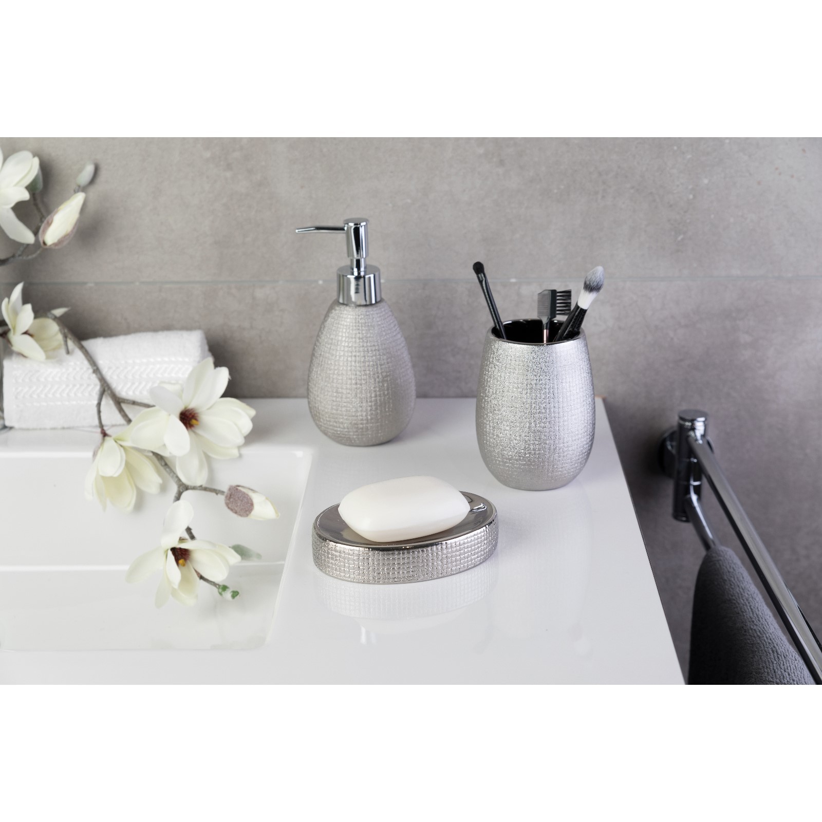 Мыльница Axentia Hollywood овальная из керамики, цвет серебряный, 12х2,5х9 см