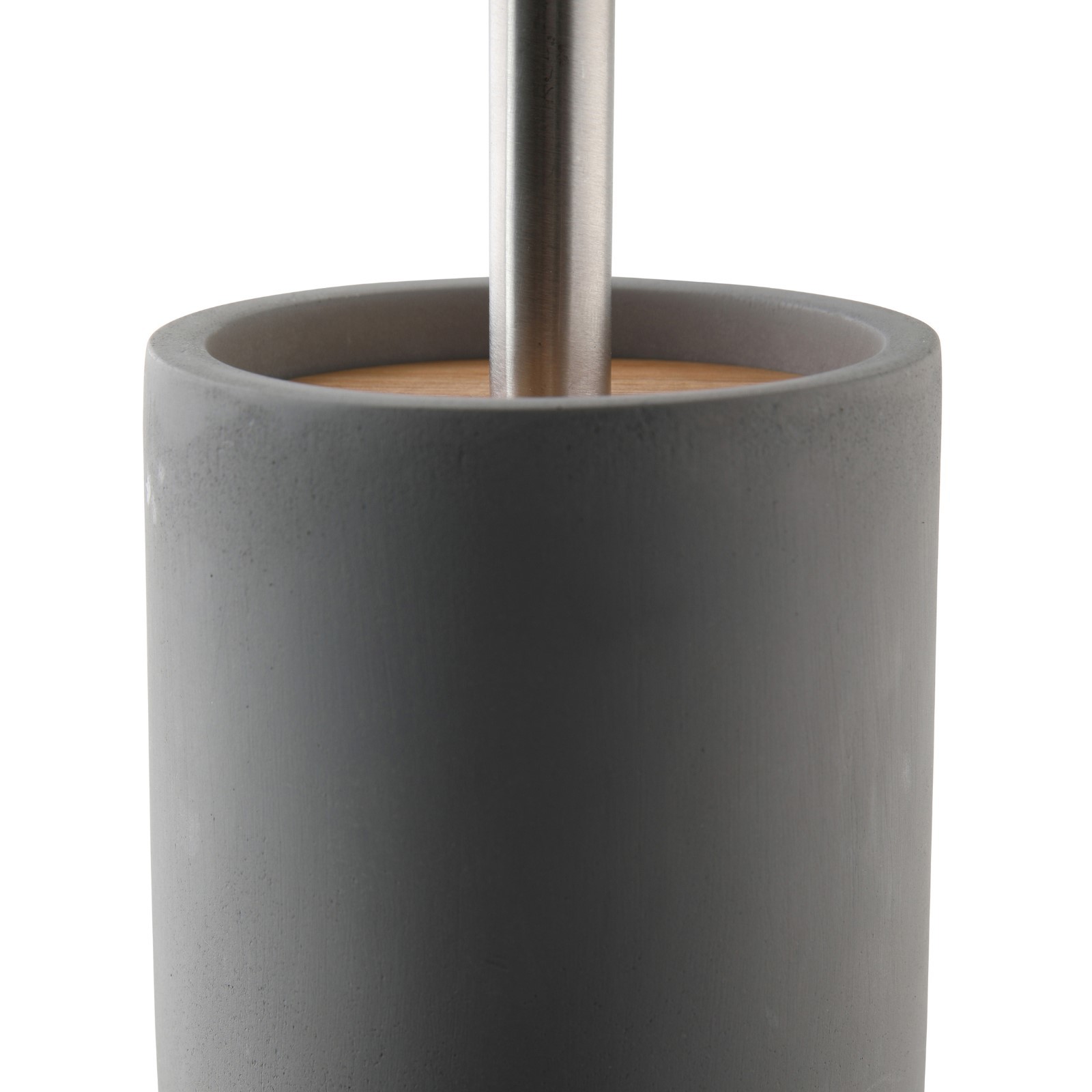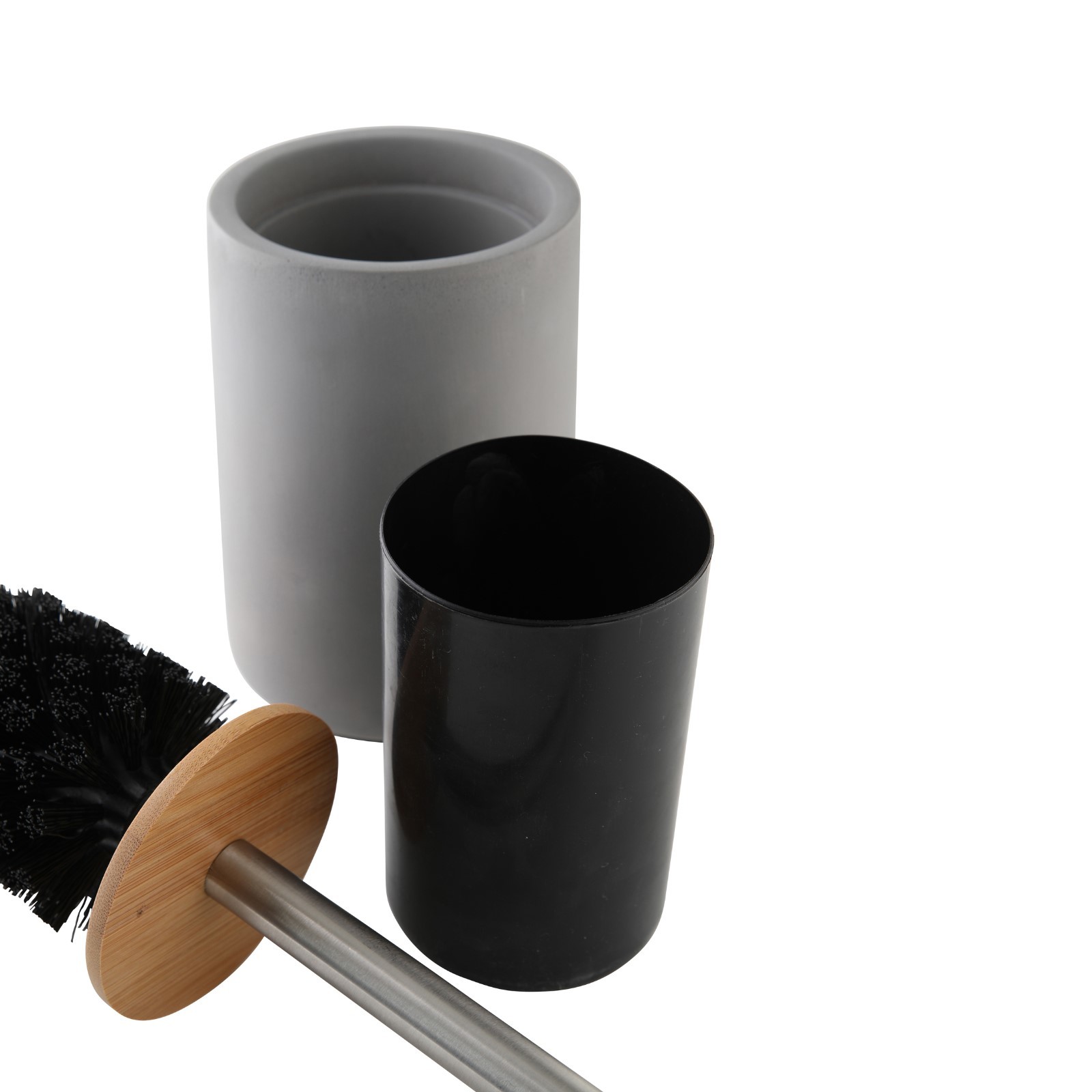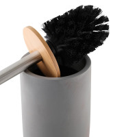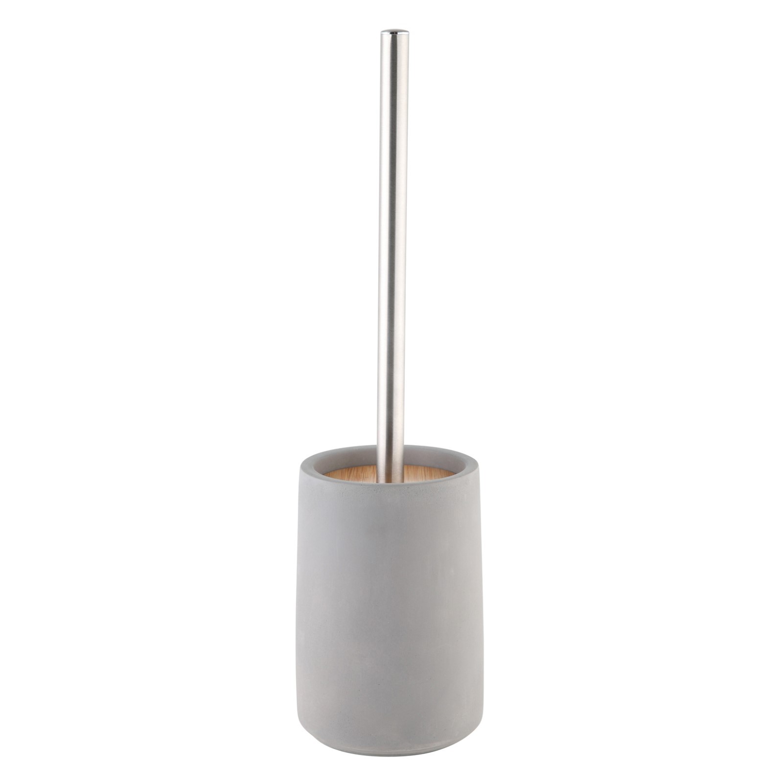 Array. Гарнитур для туалета Axentia Turin – это стильное и функциональное дополнение для вашей ванной комнаты. Круглый дизайн, полирезина с имитацией бетонной поверхности и декоративная крышка из бамбука делают его эстетичным и приятным для использования. Ручка гарнитура выполнена из нержавеющей стали, обеспечивая прочность и блеск. Декоративная крышка из бамбука придает гарнитуру естественный и теплый вид. Сменный элемент ершика изготовлен из высококачественного пластика, что обеспечивает эффективную и гигиеничную очистку унитаза. Гарнитур имеет компактные размеры: диаметр 10, 5 см, высота 42, 5 см, что делает его удобным и легким в размещении в ванной комнате. Этот гарнитур легко сочетается с различными стилями интерьера благодаря своему современному дизайну. Axentia Turin – это сочетание функциональности, стиля и естественности, придающее вашей ванной комнате уют и индивидуальность. Цвет: Серый Материал ручки: Сталь Материал подставки: Полирезин Вид: Ёршик с подставкой Вид установки: Напольный  развернуть описание ▼